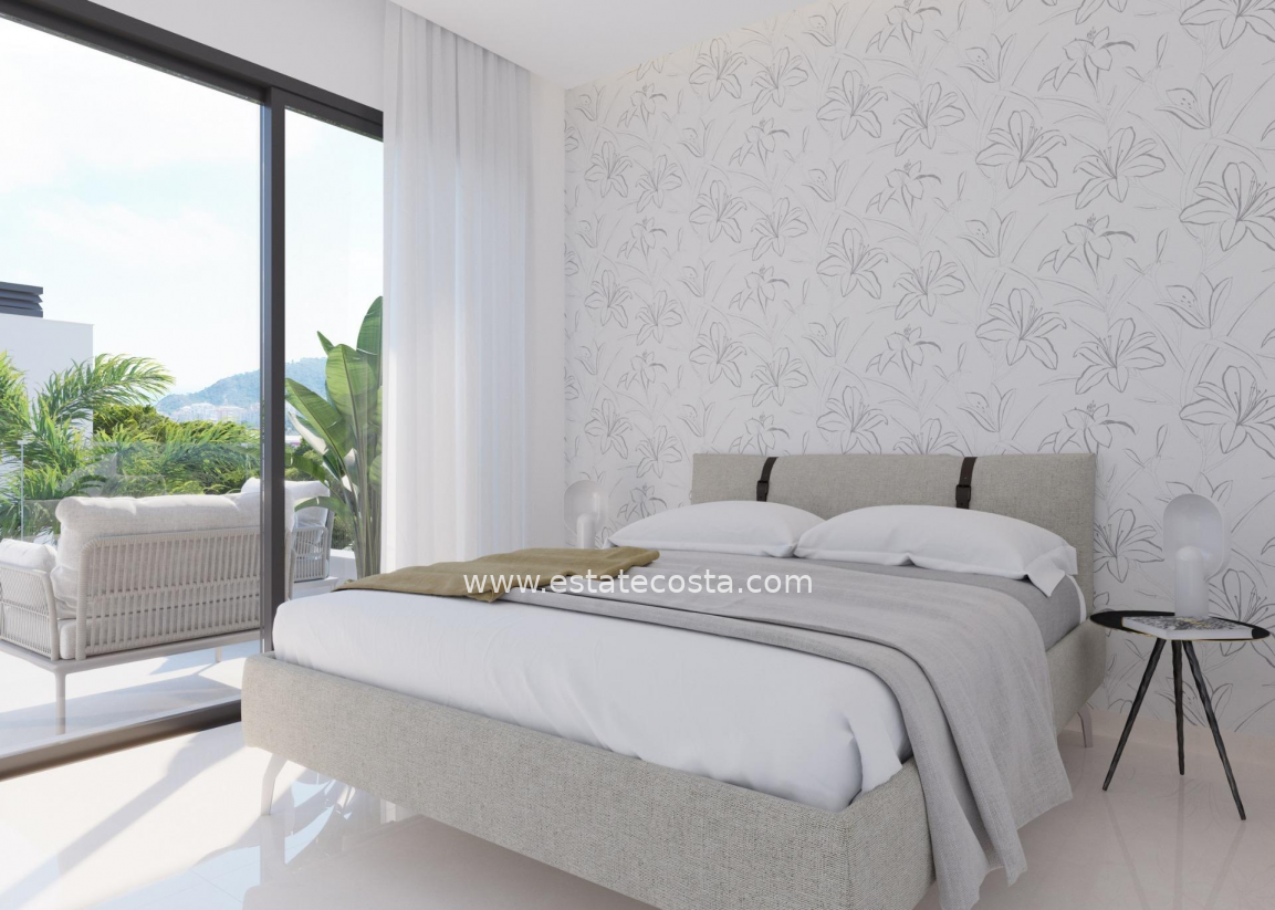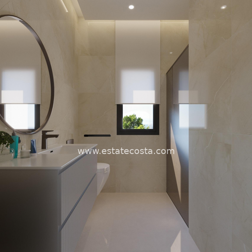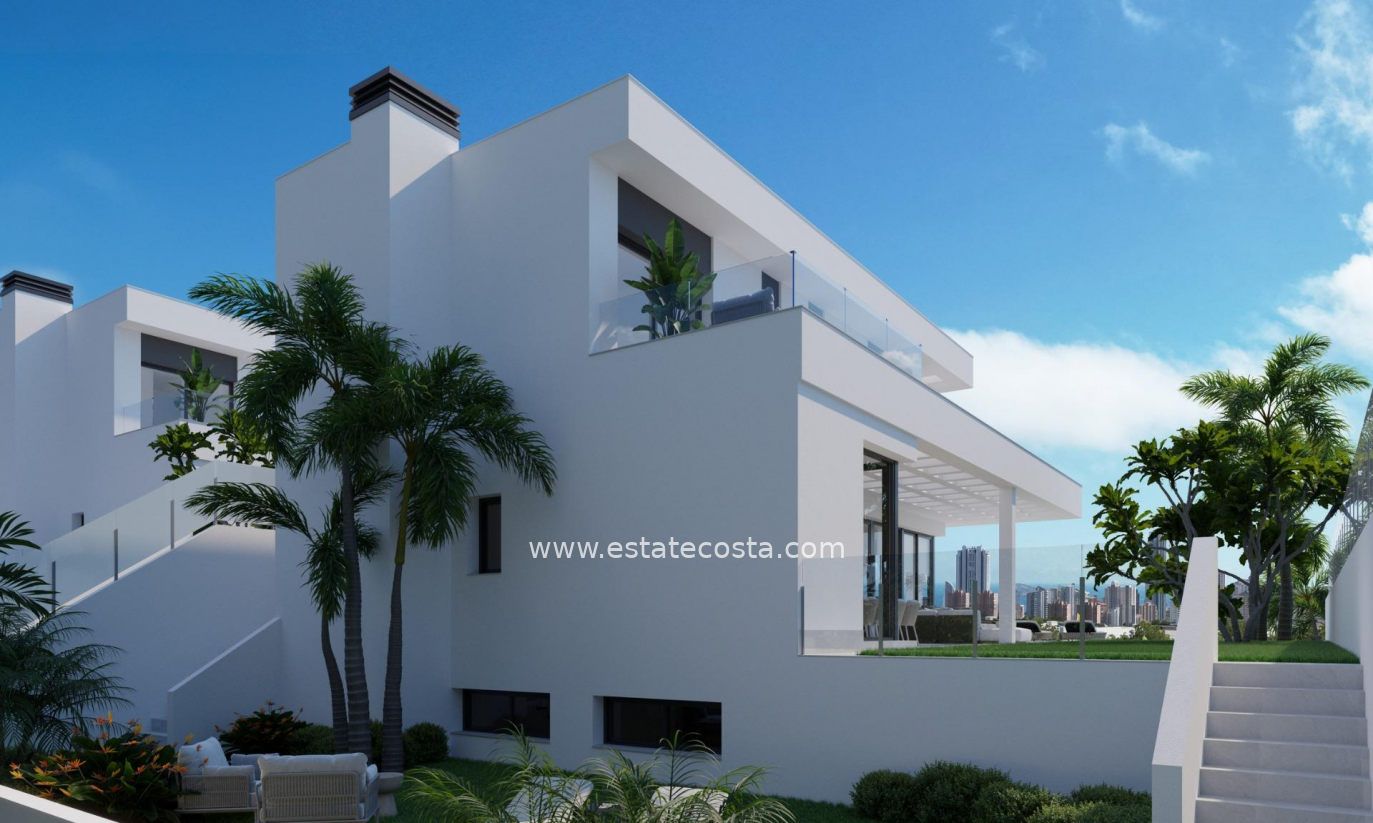 NEW BUILD VILLAS IN FINESTRAT WITH SEA VIEWS New Build Luxury villas in Sierra Cortina, Finestrat. Modern villas with 3 bedrooms and 3 bathrooms, open plan kitchen with lounge area, terrace with magnificent views over Benidorm, private garden with swimming pool, basement, parking and storage room. Villas build with top quality materials. Finestrat located in the Marina Baixa region of the Costa Blanca, close to neighbouring Benidorm and about 40 kilometres from the city of Alicante and the international airport. The village is situated on the mountainside of Puig Campana and offers beautiful views of the mountains, the coast and the Mediterranean Sea. Benidorm is just a five-minute drive from the properties and offers all the services you would need including shops, bars, restaurants, supermarkets, banks, pharmacies and several private international schools.
