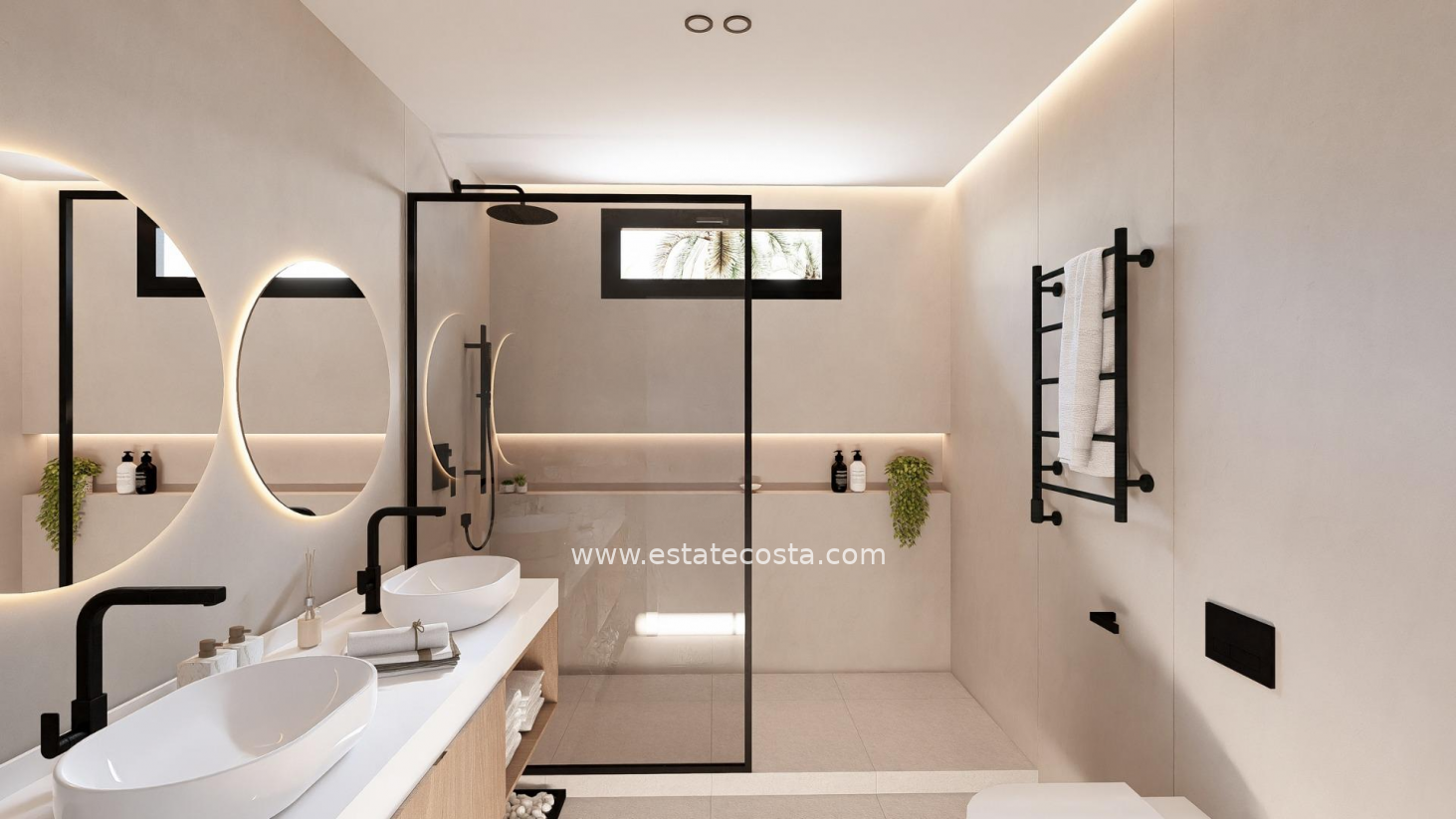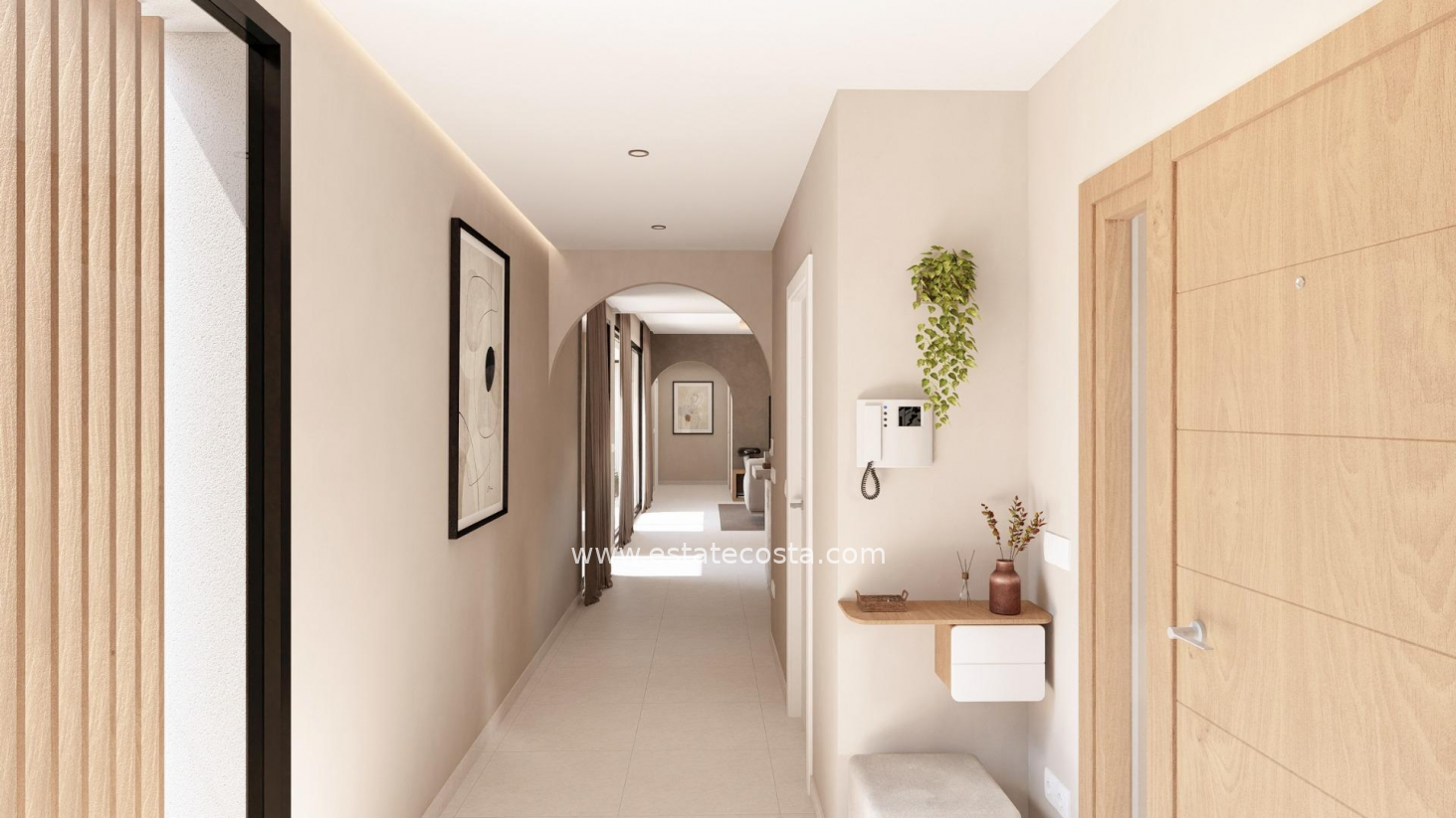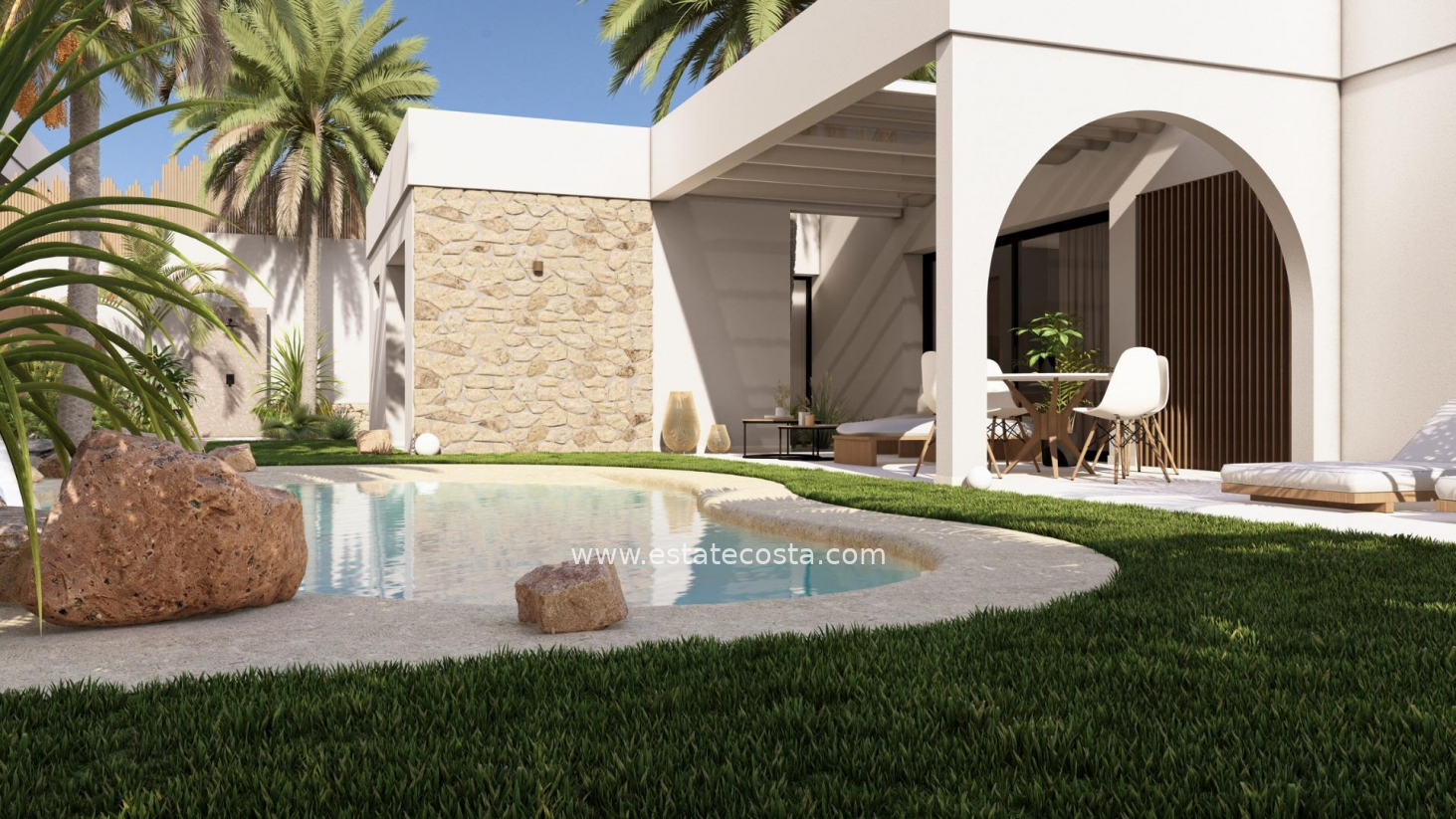 NEW BUILD VILLAS IN ALTAONA GOLF RESORT, MURCIA New Build residential of beautiful villas in Altaona Golf resort, Murcia. New Build villas with open plan kitchen, 2 bedrooms, 2 bathrooms, guest toilet, terrace, private garden with pool and parking space.. Features: • The properties have Energy Certificate Rating A. • Ducted air conditioning installation with heat pump. Throughout the house except for bathrooms. • Electric underfloor heating in the living room and bathrooms with individual thermostat per zone. • Air renewal system in the kitchen, bathrooms, laundry room, and guest toilet. • Kitchen Includes extractor hood and electric induction hob with 3 cooking points. • Includes LED lighting in the living room, hallway, and exterior. The rest of the rooms are prepared for the future owner to install their lighting. • USB sockets in all bedrooms. • Electronic intercom for access from the exterior to the interior path. Doorbell at the property entrance. • Home automation system with two smart switches. • Private landscaped garden with drip irrigation system and the pool. • Exterior fencing of the urbanisation. • Vehicle access gates to the urbanisation: Metal sliding gate with remote opening system Residential located in Altaona Golf just 15 minutes by car from the centre of Murcia capital and 20 minutes from the beaches you can enjoy the tranquillity and security offered by the Golf Course that has 18 holes and the comfort to live close to all services. Murcias airport Corvera only 15 minutes drive away.