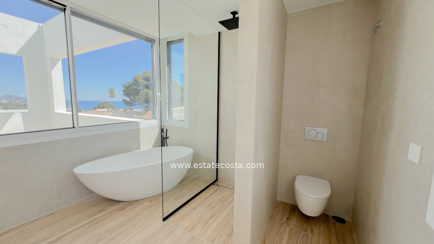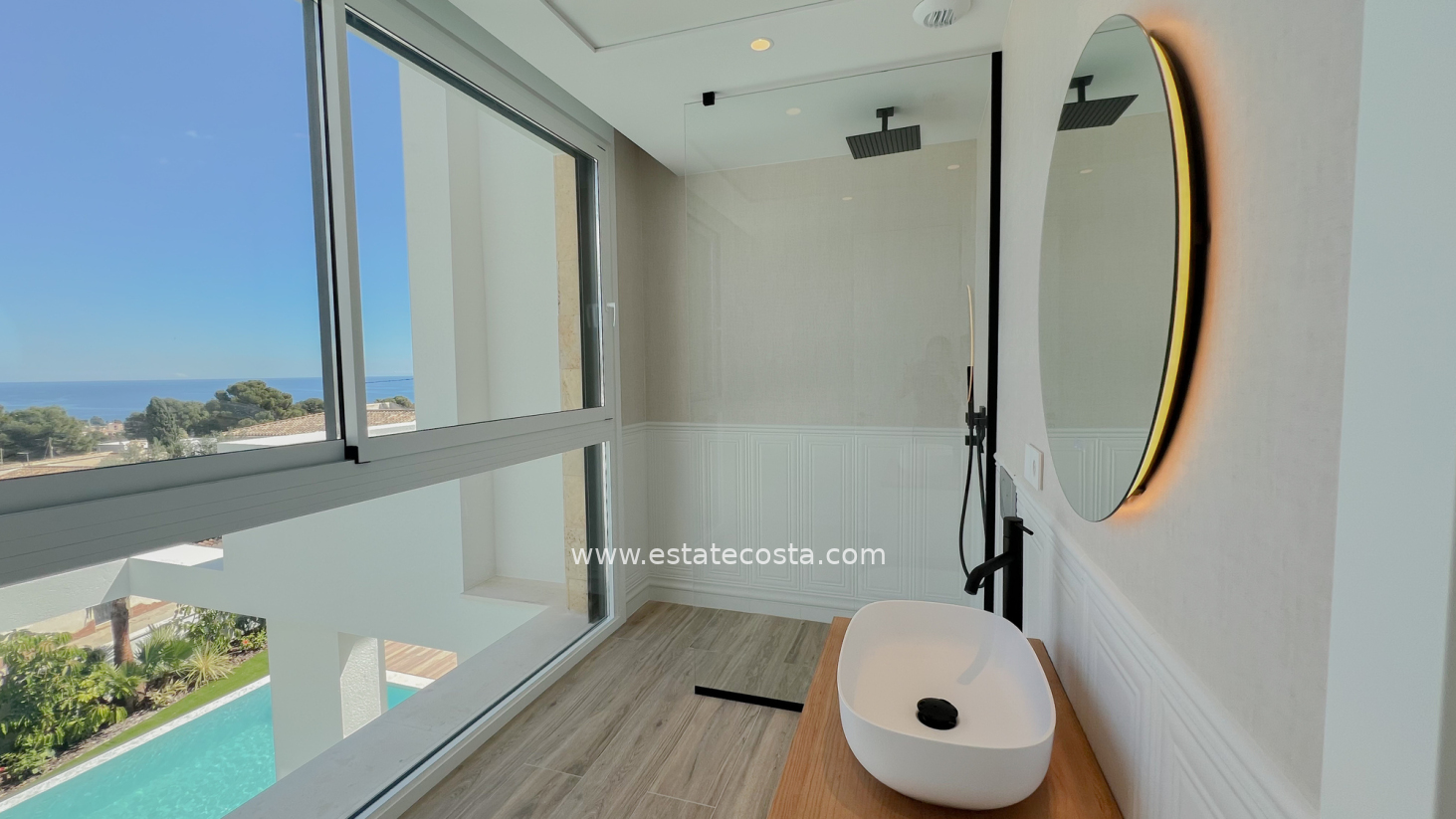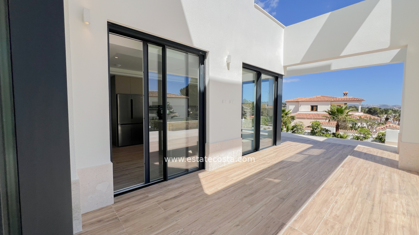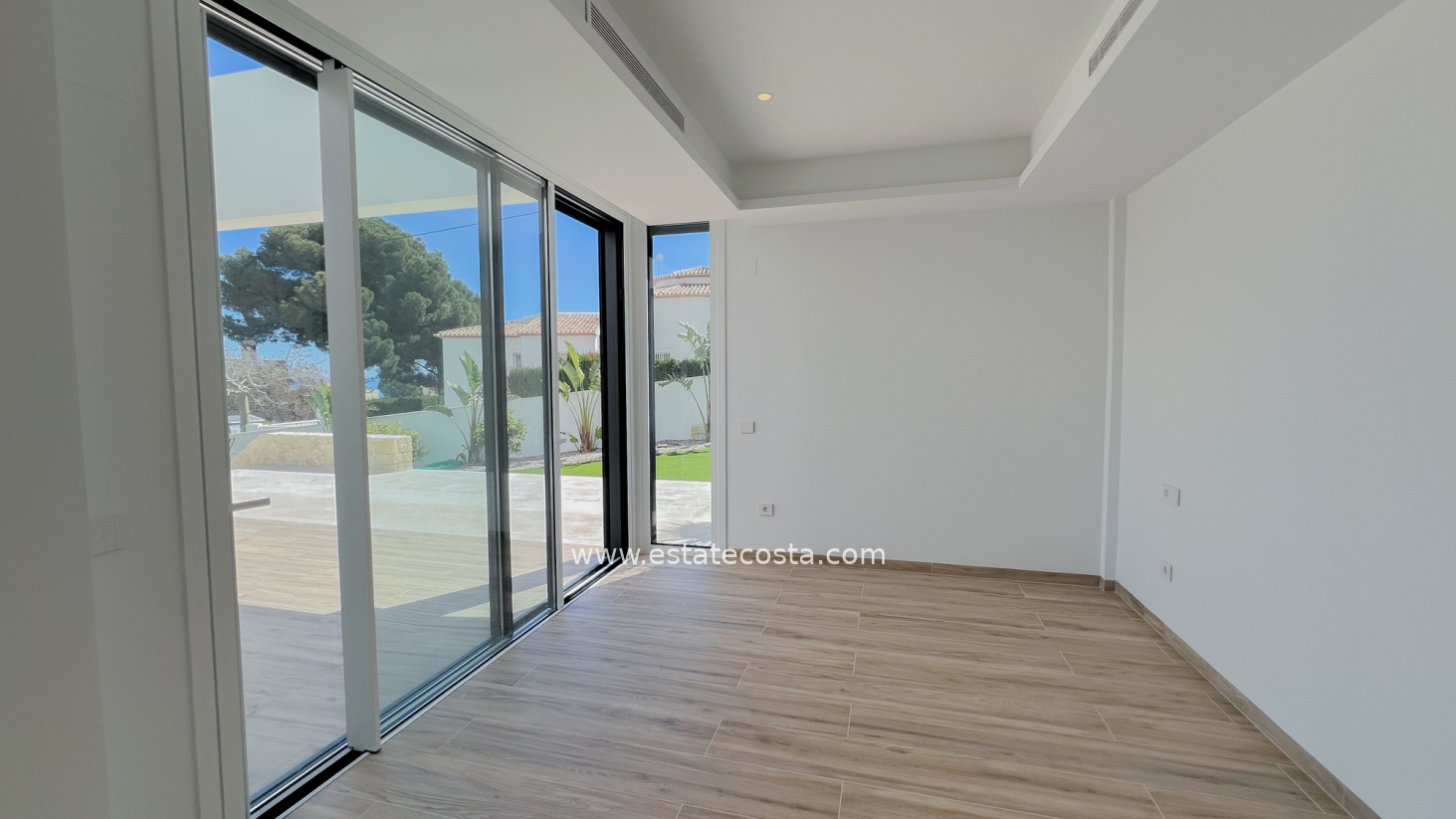 NEW BUILD VILLA IN BENNISA Luxury New Build villa for sale in Benissa, Costa Blanca. Luxury villa in Benissa, modern architecture with infinity pool 13x4,5m. This villa is built on a large flat plot with sea views. It has 4 bedrooms and 4 bathrooms, solarium of 197m2, basement of 205m2. It also has outdoor parking for 2 vehicles, with printed concrete pavement, covered with a design sail awning. From the car park, access to the ground floor is through an entrance door to the property with fixed side security glass. From there we go to the large living room with double height in which is the design staircase made of steel beam, with floating wooden steps and glass railing that gives access to the first floor. On the ground floor there is a guest toilet, a large laundry room with access to the outside terrace, a bedroom with fitted wardrobes and en suite bathroom and a large closed kitchen. The whole ground floor has floor to ceiling windows that give a lot of light and access to large terraces and the swimming pool. On the first floor there are 3 bedrooms and 2 bathrooms, all with access to terraces, one of them with external stairs leading up to the solarium of 197m2. All bedrooms have build-in wardrobes. From all the rooms on the first floor you have access to a large terrace and garden with spectacular views and infinity pool as well as a chill out area with outdoor fireplace in the garden. The basement has a large open-plan area where you can build a cinema, gym, etc. In the equipment of this villa we highlight the latest technologies installed throughout the house. Such as the home automation system controlled by voice and from the mobile APP for the alarm system. Complete installation of air conditioning ducts. All thes mechanisms necessary for the installation of zoned air conditioning, generated by air technology, on the ground and ground floors. Possibility of connecting Airzone with the home's intelligent system and with Alexa. Installation of electric underfloor heating on ground and first floors. Mechanical ventilation system in bathrooms and kitchen, air renewal and smoke extraction. Domestic hot water generation by means of Aerothermal system, in compact units. Porcelain stoneware tiles throughout the interior of the house. In wet areas such as shower floors, the same will be of the non-slip type. Likewise, non-slip tiles will be laid in exteriors and solarium. In the kitchen, island worktop finished in Silestone in grey tone, with glass panel in the front area of the worktop in matching tones. Fully equipped kitchen from top brand Küchenhouse, Parcélanos or similar. Bathrooms fully equipped with high quality fittings. Video intercom. Installation of interior lighting with integrated LED halogens, indirect lighting with LED bars embedded in ceilings and frames, in passageways and other rooms. Connections prepared for the installation of hanging lamps in living room and kitchen. Perimeter exterior lighting consisting of designer LED wall lights on the exterior façade and car park, and floor lighting in terrace and swimming pool areas. Landscaping consisting of natural grass areas and plants native to the region (olive trees, palm trees, orange trees, lemon trees...). Plot fencing made of block wall clad in dry stone masonry. The villa is located in one of the most beautiful residential areas of the Costa Blanca. The towns of Calpe, Benissa and Moraira offer an extraordinarily attractive coastline of great scenic and ecological interest, with a rugged coastline with numerous beaches and hidden coves. Benissa located between Valencia and the city of Alicante. Manises airport in Valencia is an hour away and L’Altet airport in Alicante 50 minutes drive away. Both airports are major international airports served by a large number of low-cost airlines.