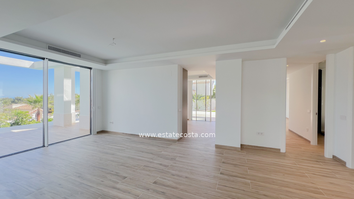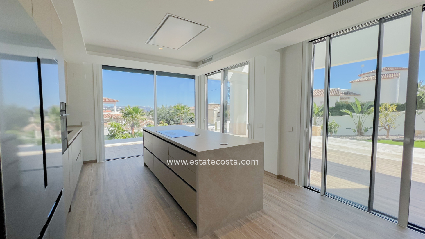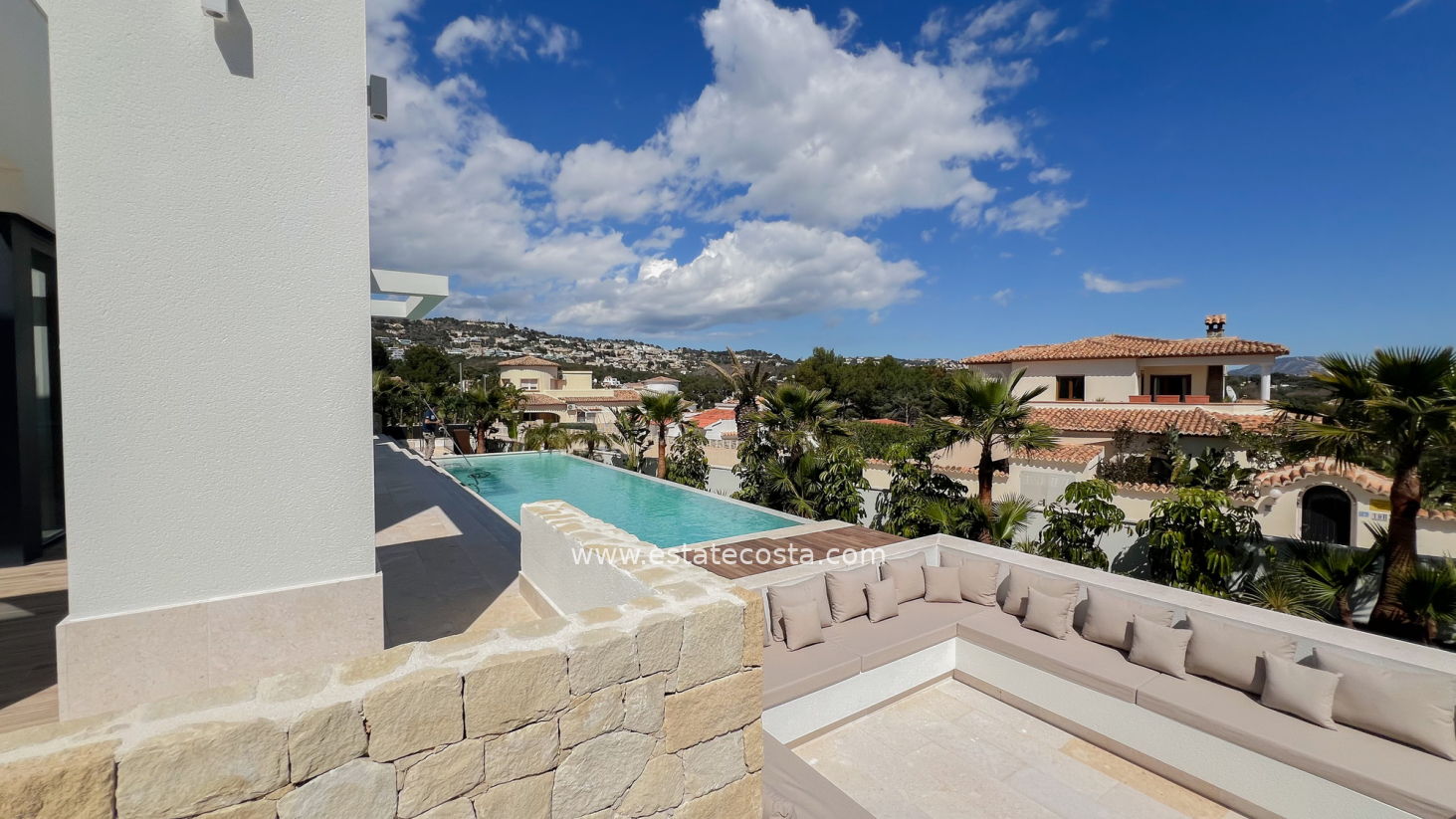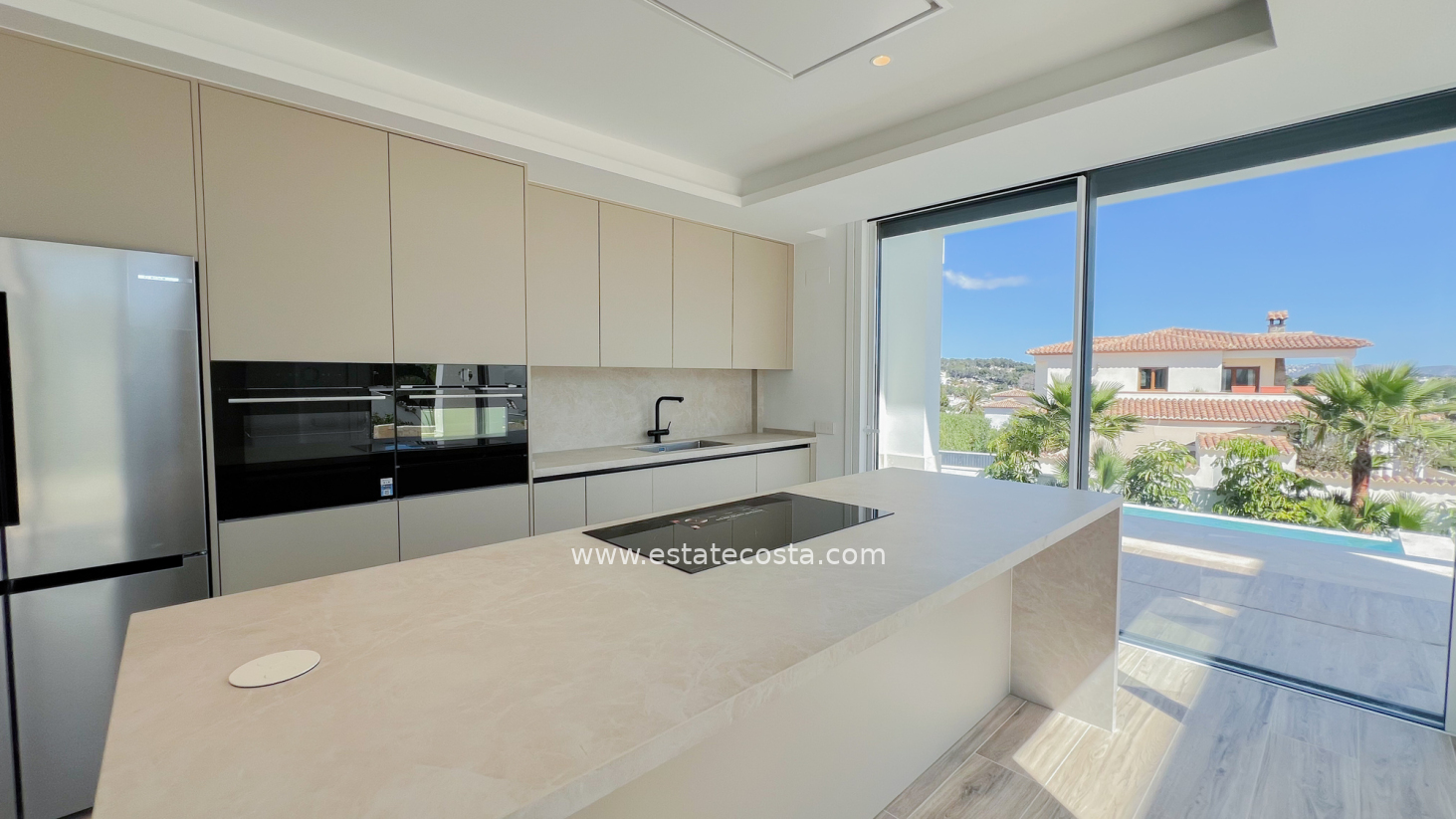 NEW BUILD VILLA IN BENNISA Luxury New Build villa for sale in Benissa, Costa Blanca. Luxury villa in Benissa, modern architecture with infinity pool 13x4,5m. This villa is built on a large flat plot with sea views. It has 4 bedrooms and 4 bathrooms, solarium of 197m2, basement of 205m2. It also has outdoor parking for 2 vehicles, with printed concrete pavement, covered with a design sail awning. From the car park, access to the ground floor is through an entrance door to the property with fixed side security glass. From there we go to the large living room with double height in which is the design staircase made of steel beam, with floating wooden steps and glass railing that gives access to the first floor. On the ground floor there is a guest toilet, a large laundry room with access to the outside terrace, a bedroom with fitted wardrobes and en suite bathroom and a large closed kitchen. The whole ground floor has floor to ceiling windows that give a lot of light and access to large terraces and the swimming pool. On the first floor there are 3 bedrooms and 2 bathrooms, all with access to terraces, one of them with external stairs leading up to the solarium of 197m2. All bedrooms have build-in wardrobes. From all the rooms on the first floor you have access to a large terrace and garden with spectacular views and infinity pool as well as a chill out area with outdoor fireplace in the garden. The basement has a large open-plan area where you can build a cinema, gym, etc. In the equipment of this villa we highlight the latest technologies installed throughout the house. Such as the home automation system controlled by voice and from the mobile APP for the alarm system. Complete installation of air conditioning ducts. All thes mechanisms necessary for the installation of zoned air conditioning, generated by air technology, on the ground and ground floors. Possibility of connecting Airzone with the home's intelligent system and with Alexa. Installation of electric underfloor heating on ground and first floors. Mechanical ventilation system in bathrooms and kitchen, air renewal and smoke extraction. Domestic hot water generation by means of Aerothermal system, in compact units. Porcelain stoneware tiles throughout the interior of the house. In wet areas such as shower floors, the same will be of the non-slip type. Likewise, non-slip tiles will be laid in exteriors and solarium. In the kitchen, island worktop finished in Silestone in grey tone, with glass panel in the front area of the worktop in matching tones. Fully equipped kitchen from top brand Küchenhouse, Parcélanos or similar. Bathrooms fully equipped with high quality fittings. Video intercom. Installation of interior lighting with integrated LED halogens, indirect lighting with LED bars embedded in ceilings and frames, in passageways and other rooms. Connections prepared for the installation of hanging lamps in living room and kitchen. Perimeter exterior lighting consisting of designer LED wall lights on the exterior façade and car park, and floor lighting in terrace and swimming pool areas. Landscaping consisting of natural grass areas and plants native to the region (olive trees, palm trees, orange trees, lemon trees...). Plot fencing made of block wall clad in dry stone masonry. The villa is located in one of the most beautiful residential areas of the Costa Blanca. The towns of Calpe, Benissa and Moraira offer an extraordinarily attractive coastline of great scenic and ecological interest, with a rugged coastline with numerous beaches and hidden coves. Benissa located between Valencia and the city of Alicante. Manises airport in Valencia is an hour away and L’Altet airport in Alicante 50 minutes drive away. Both airports are major international airports served by a large number of low-cost airlines.