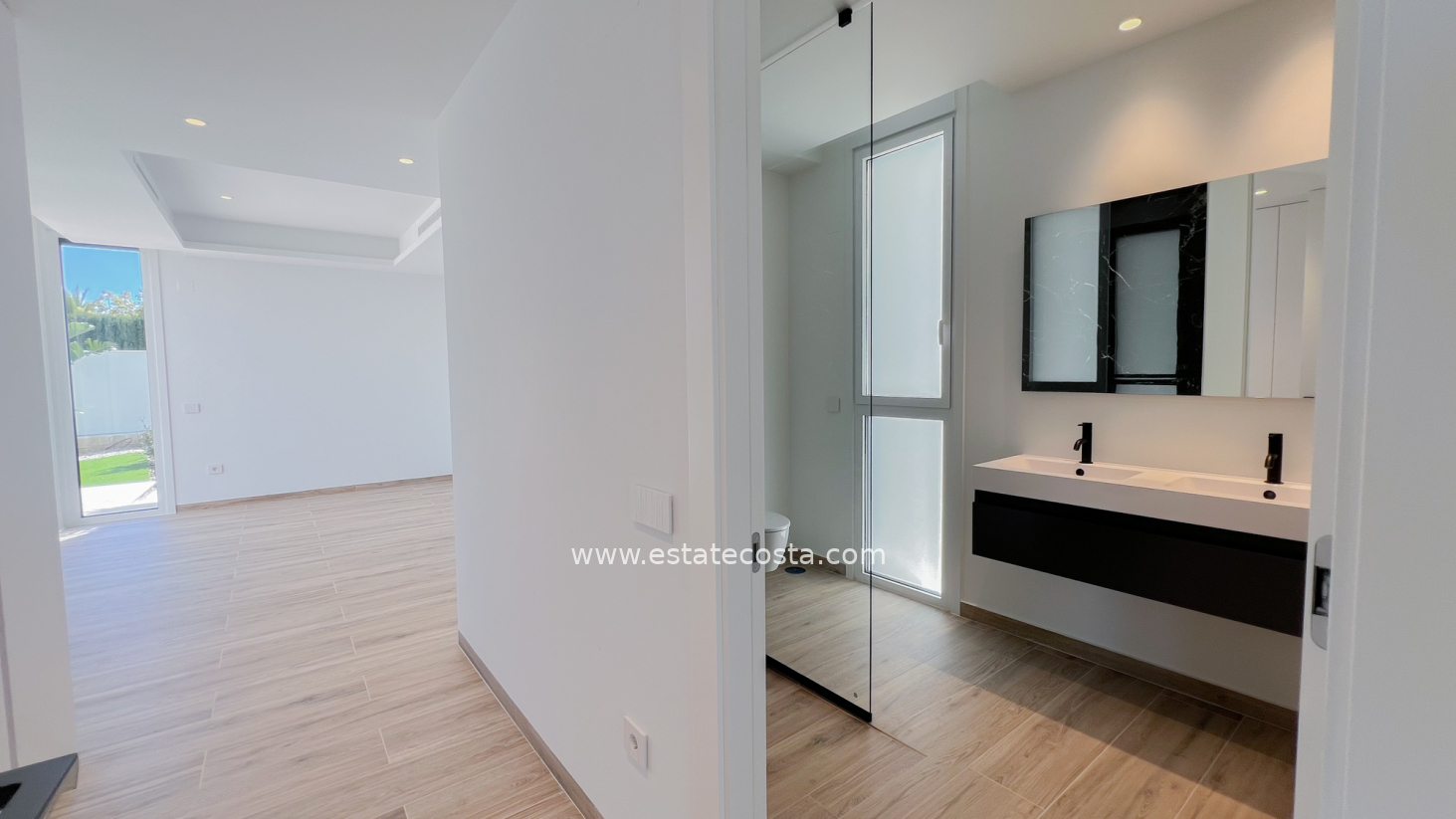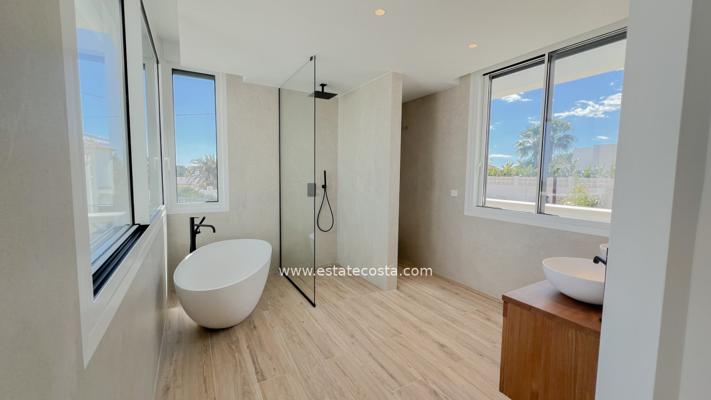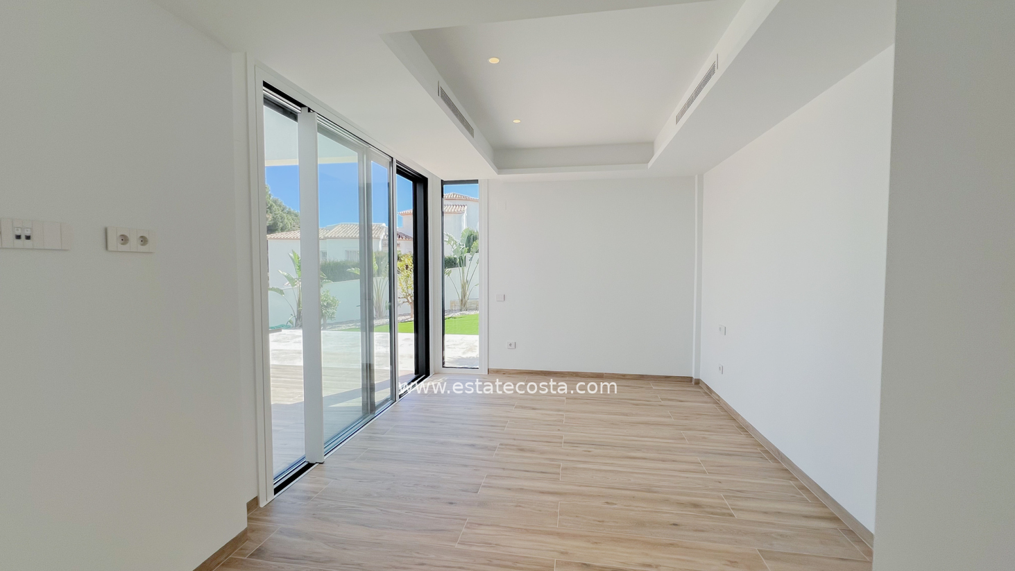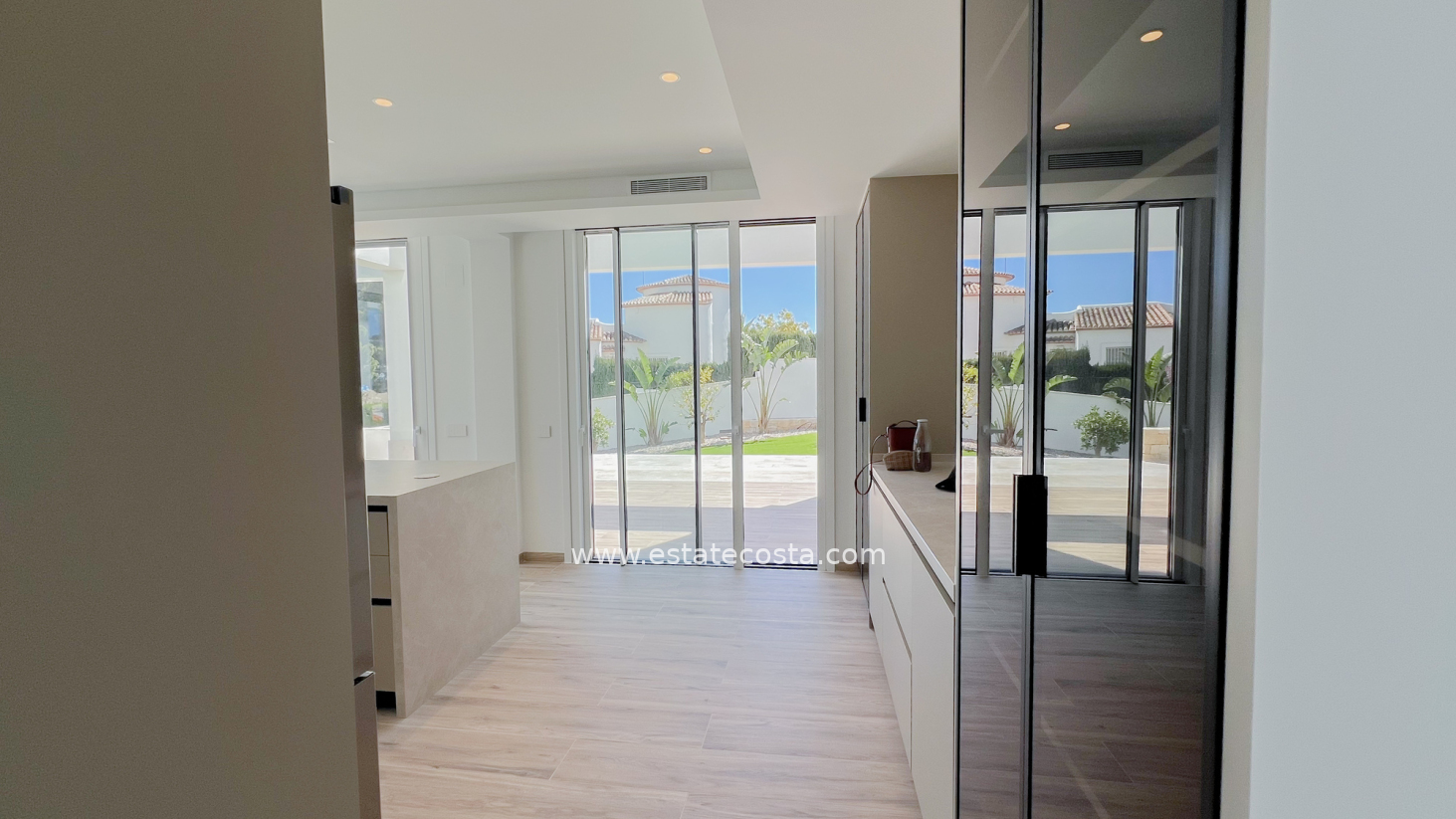 NEW BUILD VILLA IN BENNISA Luxury New Build villa for sale in Benissa, Costa Blanca. Luxury villa in Benissa, modern architecture with infinity pool 13x4,5m. This villa is built on a large flat plot with sea views. It has 4 bedrooms and 4 bathrooms, solarium of 197m2, basement of 205m2. It also has outdoor parking for 2 vehicles, with printed concrete pavement, covered with a design sail awning. From the car park, access to the ground floor is through an entrance door to the property with fixed side security glass. From there we go to the large living room with double height in which is the design staircase made of steel beam, with floating wooden steps and glass railing that gives access to the first floor. On the ground floor there is a guest toilet, a large laundry room with access to the outside terrace, a bedroom with fitted wardrobes and en suite bathroom and a large closed kitchen. The whole ground floor has floor to ceiling windows that give a lot of light and access to large terraces and the swimming pool. On the first floor there are 3 bedrooms and 2 bathrooms, all with access to terraces, one of them with external stairs leading up to the solarium of 197m2. All bedrooms have build-in wardrobes. From all the rooms on the first floor you have access to a large terrace and garden with spectacular views and infinity pool as well as a chill out area with outdoor fireplace in the garden. The basement has a large open-plan area where you can build a cinema, gym, etc. In the equipment of this villa we highlight the latest technologies installed throughout the house. Such as the home automation system controlled by voice and from the mobile APP for the alarm system. Complete installation of air conditioning ducts. All thes mechanisms necessary for the installation of zoned air conditioning, generated by air technology, on the ground and ground floors. Possibility of connecting Airzone with the home's intelligent system and with Alexa. Installation of electric underfloor heating on ground and first floors. Mechanical ventilation system in bathrooms and kitchen, air renewal and smoke extraction. Domestic hot water generation by means of Aerothermal system, in compact units. Porcelain stoneware tiles throughout the interior of the house. In wet areas such as shower floors, the same will be of the non-slip type. Likewise, non-slip tiles will be laid in exteriors and solarium. In the kitchen, island worktop finished in Silestone in grey tone, with glass panel in the front area of the worktop in matching tones. Fully equipped kitchen from top brand Küchenhouse, Parcélanos or similar. Bathrooms fully equipped with high quality fittings. Video intercom. Installation of interior lighting with integrated LED halogens, indirect lighting with LED bars embedded in ceilings and frames, in passageways and other rooms. Connections prepared for the installation of hanging lamps in living room and kitchen. Perimeter exterior lighting consisting of designer LED wall lights on the exterior façade and car park, and floor lighting in terrace and swimming pool areas. Landscaping consisting of natural grass areas and plants native to the region (olive trees, palm trees, orange trees, lemon trees...). Plot fencing made of block wall clad in dry stone masonry. The villa is located in one of the most beautiful residential areas of the Costa Blanca. The towns of Calpe, Benissa and Moraira offer an extraordinarily attractive coastline of great scenic and ecological interest, with a rugged coastline with numerous beaches and hidden coves. Benissa located between Valencia and the city of Alicante. Manises airport in Valencia is an hour away and L’Altet airport in Alicante 50 minutes drive away. Both airports are major international airports served by a large number of low-cost airlines.