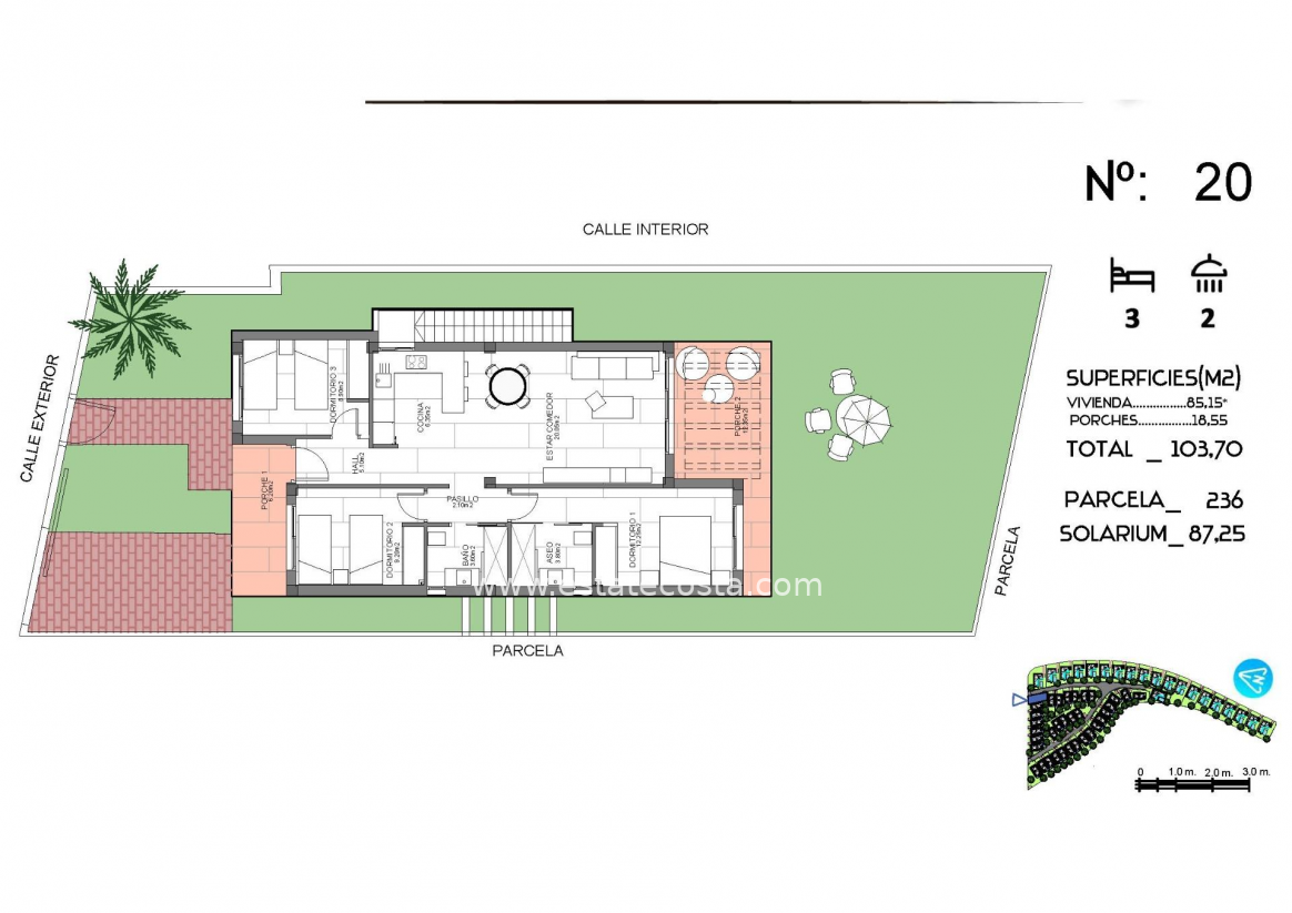 NEW BUILD VILLAS IN ALGORFA GOLF RESORT New Build residential of independent villas in La Finca Golf course, Algorfa. Villas build over 1 floor and consists of 3 bedrooms, 2 bathrooms, open plan kitchen, the living room with open views to the terrace, solarium, private garden with the pool and parking. Residential complex located in La Finca Golf resort, in the municipality of Algorfa, in the Vega Baja area of the Costa Blanca South. Only 15 minutes drive from the sandy beaches of Guardamar del Segura, and only 35 minutes from Alicante airport. The larger towns of Almoradi, Benijófar and Ciudad Quesada are a short drive away. Torrevieja and Orihuela Costa, with their large shopping centres, are 15 minutes away.
