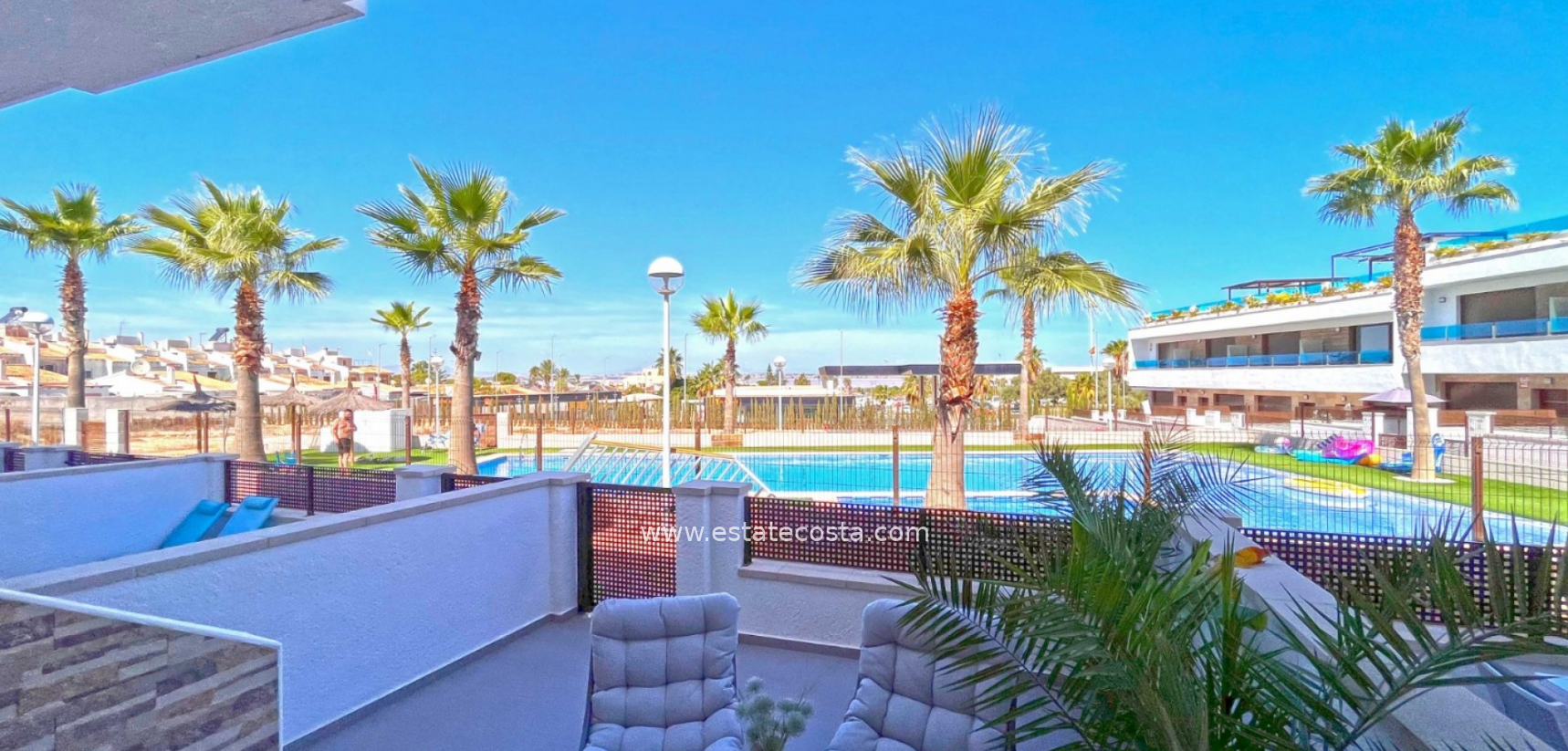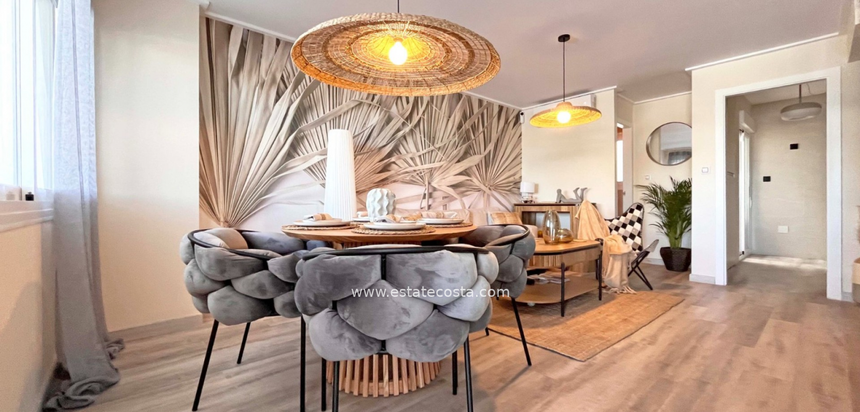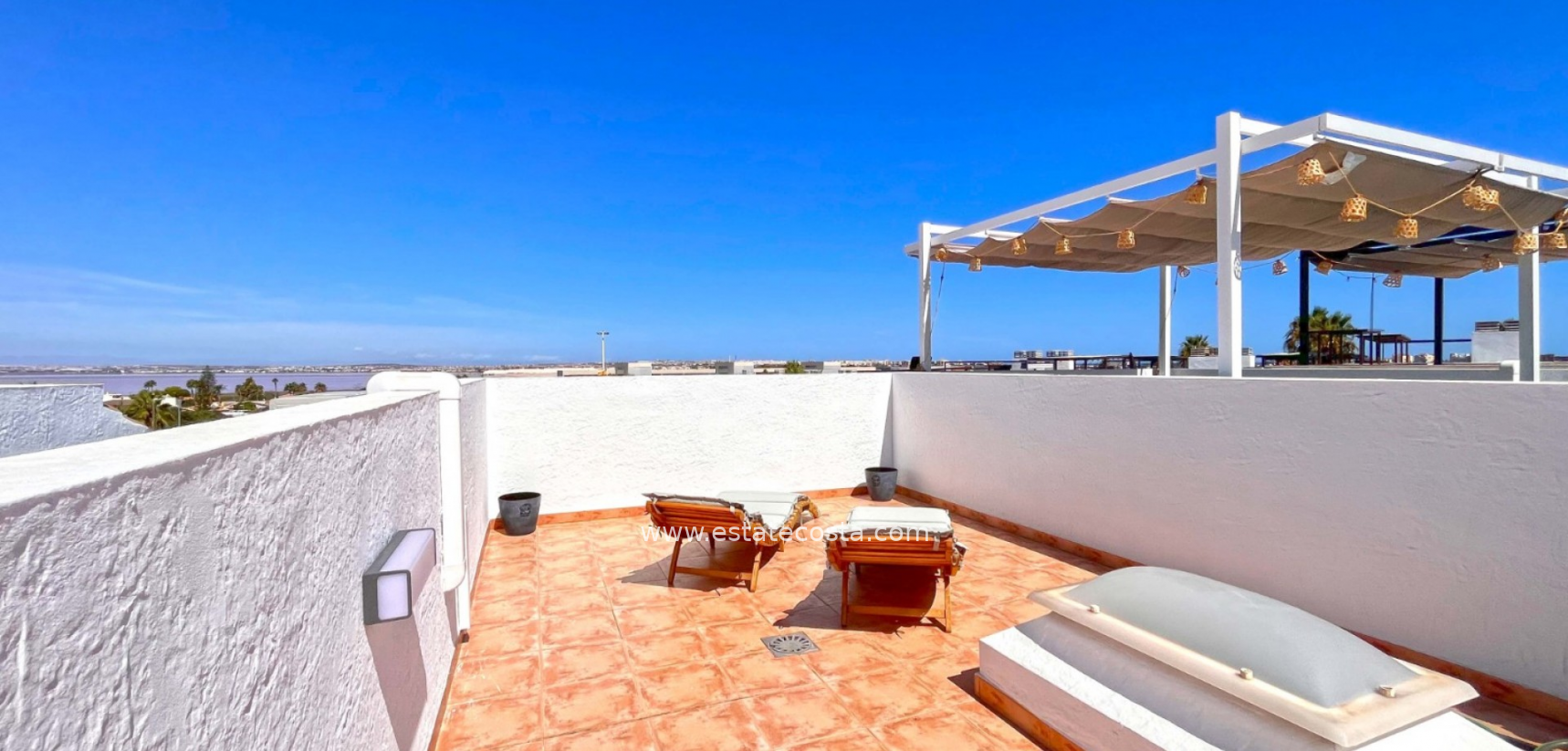 Discover your dream home in this beautifully renovated townhouse located in the sought-after area of Los Balcones, Torrevieja. This modern property boasts 3 spacious bedrooms and 2 stylish bathrooms, perfect for comfortable family living or a holiday retreat. Step inside to find a bright and airy interior, fully furnished with contemporary decor. The separate modern kitchen comes fully equipped, making meal preparation a pleasure. Enjoy the luxury of multiple outdoor spaces, including a ground floor terrace ideal for al fresco dining, a private balcony overlooking the serene communal pool, and a stunning roof terrace with breathtaking views of the famous pink salt lake. Additional features include private parking and access to a well-maintained communal pool, creating a perfect setting for relaxation and leisure. Whether you’re soaking up the sun, entertaining guests, or enjoying the tranquil views, this townhouse offers a lifestyle of comfort and convenience. Don't miss the chance to make this exceptional property your own!
