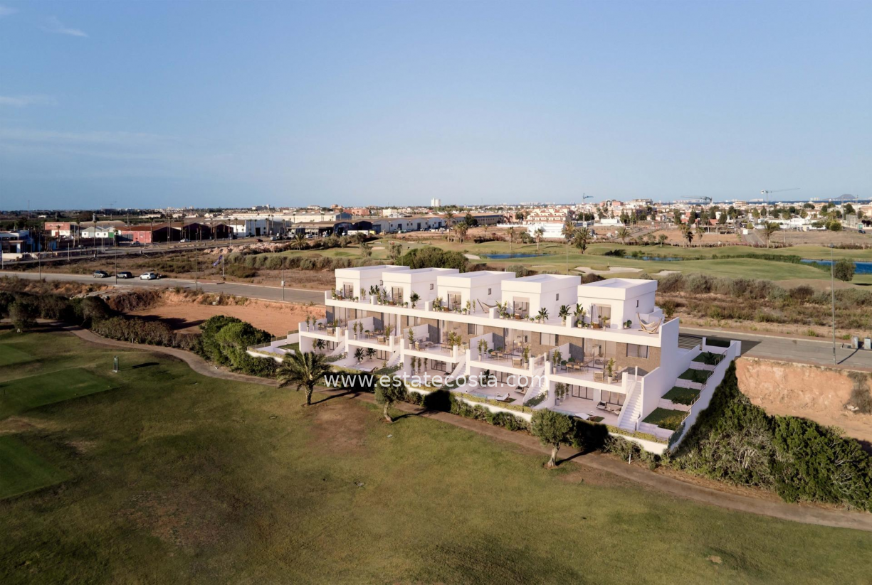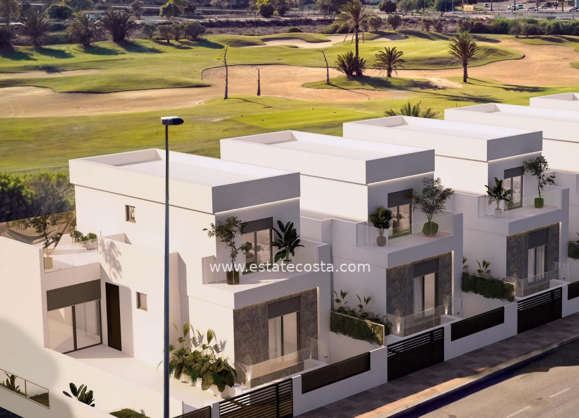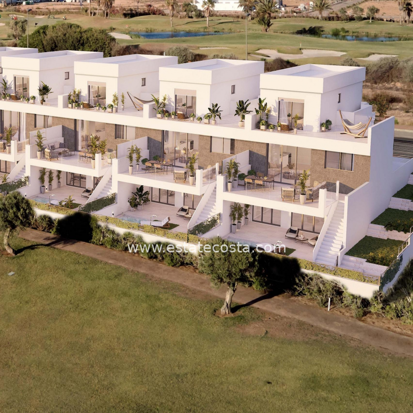 NEW BUILD SEMI-DETACHED VILLAS IN LOS ALCAZARES New Build Semi-Detached Villas in Los Alcázares. Discover your dream home in the stunning semi-detached villas located in Los Alcázares, where modern living meets breathtaking golf views. These meticulously designed 3-bedroom, 4-bathroom homes are perfect for families seeking luxury, comfort, and a touch of Mediterranean charm. Bedrooms & Bathrooms: Three spacious bedrooms, designed with comfort in mind. Each bedroom has built-in wardrobes, ensuring ample storage. Four contemporary bathrooms, featuring high-quality fixtures and finishes. An inviting open-plan kitchen and living area, ideal for entertaining and family gatherings. Expansive living area with large windows, bathing the space in natural light and providing stunning views of the golf course. A generous basement that can be utilized as a recreational area, home gym, or additional storage. Dedicated garage space for secure parking and convenience. Private pool surrounded by a beautifully landscaped garden, perfect for relaxation and enjoying the sun. Spacious terrace area for outdoor dining and entertaining, with picturesque views of the golf course. Air conditioning pre-installation for comfort throughout the seasons. Proximity to local amenities, including shops, restaurants, and, of course, world-class golf courses. Los Alcázares is renowned for its beautiful beaches, vibrant community, and a plethora of outdoor activities. The location offers a perfect balance of tranquility and accessibility, making it an ideal place for both holidaymakers and year-round residents. This property is a perfect blend of modern architecture, comfort, and leisure. Don’t miss the opportunity to own a piece of paradise in Los Alcázares!