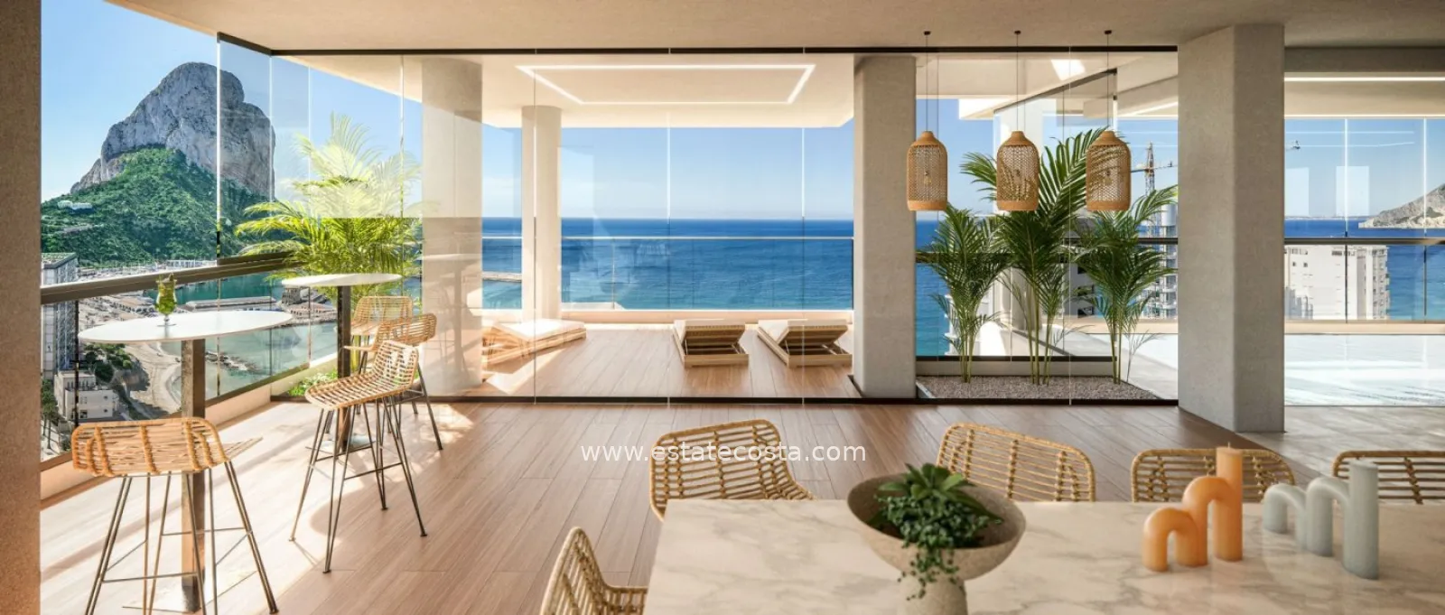 NEW BUILD LUXURY PENTHOUSES WITH THE SEA VIEWS IN CALPE New Build residential complex of 1, 2 and 3 bedrooms apartments with large terraces in Calpe. Two towers of 18 floors with beautiful apartments with views of the sea and the salt lake of Calpe. Complete installation of ducted air conditioning, with pump of cold and heat, by aerothermal control thermostat in living room. Large common areas with gardens, swimming pool, paddle tennis, children's area. On 11th floor of tower 1: infinity pool, sauna, gym and chill area out with sea views. Calpe, one of the towns of La Marina Alta, lies on the northern coast of the province of Alicante, surrounded by the towns of Altea, Benidorm, Teulada-Moraira, Benissa. Calpe has a wonderful mixture of old Valencian culture and modern tourist facilities. It is a great base from which to explore the local area or enjoy the many local beaches. Calpe alone has three of the most beautiful sandy beaches on the coast. Calpe also has two Sailing Clubs: Real Club Náutico de Calpe and Club Náutico de Puerto Blanco. Fishing village of Calpe now transformed into a tourist magnet, the town sits in an ideal location, easily accessed by the A7 motorway and the N332 that runs from Valencia to Alicante; its approximately 1 hour drive from the airport at Alicante and 1,5 hours to Valencias airport.