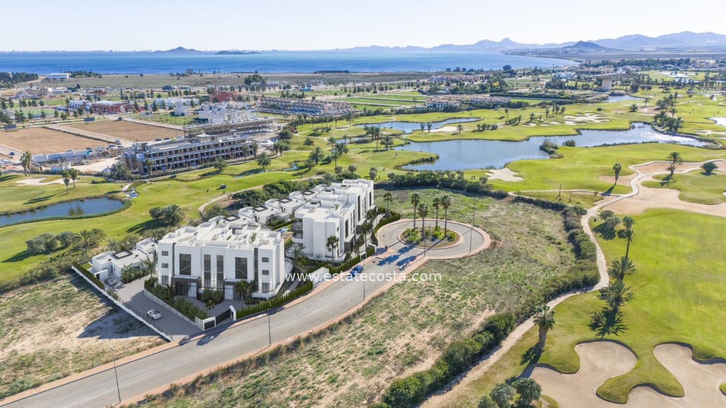New Build Residential on the Frontline of La Serena Golf in Los Alcázares Modern Golf-Front Apartments and Villas in Costa Cálida Located in Los Alcázares, a charming coastal town in the Region of Murcia, this new build residential offers a premium lifestyle in direct contact with nature and the golf course. The development is situated in La Serena Golf, an 18-hole course known for its flat terrain, scenic lakes, and technical challenges brought by the prevailing Levante wind. This exclusive residential complex features 30 modern apartments and 10 single-storey villas, all designed for maximum comfort and style, with panoramic views of the golf course and the surrounding landscapes. Just 1.7 km from the beach and the town centre, the development offers a peaceful and well-connected setting. Distances to key points of interest: Murcia International Airport: 35 km Alicante Airport: 95 km Dos Mares Shopping Centre: 15 km Puerto Deportivo Los Alcázares: 2 km Roda Golf: 4 km Cartagena city centre: 25 km Elegant Apartments with Spacious Terraces or Penthouses with Private Solariums The apartment blocks offer homes with 2 or 3 bedrooms, available on ground and middle floors with large terraces or as penthouses with private solariums. Each apartment includes access to a communal Mediterranean-style garden and a large swimming pool, perfect for relaxation and socializing under the sun. Parking spaces in an underground garage and elevators in each block add to the convenience. Exclusive One-Level Villas with Private Pools The 10 detached villas feature 3 bedrooms, 2 bathrooms and one toilet, all on one level, designed for seamless indoor-outdoor living. Each villa includes a private swimming pool, a garden, a storage room, and private parking. Their location right on the first line of the golf course offers unobstructed views. High-Quality Finishes and Energy-Efficient Design All homes include: Aluminium exterior carpentry with thermal break and motorized shutters LED lighting and black design switches throughout Fitted bathrooms with resin shower trays and glass screens Pre-installed ducted air conditioning Elevators in apartment blocks Storage rooms in villas Modern kitchen and open-plan living areas Live by the Sea and the Green This development is ideal for golf lovers, beach enthusiasts, and anyone looking for a serene lifestyle on the Costa Cálida. With modern architecture, excellent amenities, and unbeatable surroundings, these homes are perfect for both permanent living and investment. Contact us today to schedule your visit and discover your future home in Los Alcázares.