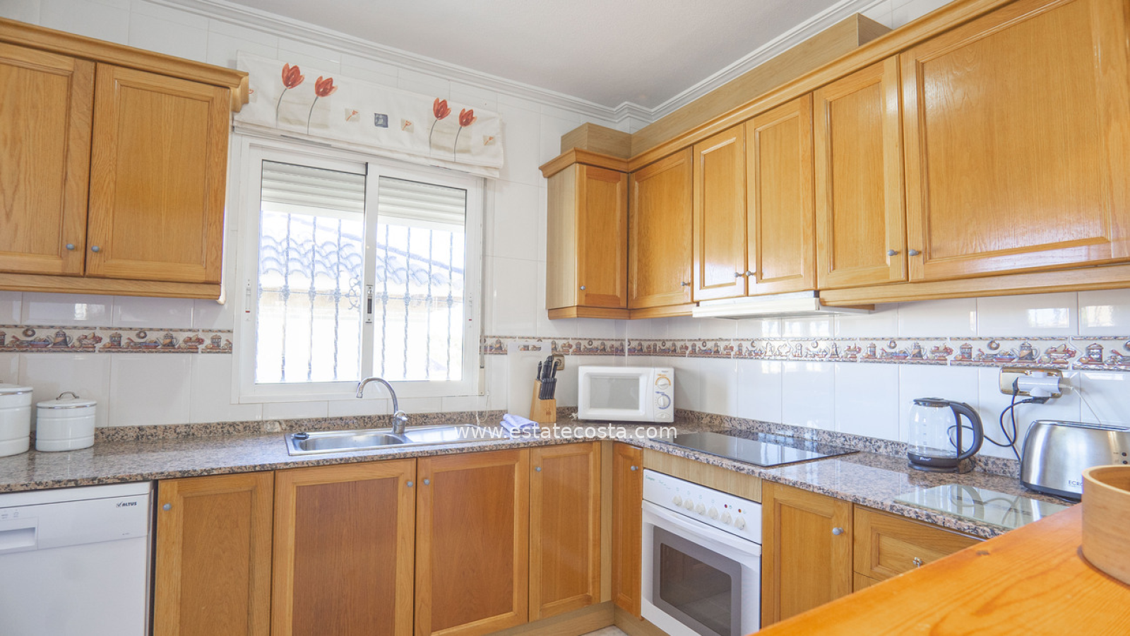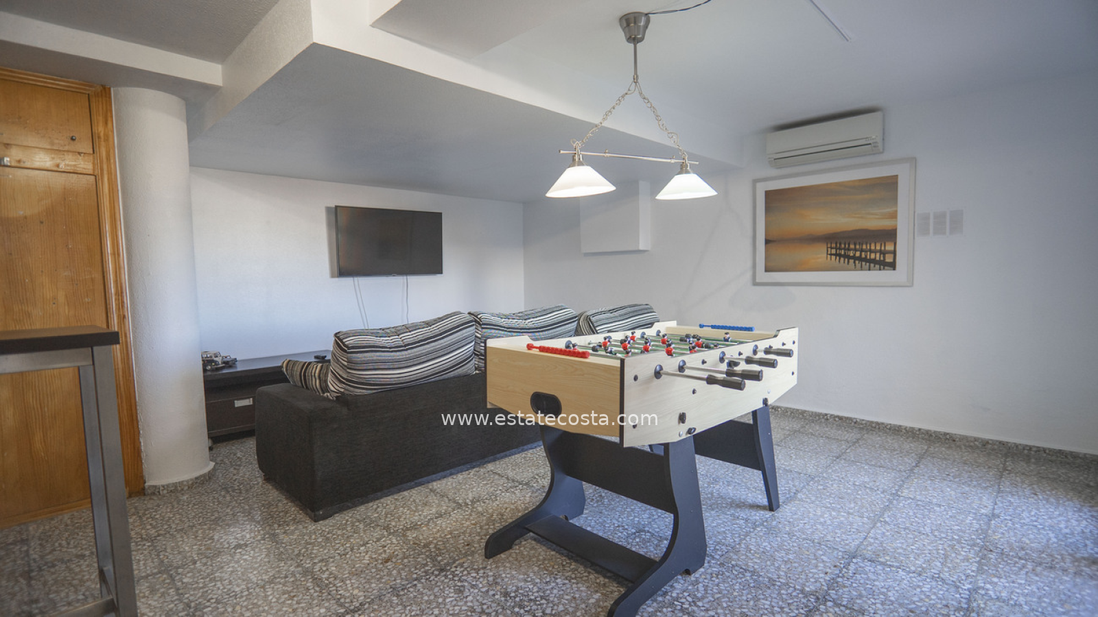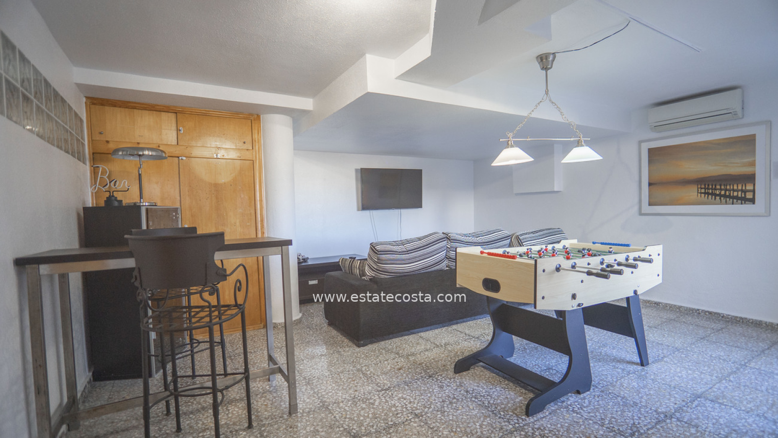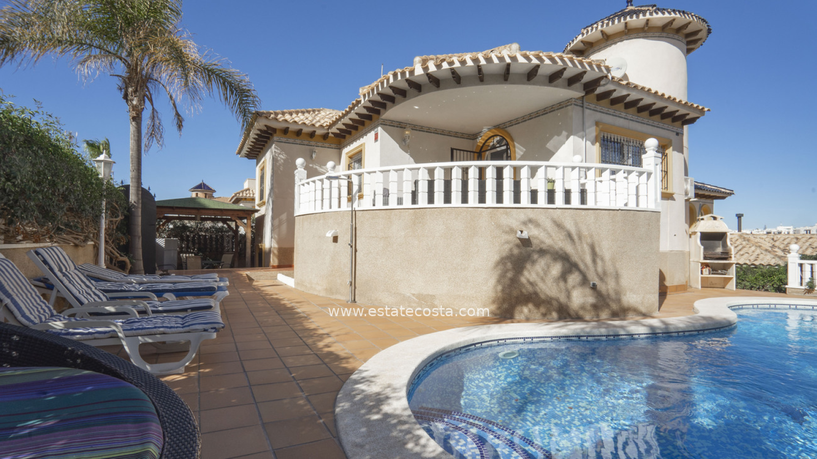 Beautiful Four bedroom property with private pool in Villamartin with Tourist LicenceFour bedroom property with private pool overlooking the 5th tee of Villamartin Golf Course. The property has four bedrooms that sleeps 8, a large living area with open plan kitchen and stairs leading up to a private roof solarium. On the floor level there is a double bedroom with en suite bathroom and twin bedroom with a further family bathroom with a bath . Downstairs there is a further 2 twin bedrooms and a further bathroom with a shower enclosure. The property also has a large games room with bar area, Satellite TV & Wifi. There is a large outside area with BBQ and garden furniture inc sunbeds. Only 20 minute drive to Murcia Airport and 40 minutes from Alicante Airport This property is ideal for large groups or families that want to holiday together but want their own space. It is close to several Golf courses and all amenities. There is ample outside space from the decking area near the pool to the spacious roof solarium with amazing views over the Villamartin golf course. There is a games room with darts and table football table, TV and a bar. The Villa has a Tourist Licence and a proven history of rental income