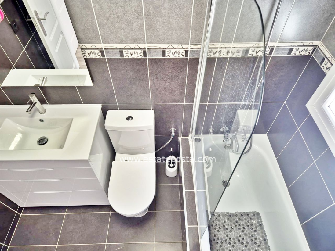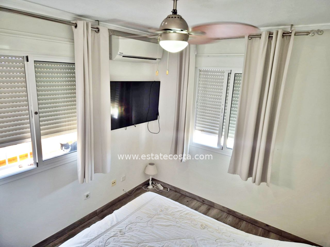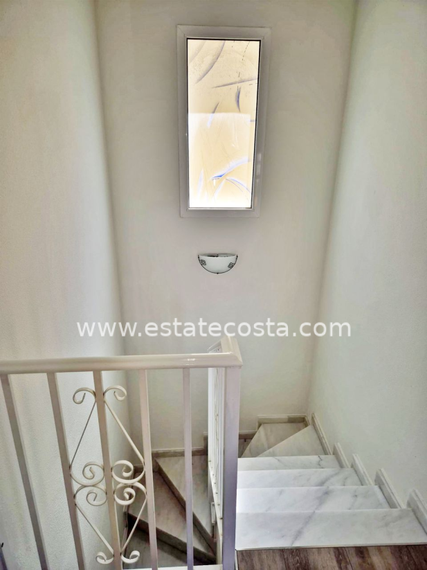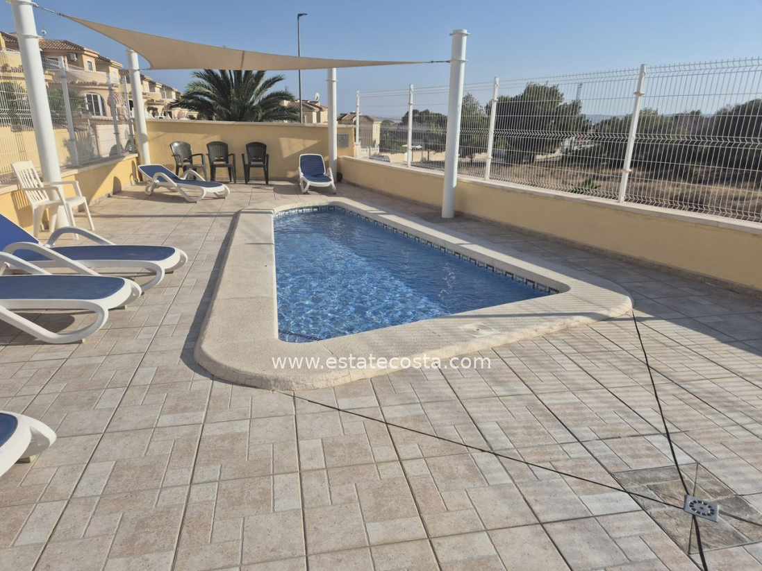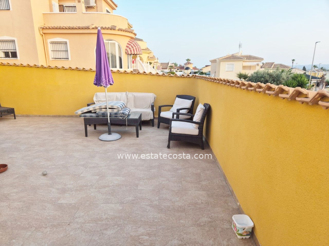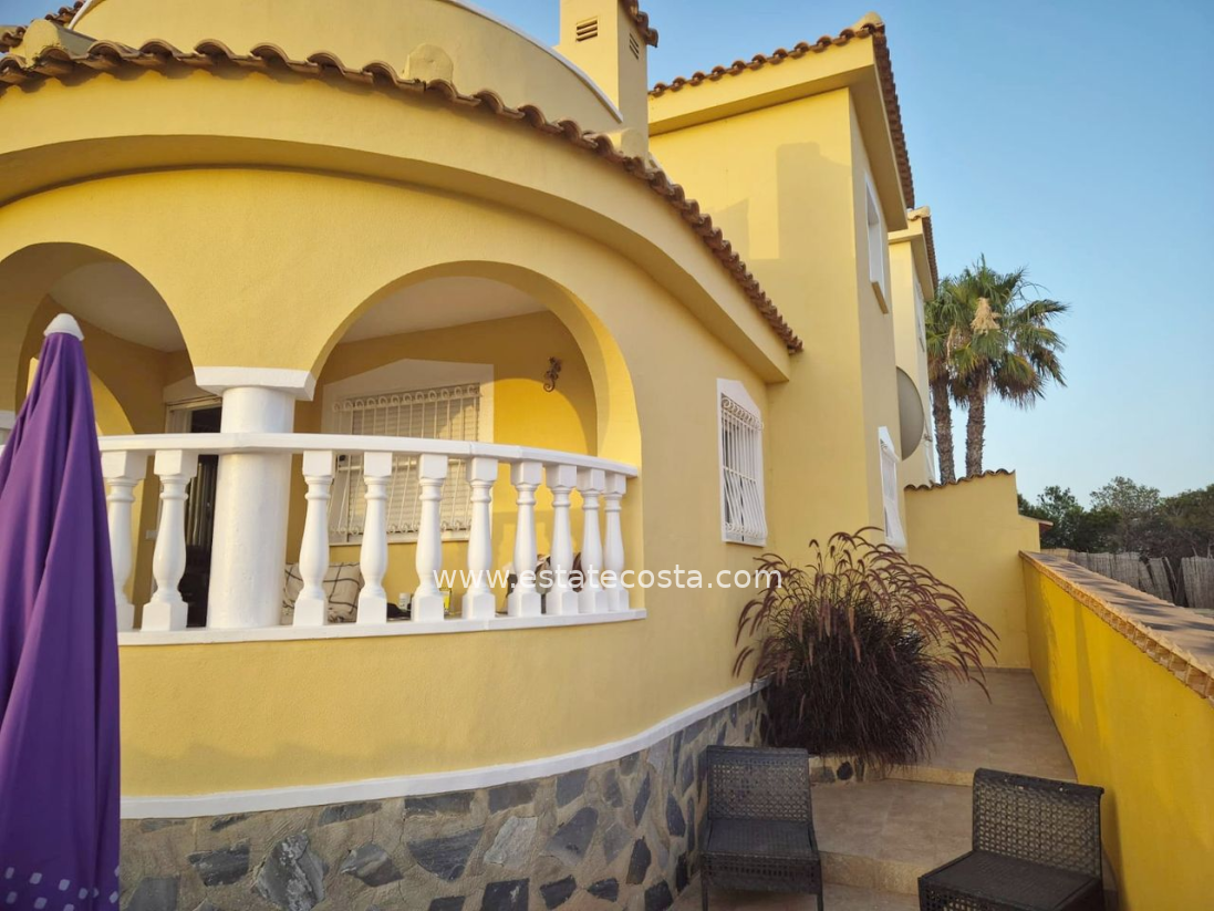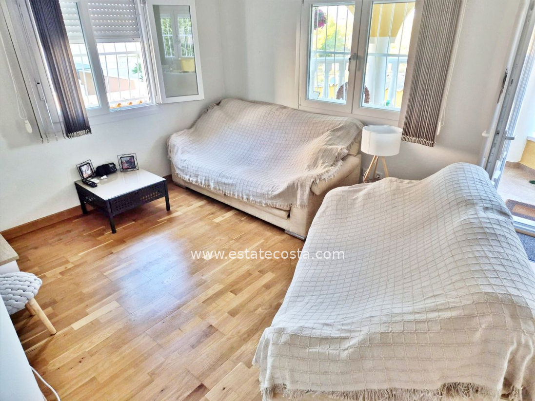 Villa with 3 bedrooms and 2 bathrooms in Ciudad Quesada (Lo Pepin), Alicante.Discover this charming detached villa in the sought-after Lo Pepin area of Ciudad Quesada, Alicante.Positioned on a generous corner plot, the property offers stunning views of the lakes and surrounding landscapes, providing a peaceful retreat. The spacious home features three bedrooms and two bathrooms, with an inviting first-floor terrace perfect for relaxing and enjoying beautiful Spanish sunsets. Surrounded by a low-maintenance tiled terrace, it’s ideal for both full-time living or holiday getaways. Built in 2004, the villa boasts modern comforts such as air conditioning, built-in wardrobes, oak flooring on the ground floor, and ample storage. Residents have access to fantastic communal pools, and the location offers easy access to the AP7 motorway, just about 35-40 minutes from Alicante Airport. With its move-in ready condition, excellent community amenities, and a desirable west orientation, this property presents a perfect blend of comfort and convenience.SUMA/IBI: 150€/YearlyCommunal fees: 30€/MonthlyBedrooms: 3Bathrooms: 2Build Size: 88 m2Plot: 156 m2Orientation: WestYear of construction: 2004Air conditioningMove in readyCorner plotCommunal poolMulti national communityOak flooring (ground floor)TerraceBalconyGood conditioningBuilt-in wardrobesStorage