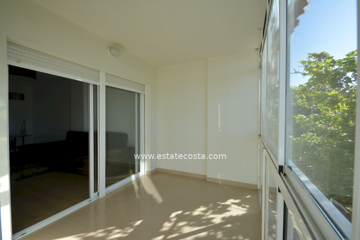 Spacious and bright apartment located in the quiet and modern SUP 7 area of Guardamar del Segura, just 1 km from the beach and the town center. The area offers a perfect balance between comfort and tranquility, with a large supermarket only a short walk away and easy access to all services. The apartment has 91 m² of constructed area and is situated on the first floor of a well-maintained building with an elevator. It features three bedrooms with built-in wardrobes and two bathrooms, one with a bathtub and the other with a shower cabin, both with windows for natural ventilation. The kitchen is separate and fully equipped, including a practical utility room. The living room opens onto a large glazed, south-facing terrace that fills the apartment with sunlight throughout the day. Being a corner unit, it enjoys extra privacy, as only the living room and kitchen share walls with a neighboring apartment. The property includes ducted air conditioning for both heating and cooling, ensuring comfort all year round. Two parking spaces are included in the price: one in the underground garage and another in an allocated outdoor area. The gated community offers extensive green areas, a communal swimming pool, a padel tennis court, a football field, and pleasant social spaces. With open views, excellent natural light, and a convenient location close to the beach and amenities, this apartment is in good condition and ready to move into. Taxes and purchase expenses are not included in the price.