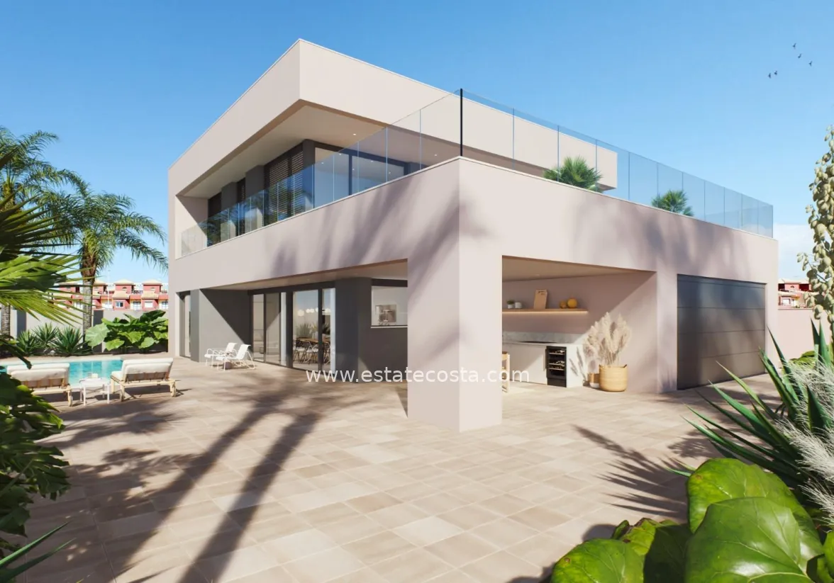 NEW BUILD VILLA IN TORRE DE LA HORADADA Modern New Build villa near Higuericas beach in Torre de la Horadada. The villa consists of a plot of 618 m², with 344 m² constructed. Villa has 5 bedrooms: two of them with complete bathroom and dressing room. Kitchen furnished with top quality materials to be chosen by the owner, including electrical appliances, following an open concept with the dining room surrounded by large windows that provide throughout the day a pleasant light and direct access to the pool and private garden areas completely finished. Air conditioning (hot/cold) by ducts included. Taking care to the smallest detail in the finishes, using the highest quality materials, personalized design and luxury without forgetting the maximum comfort, we achieve the enjoyment of housing both in summer and in the mild winter, making it habitable throughout the year. In addition to a covered garage area for 2 vehicles and parking for another car. Villa located 100m from the Higuericas beach, in Torre de la Horadada, a paradise in all aspects, where you can enjoy the immensity of the Mediterranean Sea, the promenade, refreshing swims in the sea, water sports, sailing, surfing, snorkelling and just 8 km from Lo Romero Golf, one of the 21 golf courses on the Costa Blanca. 5 minutes from the marina of La Torre de la Horadada and 10 minutes from the marinas of San Pedro del Pinatar, and the best restaurants where you can enjoy the best Mediterranean cuisine. Not forgetting the proximity of the AP7 motorway that connects our residential with two airports with international destinations, 44 km from Corvera and 75km from El Altet, Alicante. The nearest town to the area where the development is located is Pilar de la Horadada, 1 km away, a quiet town with all kinds of services, schools, health centres, police, pharmacies, etc. There are also two commercial areas nearby, the Dos Mares Shopping Centre in San Javier, a 5 minute drive away and La Zenia Boulevard in Orihuela Costa, a 15 minute drive away.