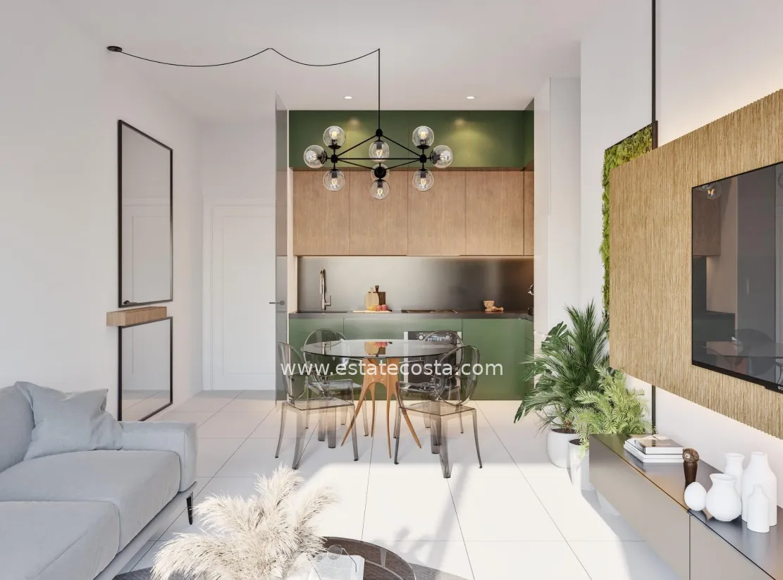 Discover Modern Living at the New Residential Development in San Miguel de Salinas Spacious Apartments with Stunning Amenities This new construction residential complex in San Miguel de Salinas offers contemporary 2- and 3-bedroom apartments with expansive terraces, thoughtfully distributed across seven floors. The gated community provides top-notch facilities, including separate swimming pools for adults and children, lush green areas, a children’s playground, and an adult wellness zone with a biosaludable circuit. Prime Location on the Costa Blanca Nestled in the charming town of San Miguel de Salinas, this development enjoys a strategic location on the Costa Blanca. It’s within walking distance of the town center, where you’ll find all the essential services for daily living, including shops, restaurants, and healthcare facilities. The property is a short drive from several points of interest: Las Colinas and Campoamor Golf Courses: Just 7 km away, perfect for golf enthusiasts. Beaches of Orihuela Costa and Torrevieja: Located approximately 10 km from the residence, offering beautiful sandy shores. Shopping Centers: Zenia Boulevard, a popular shopping destination, is only 9 km away. Alicante Airport: A convenient 50 km drive. Murcia Corvera Airport: About 55 km away, ideal for regional connections. High-Quality Specifications Each apartment is designed with modern finishes and functionality in mind: Fully equipped kitchens with induction cooktops and extractor hoods. Porcelain tile flooring throughout. Compact roller shutters for added privacy and convenience. White laminated wardrobes with overhead storage in bedrooms. Pre-installed air conditioning in the living room and bedrooms. Energy-efficient aerothermal water heaters with a 150-liter capacity. Additionally, all apartments include a designated parking space, with an optional storage room available at an additional cost. About San Miguel de Salinas San Miguel de Salinas is a picturesque municipality in the Vega Baja del Segura region, part of the vibrant Valencian Community. Situated close to the Murcia border, the town offers breathtaking views of the Torrevieja and La Mata lagoons, as well as a peaceful, family-friendly environment. Your New Home Awaits Whether you're looking for a vacation retreat or a permanent residence, this new development in San Miguel de Salinas combines luxury, convenience, and an unbeatable location. Contact us today to schedule a visit and take the first step toward owning your dream property on the Costa Blanca!