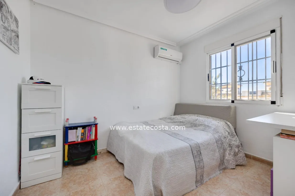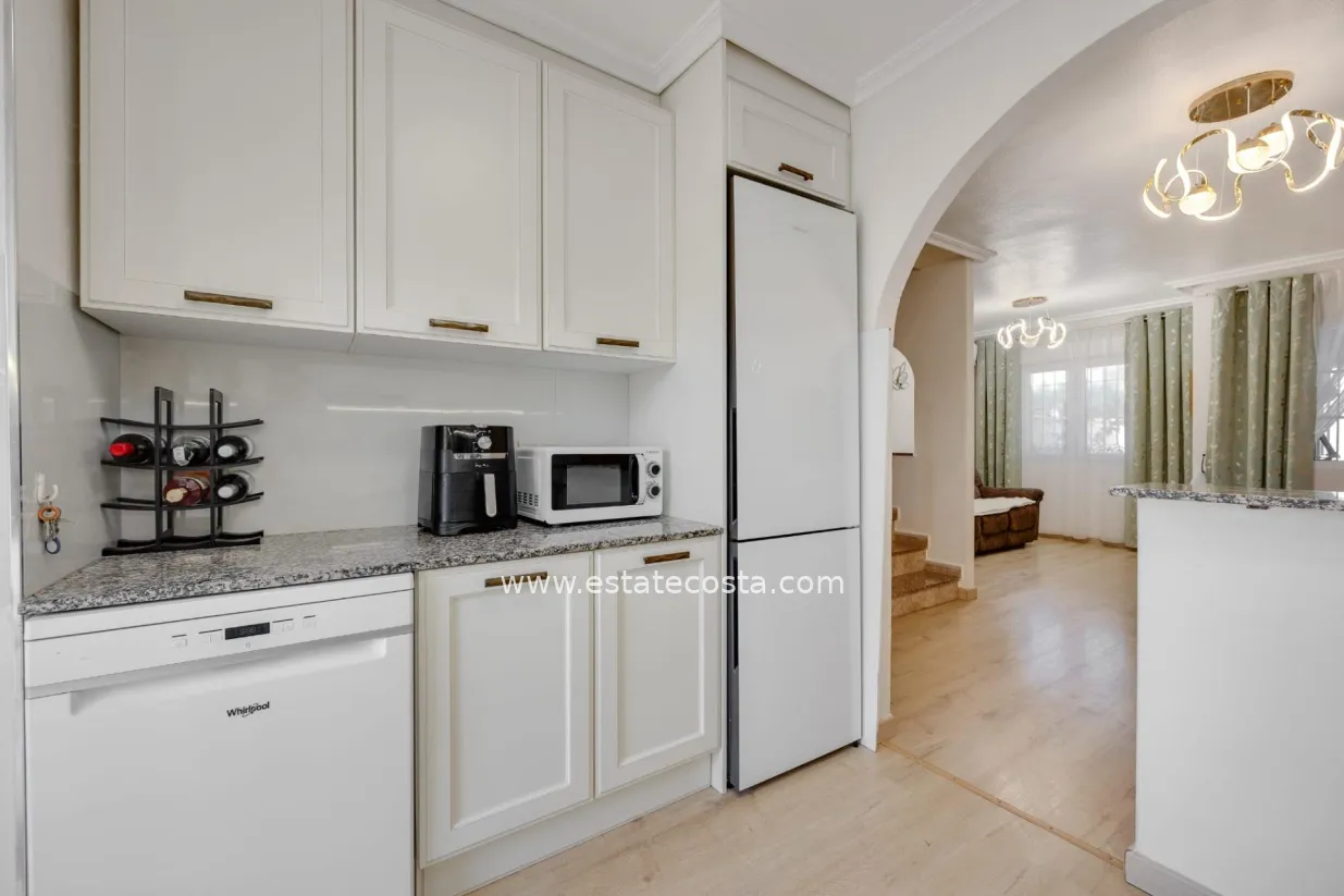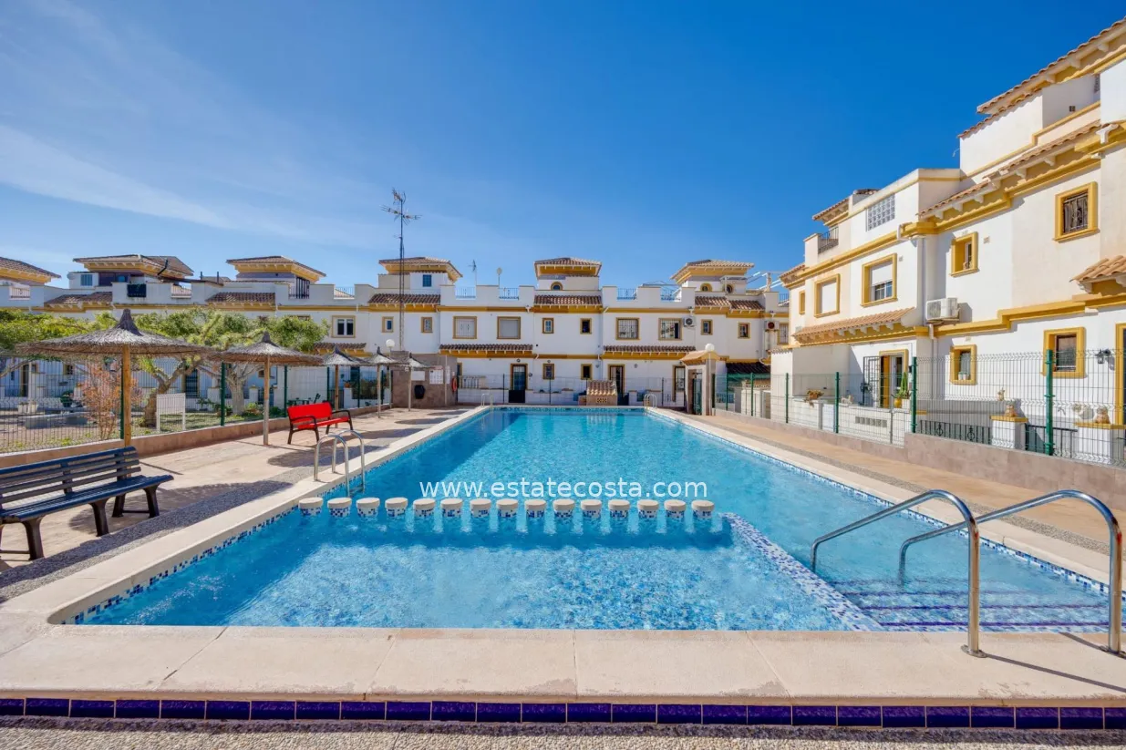 In a city where the sun shines for much of the year and the Mediterranean lifestyle is a natural part of life, this townhouse in Torrevieja offers an opportunity to enjoy a peaceful and comfortable life surrounded by a pleasant environment. Located in a residential area with a relaxed and welcoming atmosphere, this home invites you to experience the perfect balance between urban life and the tranquility characteristic of areas near the sea. Torrevieja has established itself as one of the most desirable places on the Costa Blanca to live or invest. Its privileged climate, international atmosphere, and constant proximity to the Mediterranean give each day a special energy. The city combines tradition and modernity, offering a wide variety of services, leisure activities, and natural spaces that enrich daily life. This townhouse conveys a sense of home from the moment you step inside. The concept of a townhouse has a particular charm, combining the comfort of a house with the close-knit community where you share a pleasant environment. This type of property is especially appealing to those seeking a more tranquil lifestyle without sacrificing the convenience of having everything close by. One of the most attractive features of the property is the swimming pool. In Mediterranean areas like Torrevieja, having a pool is a true privilege. It not only provides a space for leisure and relaxation but also creates a social atmosphere where it's possible to unwind, soak up the sun, or share moments with family and friends. The presence of a swimming pool transforms the experience of living in a home. During the summer months, it becomes the ideal place to cool off and escape the heat. In spring and autumn, the pool area remains a pleasant space to spend time outdoors and enjoy the mild climate of the Costa Blanca. The house offers a welcoming and balanced atmosphere. Its two bedrooms allow it to adapt to different lifestyles, from couples seeking tranquility to small families wishing to settle in a coastal city with a high quality of life. It can also be an excellent option for those looking for a second home to escape the fast pace of big cities. Torrevieja stands out for its open and multicultural character. Over the years, it has become a meeting point for people from different parts of Europe and the world. This diversity creates a dynamic and enriching atmosphere where it is easy to integrate and enjoy new cultural experiences. Living in a townhouse offers a sense of community that many people particularly value. Sharing common spaces and living in a peaceful residential environment creates a closer and more pleasant living experience. At the same time, each home maintains its own privacy, allowing residents to enjoy moments of rest in complete tranquility. The proximity to the sea is one of Torrevieja's greatest attractions. Strolling along the promenade, enjoying its beaches, or watching the sunset over the Mediterranean have become everyday activities for those who live here. The city invites you to enjoy the outdoors, to walk, to spend time on terraces, and to take advantage of the climate that characterizes this coastal area. This townhouse fits perfectly with that lifestyle. Its relaxed atmosphere and residential setting allow you to enjoy a more leisurely pace of life, where time seems to flow more calmly. It's a home that invites you to disconnect from daily stress and appreciate the little moments. The swimming pool once again takes center stage as one of the most special spaces. On sunny days, it becomes the ideal place to unwind, while in the afternoons it offers a pleasant setting for conversation and leisure time.