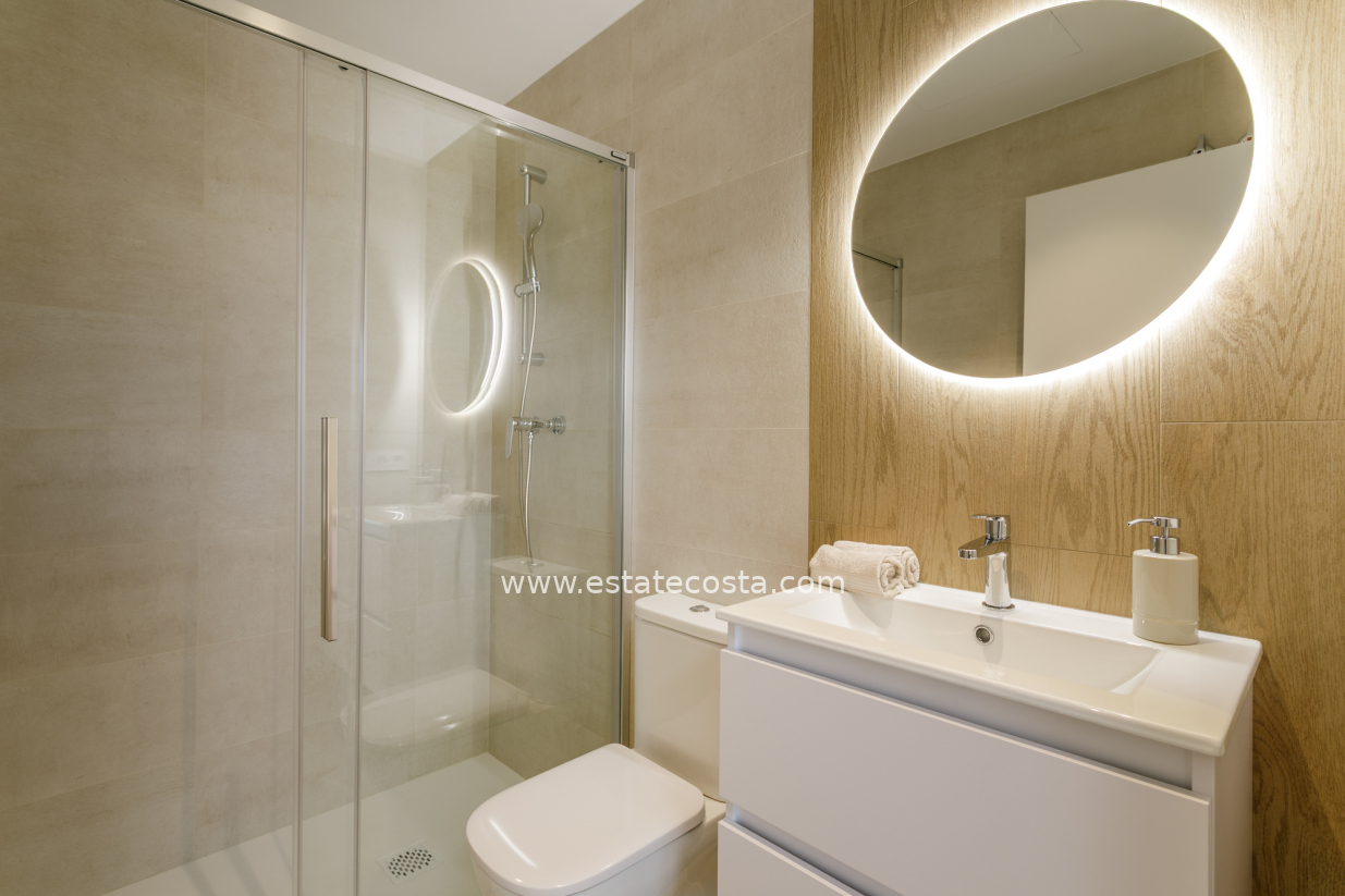 NEW BUILD GATED URBANIZATION IN TORREVIEJA ONLY 700M FROM THE BEACH New Build residential complex of 362 apartments with large community areas in Torrevieja. You can choose between luxury 2 bedrooms and 2 bathrooms apartments , 3 bedrooms and 2 bathrooms penthouses with private solarium and 2 bedroom, 2 bathroom ground floor apartments with private garden. -Modern designs and quality finishes and materials -Almost all apartments will have sea views -All apartments comes with large front terraces facing the community areas -Communal areas with two swimming pools for adults, children's pool, children's area, gym, sports area and spa, bicycle parking and vehicle parking area -700 meters to La Mata Beach, 10 minutes walking -In front of Torremarina Shopping Center with Mercadona, restaurants, cafes and other shops Torrevieja is a Spanish town in the province of Alicante, on the Costa Blanca. It is known for its typically Mediterranean climate and coastline. It has boardwalks with resorts along its sandy beaches. The small Museum of the Sea and Salt houses exhibitions on the fishing and salt history of the city. In the interior, the Lagunas de La Mata-Torrevieja Natural Park has trails and two salty lagoons, one pink and the other green. Alicante airport located 40 minutes away and Murcia airport about 1 hour away.