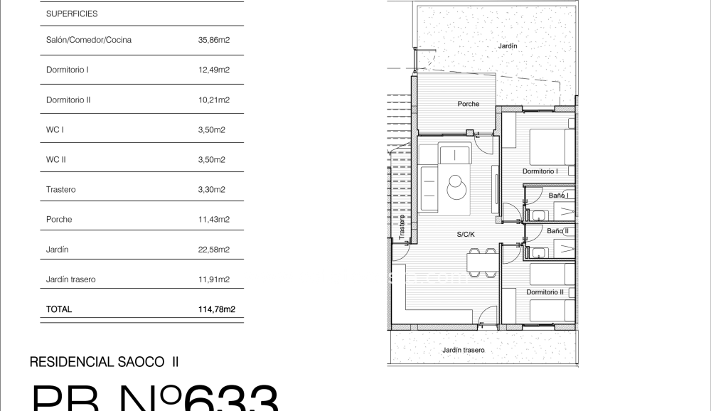 Lower bungalow with garden with 2 bedrooms and 2 bathrooms: From 174 900 €
