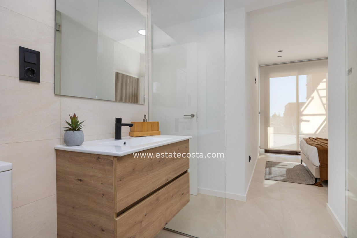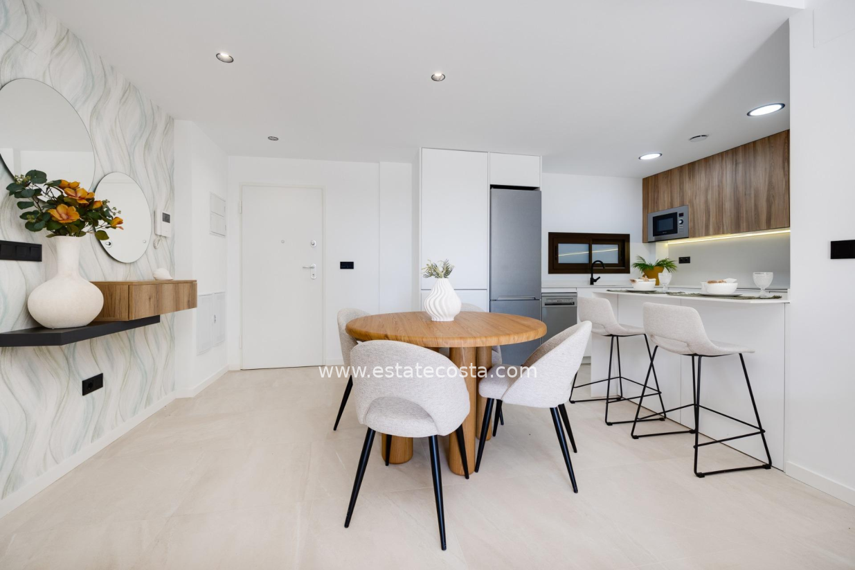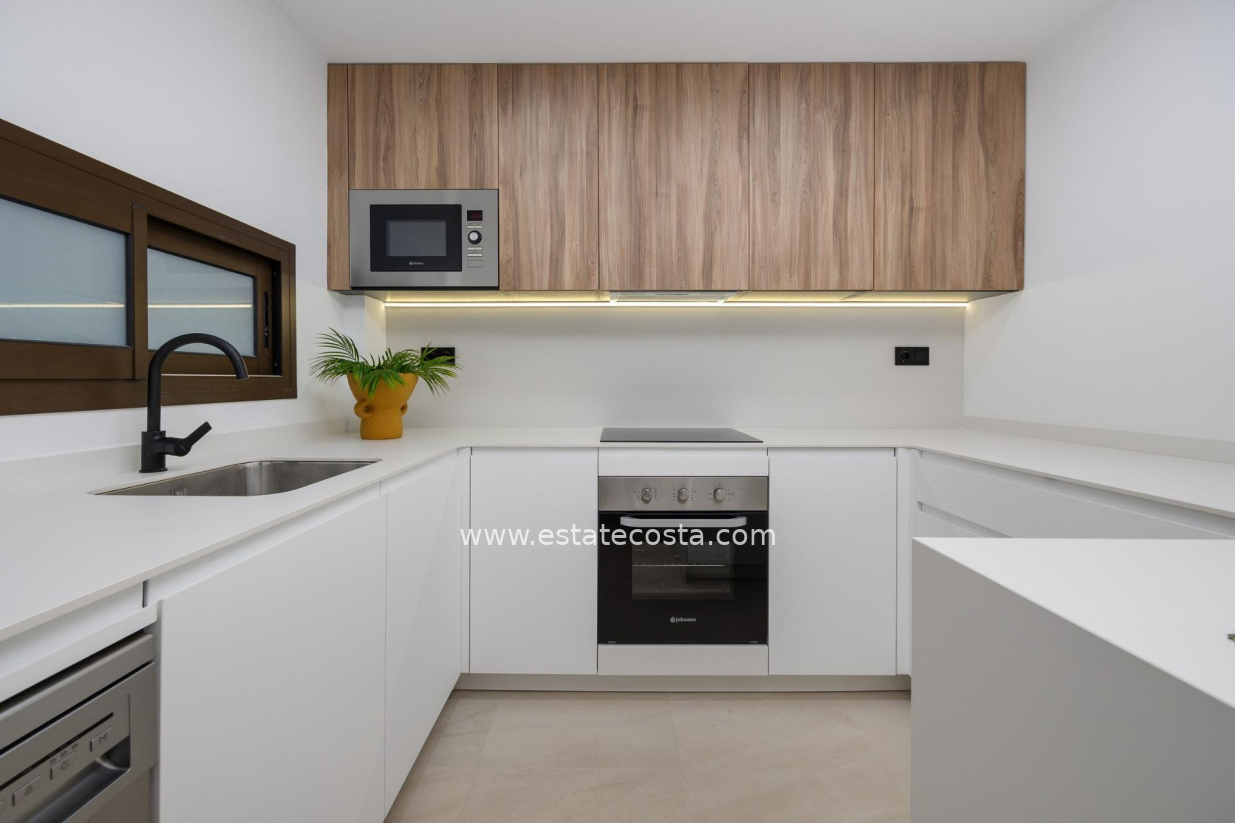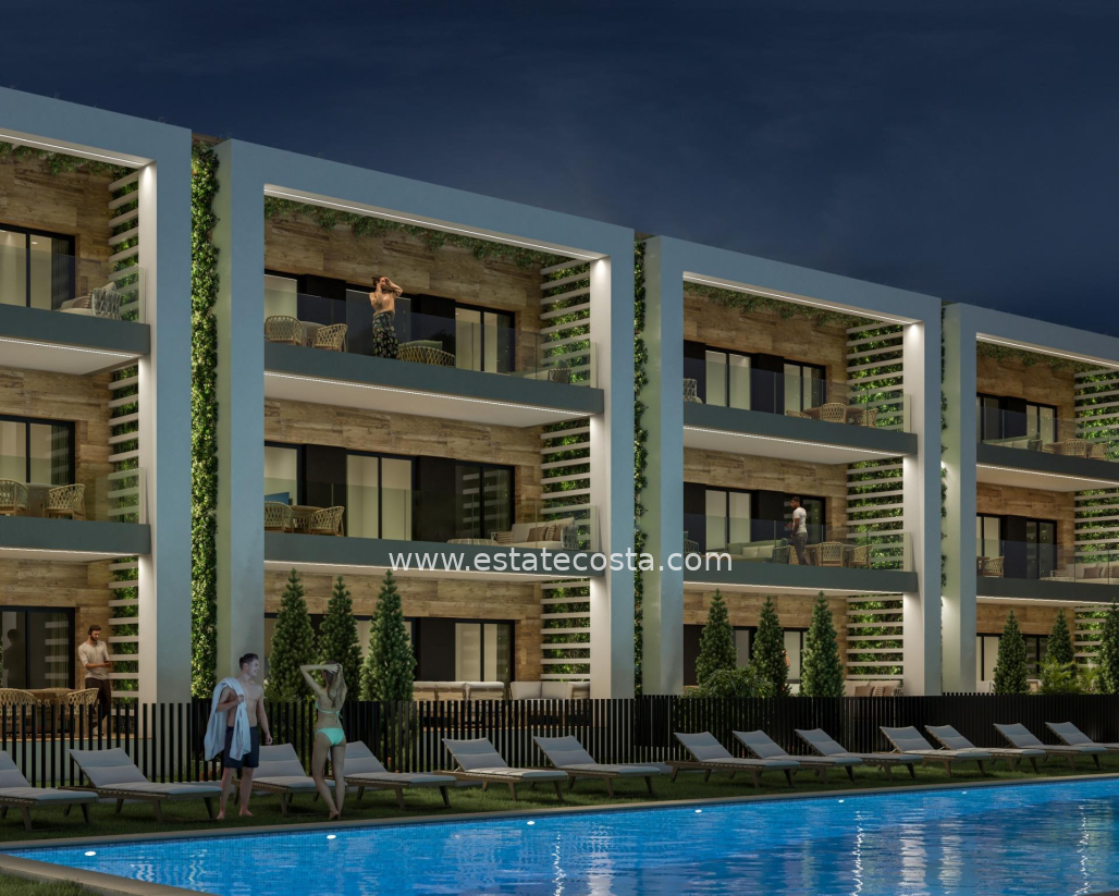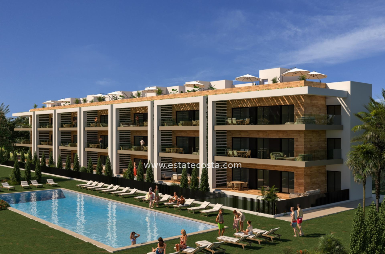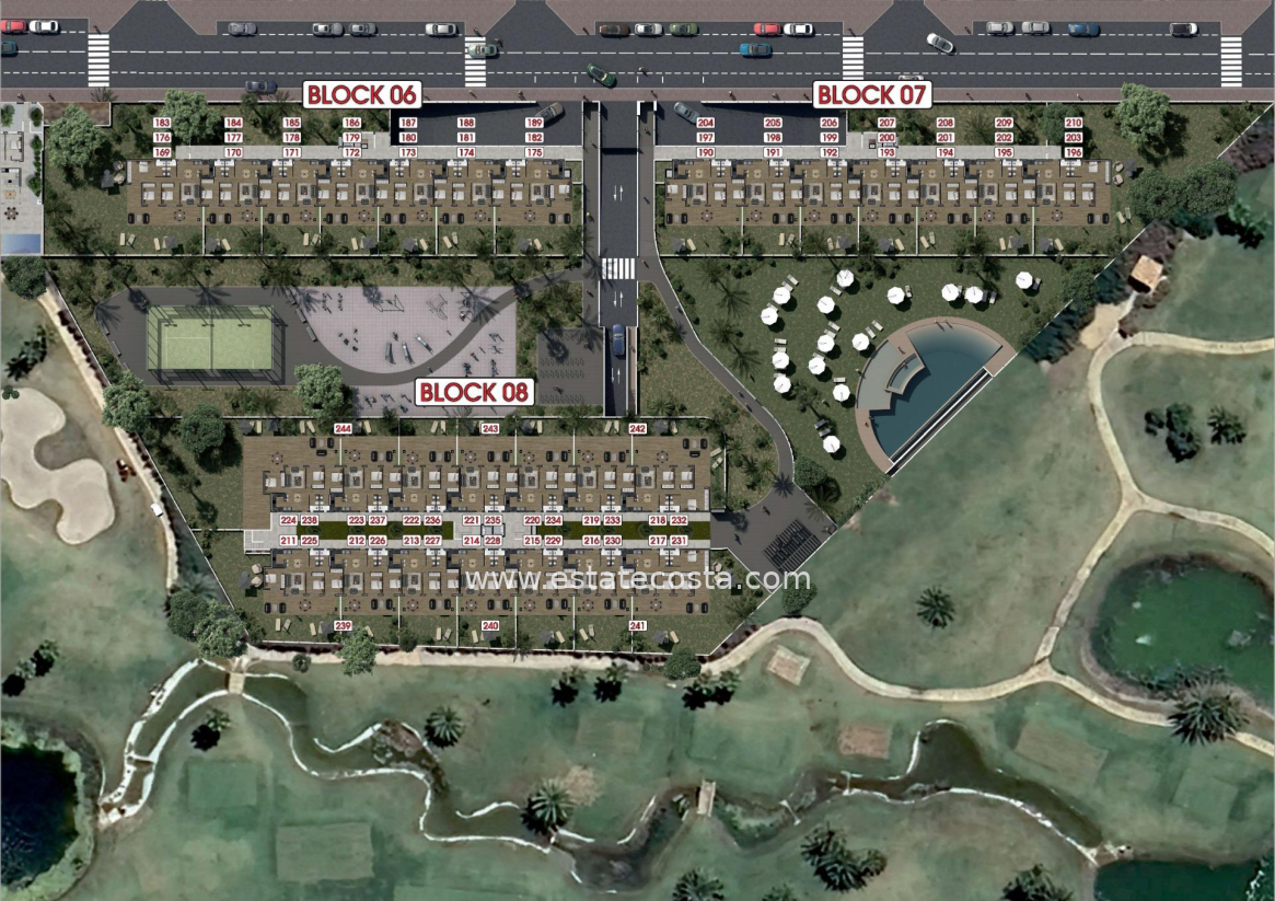 NUEVO COMPLEJO RESIDENCIAL CERCA DE LA SERENA GOLF, LOS ALCAZARES Este increíble complejo de obra nueva estará formado por 244 apartamentos de 2 y 3 dormitorios, divididos en 8 bloques y 20 Villas privadas. Apartamentos modernos en 3 plantas (planta baja más 2), planta baja con bonitos jardines, y algunos de ellos con piscina privada y segunda planta con bonitas terrazas y solariums privados. Apartamentos en esquina (4 por planta) y los de planta alta tienen 3 dormitorios y el resto 2 dormitorios. Viviendas orientadas al Este con vistas a las zonas comunes y al Oeste con maravillosas vistas al campo de golf. Complejo con piscina comunitaria y zonas comunes. Cada apartamento tiene su propia plaza de aparcamiento y trastero privado en el sótano, incluido en el precio. Residencial situado en primera línea del prestigioso campo de golf "La Serena Golf". Este campo de golf es muy conocido por sus lagos y vegetación que se entrelazan con el campo de golf. El agua y los lagos están presentes en 16 de los 18 hoyos, pero todo el recorrido está diseñado para ofrecer al golfista diferentes estrategias en cada hoyo. Otro aspecto que hace único a este campo de golf es que está conectado a pie con el centro de la ciudad, algo imposible de encontrar en otros lugares de golf que nos permiten disfrutar de la tranquilidad y la belleza de la zona sin renunciar al acceso a los servicios que ofrece Los Alcázares. Los Alcázares una zona excepcional en la Costa Cálida a tan sólo 25 minutos del aeropuerto de Murcia y 55 min del aeropuerto de Alicante. La zona está conectada a través de autovía con las ciudades de Cartagena, Murcia y Alicante y el resto de playas de la Costa Cálida y la Costa Blanca.