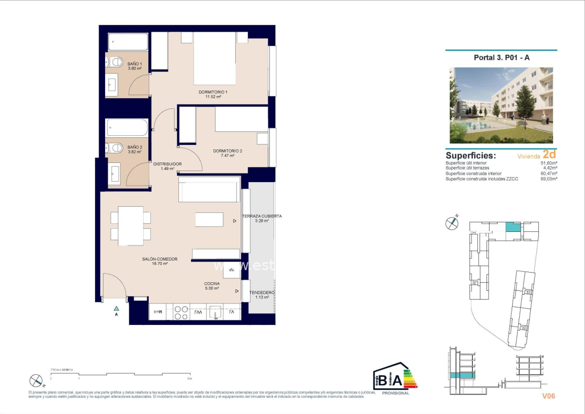 Nueva Promoción Residencial en Alicante con Vistas Abiertas Viviendas de Obra Nueva en una Ubicación Privilegiada Descubra este exclusivo residencial de nueva construcción en Alicante, diseñado para ofrecer el máximo confort y calidad de vida. Con 84 viviendas de 2 y 3 dormitorios, este complejo se sitúa en San Agustín - Pau II, una zona estratégica con todos los servicios esenciales a su alcance. Los residentes disfrutarán de un entorno moderno y funcional, con amplias zonas ajardinadas, piscina comunitaria, área de juegos infantiles, plazas de garaje y trasteros. Además, su ubicación en un punto elevado garantiza vistas despejadas de la ciudad y del entorno natural circundante. Servicios y Comodidades en la Zona Este residencial se encuentra rodeado de una amplia oferta de servicios que facilitarán su día a día: Centros educativos: Hasta 9 colegios e institutos en las proximidades. Supermercados y comercios: Cuatro grandes supermercados cercanos. Centro Comercial Isla de Corfú: Con tiendas, gimnasios, restaurantes y comercios variados. Instalaciones deportivas: Espacios para el ejercicio y actividades al aire libre. La excelente infraestructura del barrio garantiza comodidad, seguridad y accesibilidad, convirtiéndolo en un lugar ideal tanto para familias como para inversores. Calidades y Diseño de las Viviendas Las viviendas han sido diseñadas con un enfoque moderno y eficiente, incorporando materiales de alta calidad y tecnología sostenible: Puerta de acceso blindada para mayor seguridad. Aire acondicionado por conductos (frío-calor) instalado. Carpintería con rotura de puente térmico y acristalamiento con doble vidrio para mejorar el aislamiento térmico y acústico. Producción de agua caliente sanitaria mediante aerotermia, garantizando eficiencia energética y sostenibilidad. Un Entorno con Acceso Rápido a los Principales Puntos de Interés El barrio de San Agustín se sitúa sobre una suave colina, ofreciendo vistas panorámicas del perfil urbano de Alicante, el Monte Benacantil y las montañas de los alrededores. Su clima mediterráneo y la cercanía a espacios verdes y zonas de ocio hacen que sea un lugar ideal para vivir. Distancias clave: Centro de Alicante – 2 km. Aeropuerto Alicante-Elche – 14 km. Playa de San Juan – 6 km. Campo de Golf de Alicante – 7 km. Puerto de Alicante – 5 km. Viva el Estilo de Vida Mediterráneo en Alicante Alicante ofrece un clima excepcional, una vibrante vida cultural y una infraestructura de primer nivel, lo que la convierte en una de las ciudades más deseadas de España. Esta nueva promoción residencial en San Agustín - Pau II combina un diseño elegante con una ubicación inmejorable. Contáctenos hoy mismo para programar una visita y descubrir su próxima vivienda en Alicante.