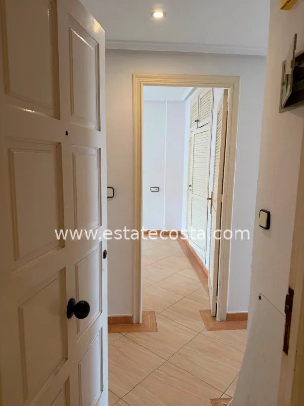 Situado en el codiciado barrio de Las Frutales en Torrevieja, este apartamento ofrece una oportunidad única en primera línea de mar. En la primera planta, la propiedad consta de dos dormitorios, un cuarto de baño, un luminoso salón y una cocina. El apartamento necesita una renovación, pero tiene un enorme potencial gracias a su excepcional ubicación y sus espacios exteriores. Disfrutará de una hermosa terraza con impresionantes vistas frontales al mar, ideal para relajarse frente al Mediterráneo. La propiedad también cuenta con un solárium privado, perfecto para disfrutar del sol durante todo el año, y un trastero. La residencia ofrece una agradable piscina comunitaria, ideal para refrescarse durante los meses de verano. Una propiedad ideal para un proyecto de renovación, una segunda residencia o una inversión de alquiler en uno de los barrios más cotizados de la costa.
