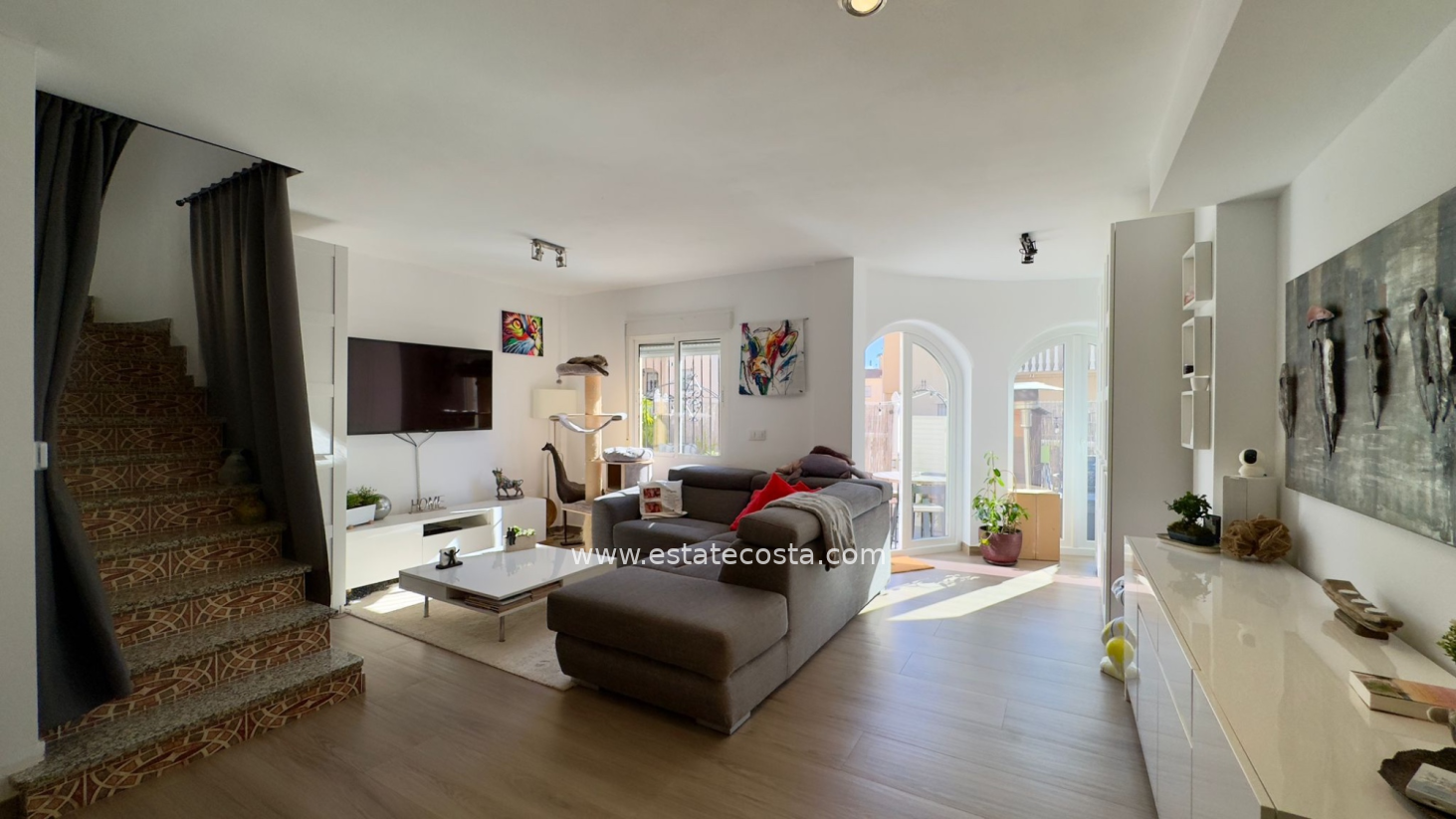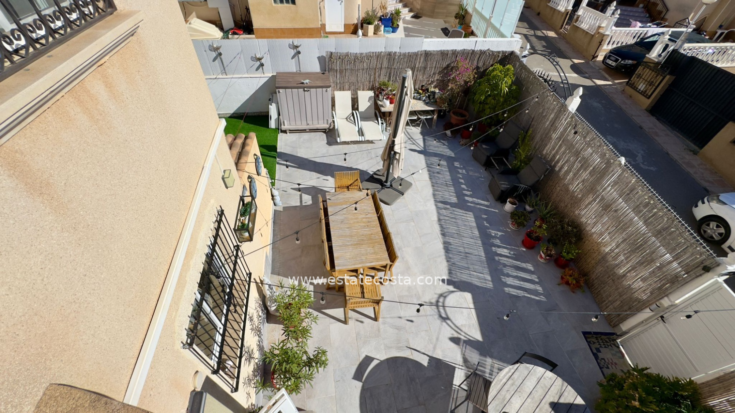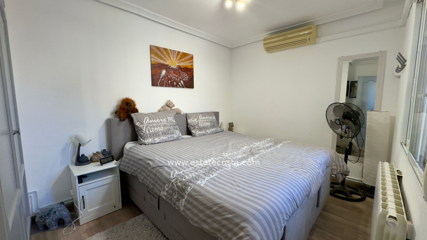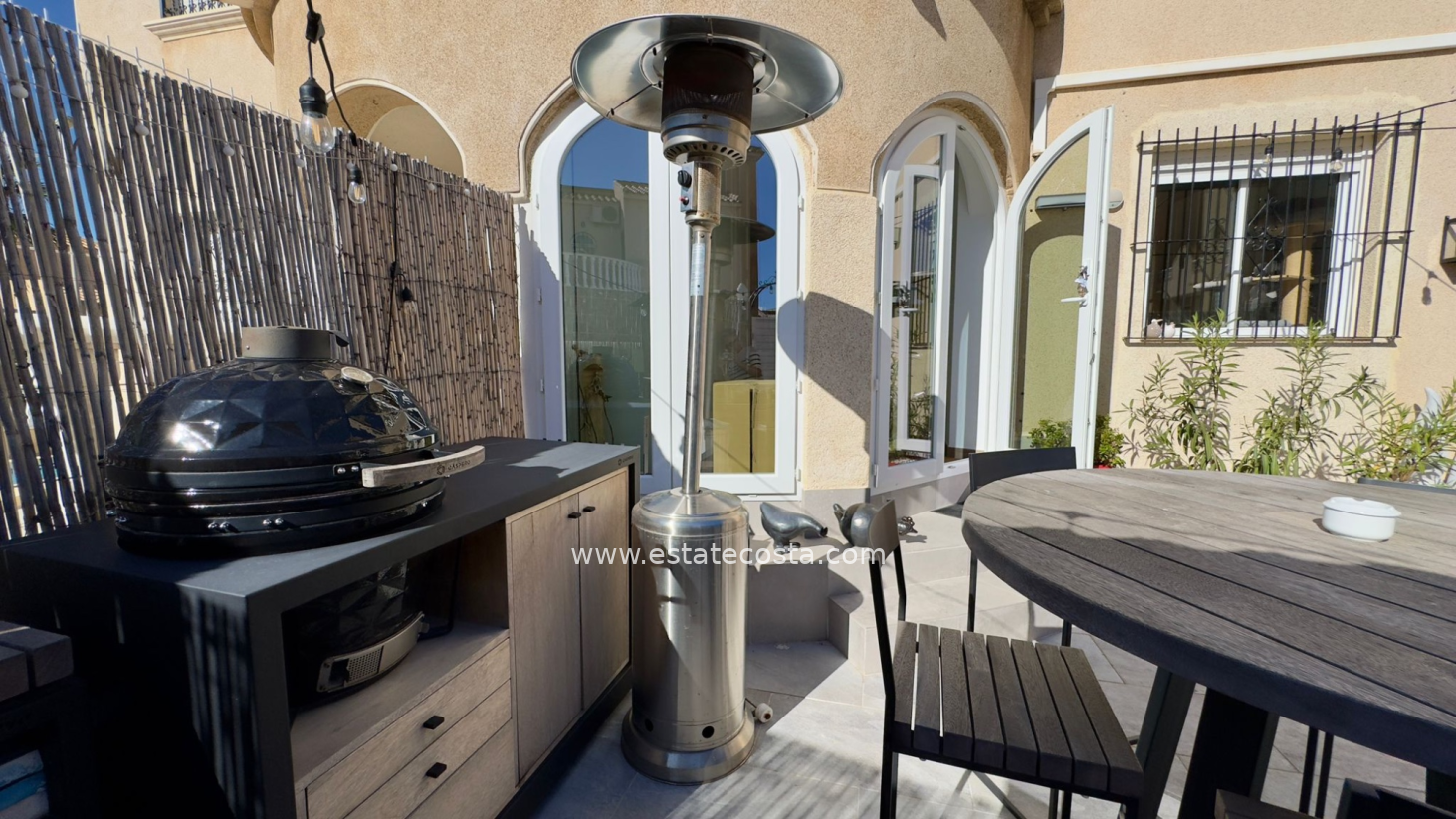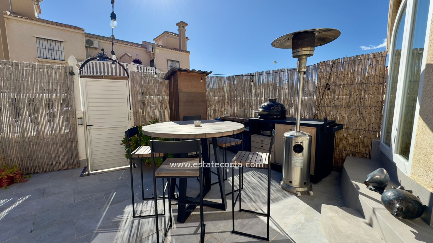 Esta magnífica villa fue completamente renovada en febrero de 2023 con materiales de alta calidad. Se modernizaron los suelos, la cocina, los baños, la instalación eléctrica y las paredes , lo que le confiere a la casa un aspecto contemporáneo y renovado. La villa se encuentra en una amplia parcela privada con una espaciosa terraza pavimentada y una piscina privada climatizada con jacuzzi , ideal para disfrutarla durante todo el año. Hay espacio de sobra para comer al aire libre, tomar el sol o recibir invitados. Además, hay una piscina comunitaria a poca distancia a pie. La planta baja consta de un luminoso y espacioso salón-comedor, una cocina moderna y un elegante baño con ducha a ras de suelo y lavandería. En la planta superior, hay dos dormitorios dobles con armarios empotrados y un moderno y espacioso baño, también con ducha a ras de suelo. La suite principal cuenta con una terraza privada con vistas impresionantes. Una escalera conduce a la terraza de la azotea , cubierta de césped artificial , un lugar ideal para relajarse o recibir invitados. Debajo de la escalera hay un práctico trastero . En esta planta también hay una habitación adicional que podría utilizarse como tercer dormitorio, despacho o taller. La casa se vende parcialmente amueblada , incluyendo electrodomésticos y aire acondicionado . El complejo residencial Zodiaco V goza de una ubicación privilegiada : a tan solo 500 metros de tiendas, bares, restaurantes y una parada de autobús. El popular centro comercial La Fuente y la plaza Villamartín se encuentran a unos 20 minutos a pie , mientras que las playas, los campos de golf y el centro comercial Zenia Boulevard están a un corto trayecto en coche. Una villa única, renovada con estilo, que combina a la perfección confort, diseño moderno y una ubicación excepcional . ¡Esta casa bellamente renovada te espera! No dudes en contactarnos para obtener más información o para programar una visita.