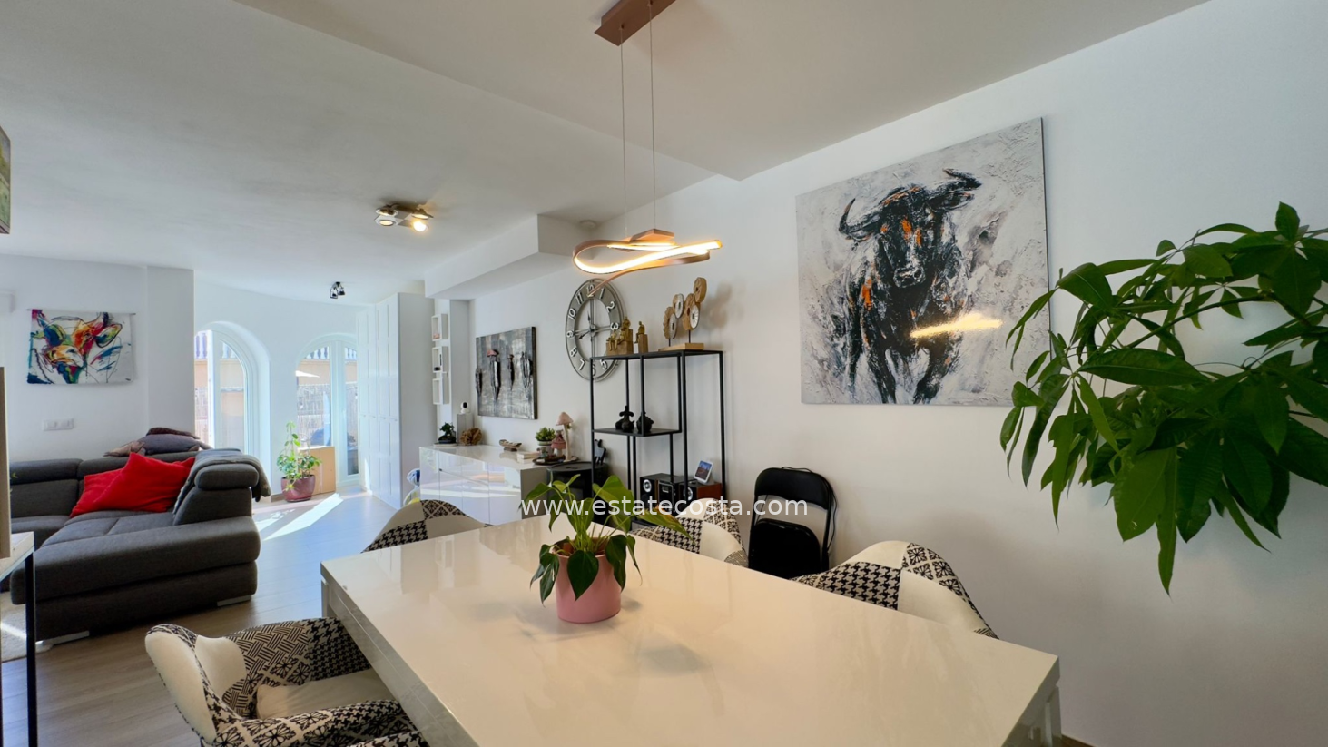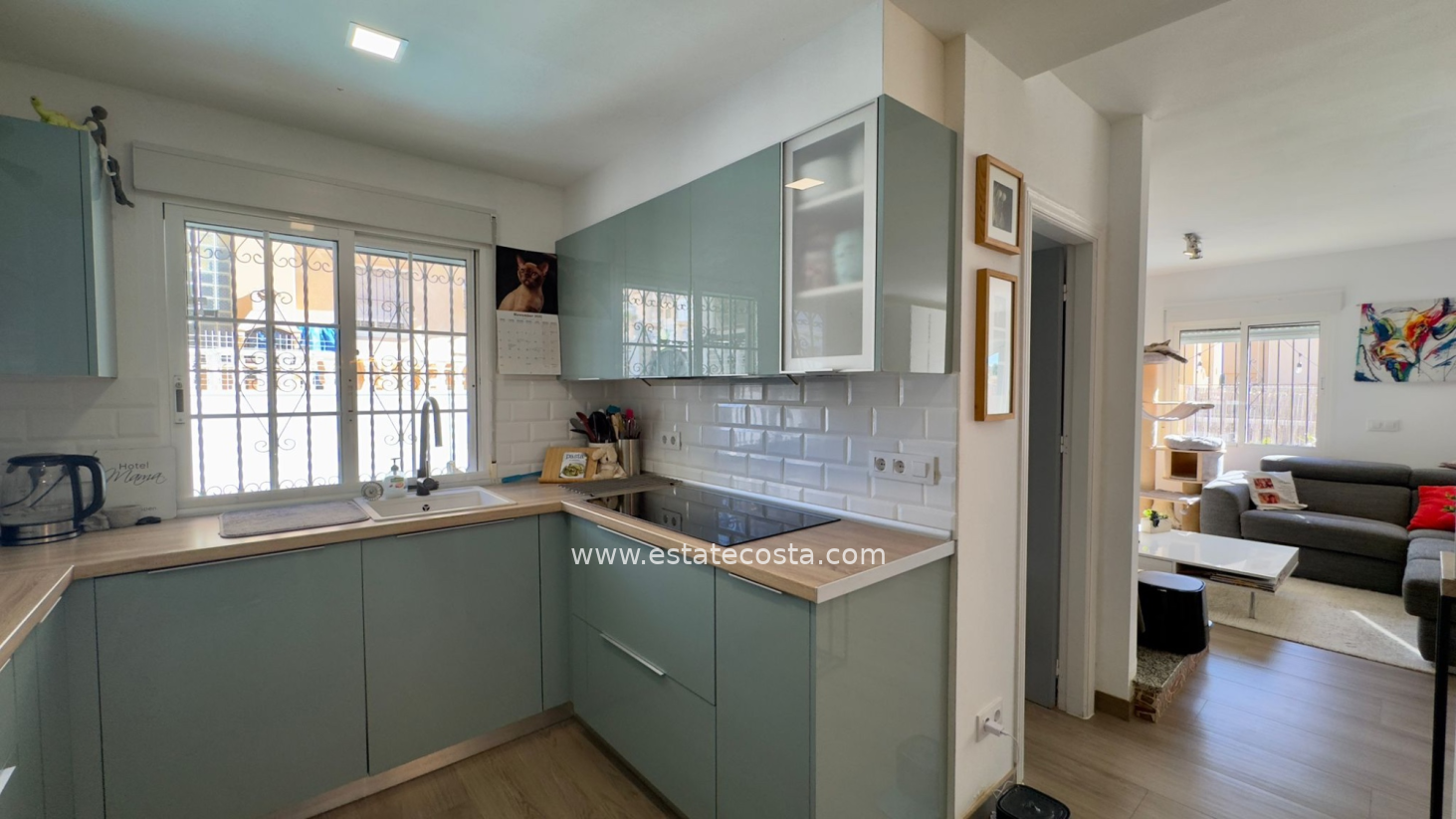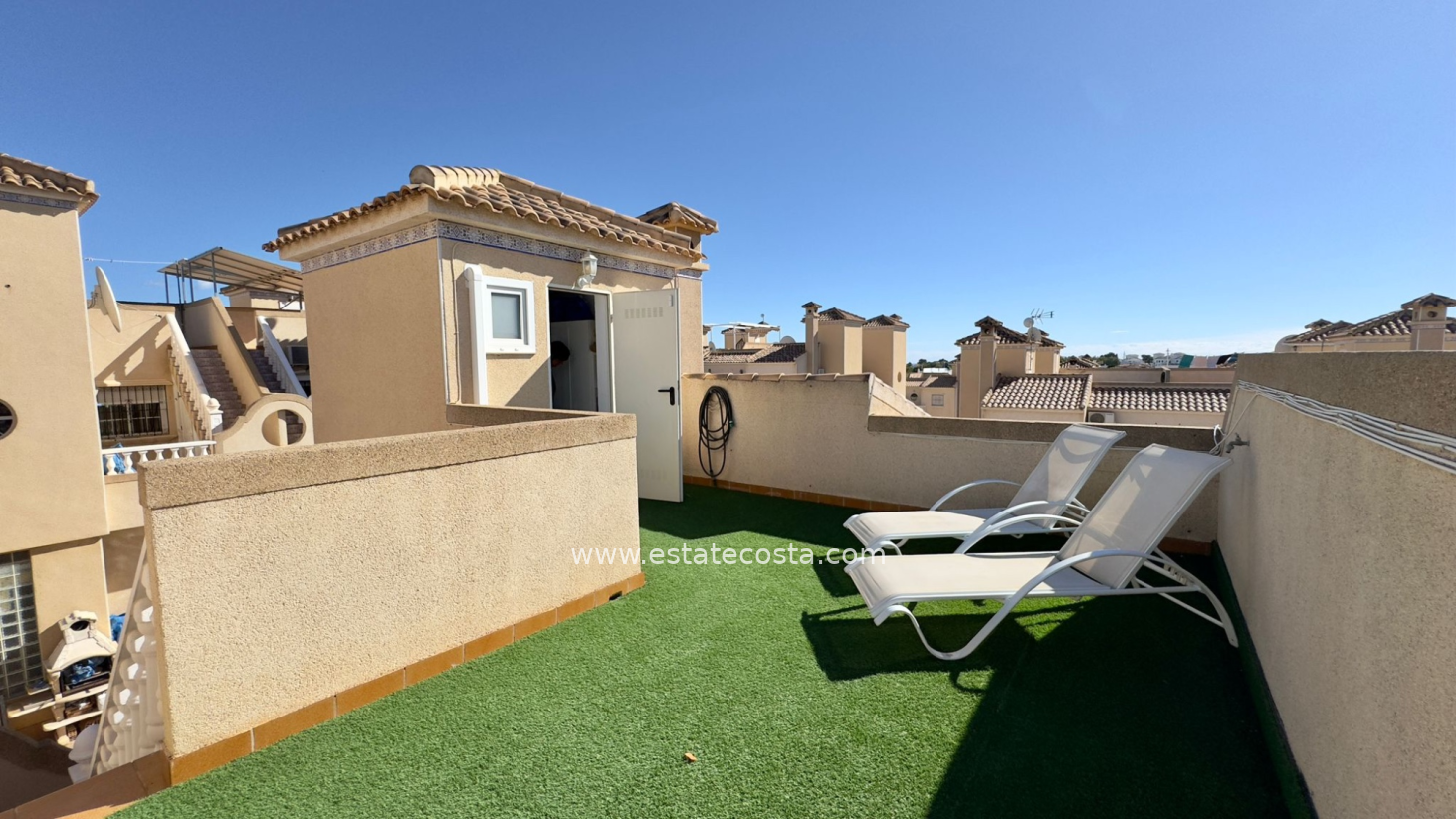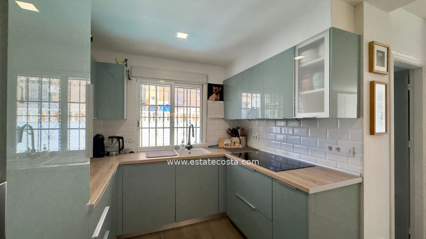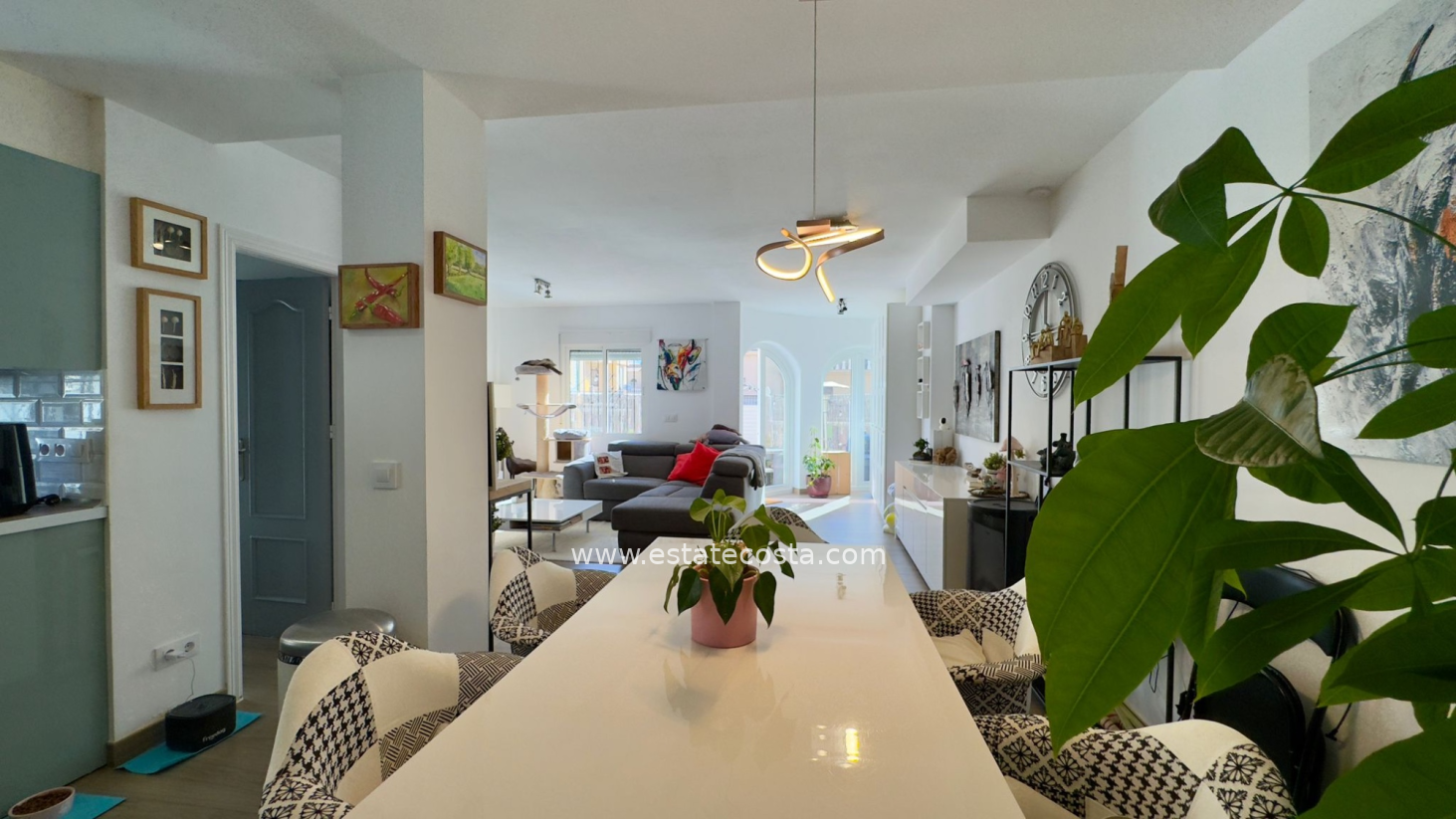 Esta magnífica villa fue completamente renovada en febrero de 2023 con materiales de alta calidad. Se modernizaron los suelos, la cocina, los baños, la instalación eléctrica y las paredes , lo que le confiere a la casa un aspecto contemporáneo y renovado. La villa se encuentra en una amplia parcela privada con una espaciosa terraza pavimentada y una piscina privada climatizada con jacuzzi , ideal para disfrutarla durante todo el año. Hay espacio de sobra para comer al aire libre, tomar el sol o recibir invitados. Además, hay una piscina comunitaria a poca distancia a pie. La planta baja consta de un luminoso y espacioso salón-comedor, una cocina moderna y un elegante baño con ducha a ras de suelo y lavandería. En la planta superior, hay dos dormitorios dobles con armarios empotrados y un moderno y espacioso baño, también con ducha a ras de suelo. La suite principal cuenta con una terraza privada con vistas impresionantes. Una escalera conduce a la terraza de la azotea , cubierta de césped artificial , un lugar ideal para relajarse o recibir invitados. Debajo de la escalera hay un práctico trastero . En esta planta también hay una habitación adicional que podría utilizarse como tercer dormitorio, despacho o taller. La casa se vende parcialmente amueblada , incluyendo electrodomésticos y aire acondicionado . El complejo residencial Zodiaco V goza de una ubicación privilegiada : a tan solo 500 metros de tiendas, bares, restaurantes y una parada de autobús. El popular centro comercial La Fuente y la plaza Villamartín se encuentran a unos 20 minutos a pie , mientras que las playas, los campos de golf y el centro comercial Zenia Boulevard están a un corto trayecto en coche. Una villa única, renovada con estilo, que combina a la perfección confort, diseño moderno y una ubicación excepcional . ¡Esta casa bellamente renovada te espera! No dudes en contactarnos para obtener más información o para programar una visita.