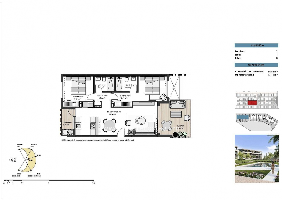 Znajduje się w prywatnym ośrodku zamkniętym, z całodobową ochroną. Ośrodek został zaprojektowany wokół imponującego terenu zielonego który obejmuje ścieżki spacerowe i rowerowe, obiekty sportowe, korty do padla i korty tenisowe, pole do minigolfa, ogrody, parki dla psów, tereny rekreacyjne. W centralnej części znajduje się klejnot kurortu, krystalicznie czyste sztuczne jezioro otoczone piaszczystymi plażami i palmami, przynosząc kawałek Karaibów do regionu Murcji. Na jeziorze znajdują się 2 wyspy, z których jedna ma własny bar. Ośrodek jest strategicznie położony niecałe 4 km od plaży i miasta Los Alcázares i 22 km od lotniska w Murcji.