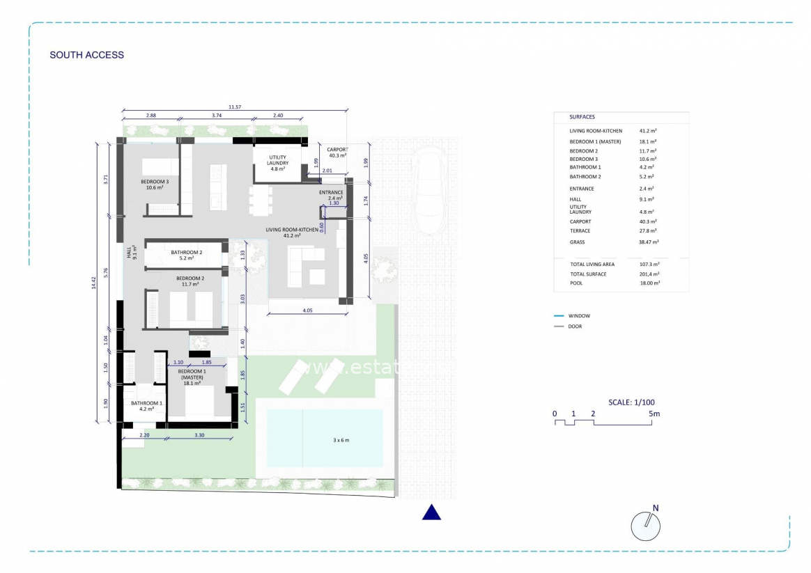 Kompleks posiada wiele stref wspólnych z licznymi terenami zielonymi, ścieżkami i strefami relaksu. Położony jest w Altaona Golf, zaledwie 15 minut jazdy samochodem od centrum stolicy Murcji i 20 minut od plaż, więc możesz cieszyć się spokojem i bezpieczeństwem oferowanym przez pole golfowe z 18 dołkami oraz komfortem życia w pobliżu wszystkich usług. Lotnisko Corvera w Murcji oddalone jest o zaledwie 15 minut jazdy samochodem.