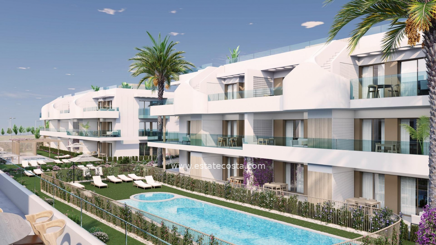Budynek jest otoczony ogrodami ze wspólnym basenem oraz parkingiem wewnątrz kompleksu, a każda nieruchomość ma własną komórkę lokatorską. W pobliżu tego kompleksu znajdują się wszystkie udogodnienia transportu publicznego, szkoły, supermarkety, centra handlowe, pola golfowe i fantastyczne parki miejskie z placami zabaw dla dzieci. Pilar de la Horadada to typowa hiszpańska wioska w najbardziej wysuniętej na południe części Costa Blanca. Piękne plaże Torre de la Horadada i Mil Palmeras z piaszczystą promenadą znajdują się zaledwie 5 minut od kompleksu. Lotniska Corvera (Murcja) i Alicante oddalone są odpowiednio o 40 i 55 minut.