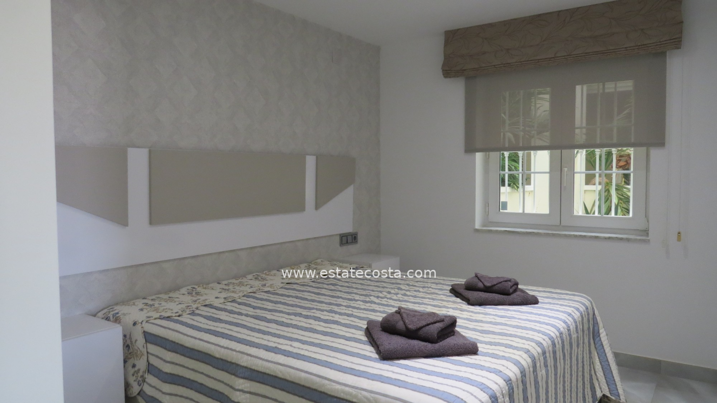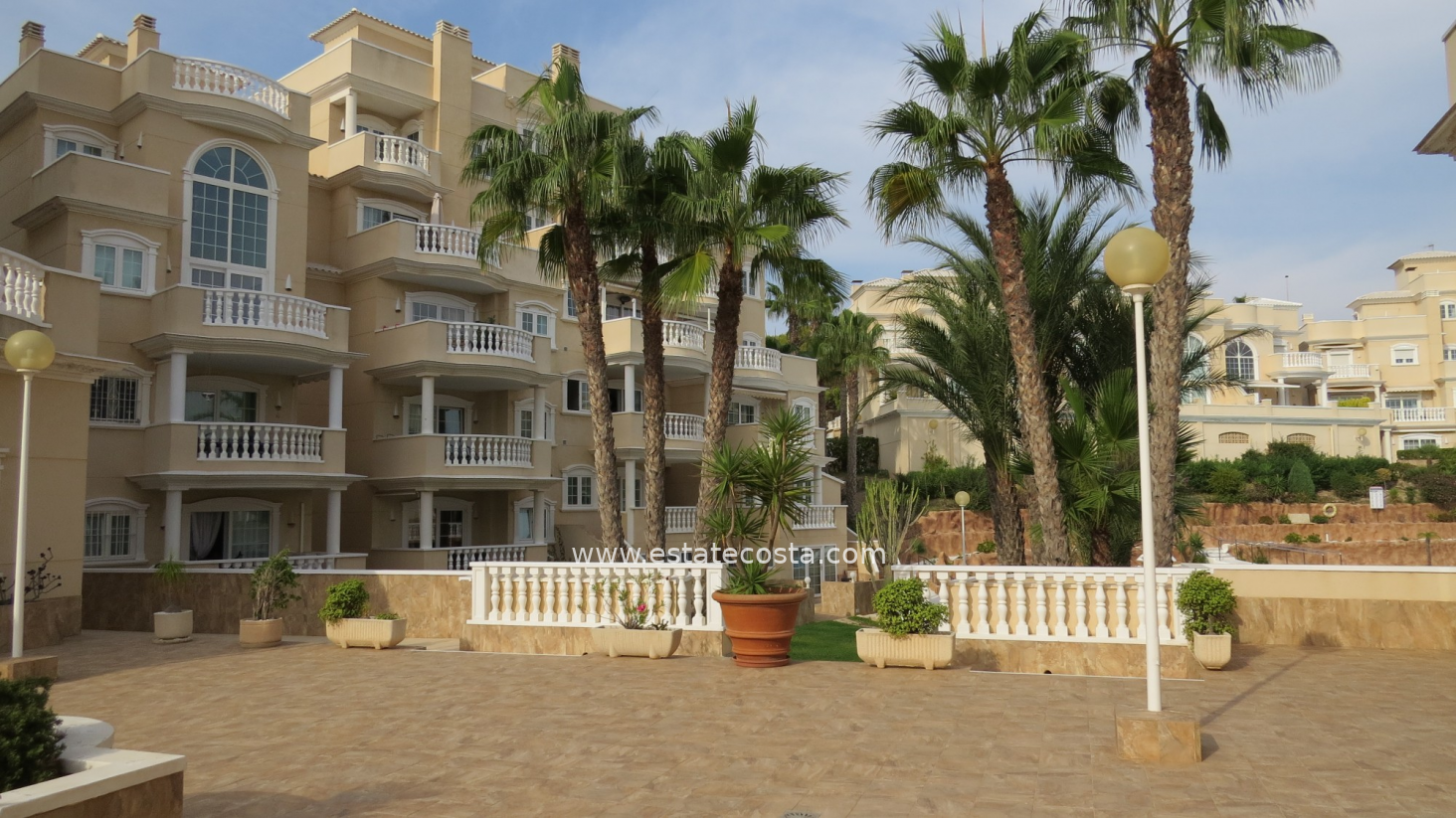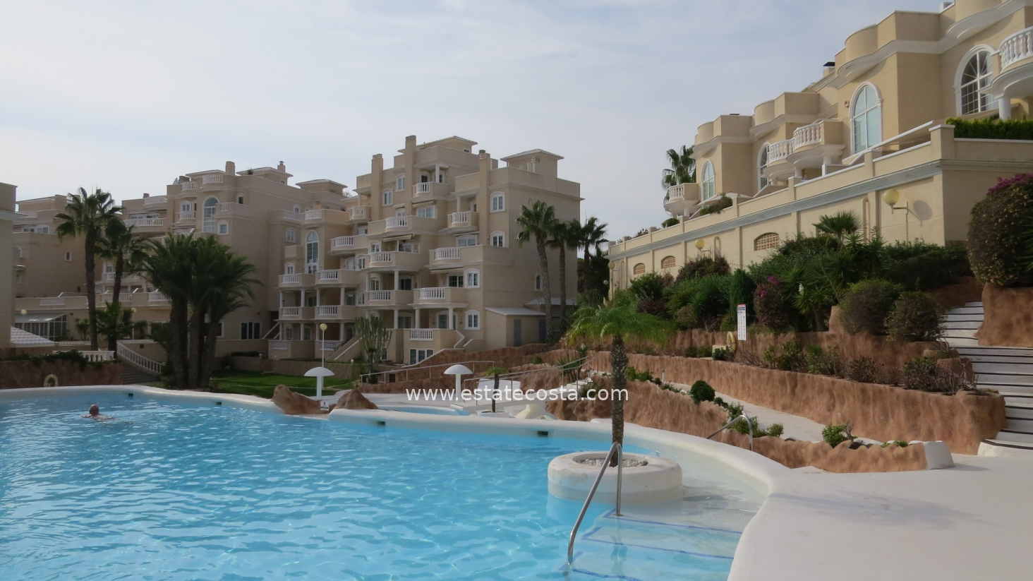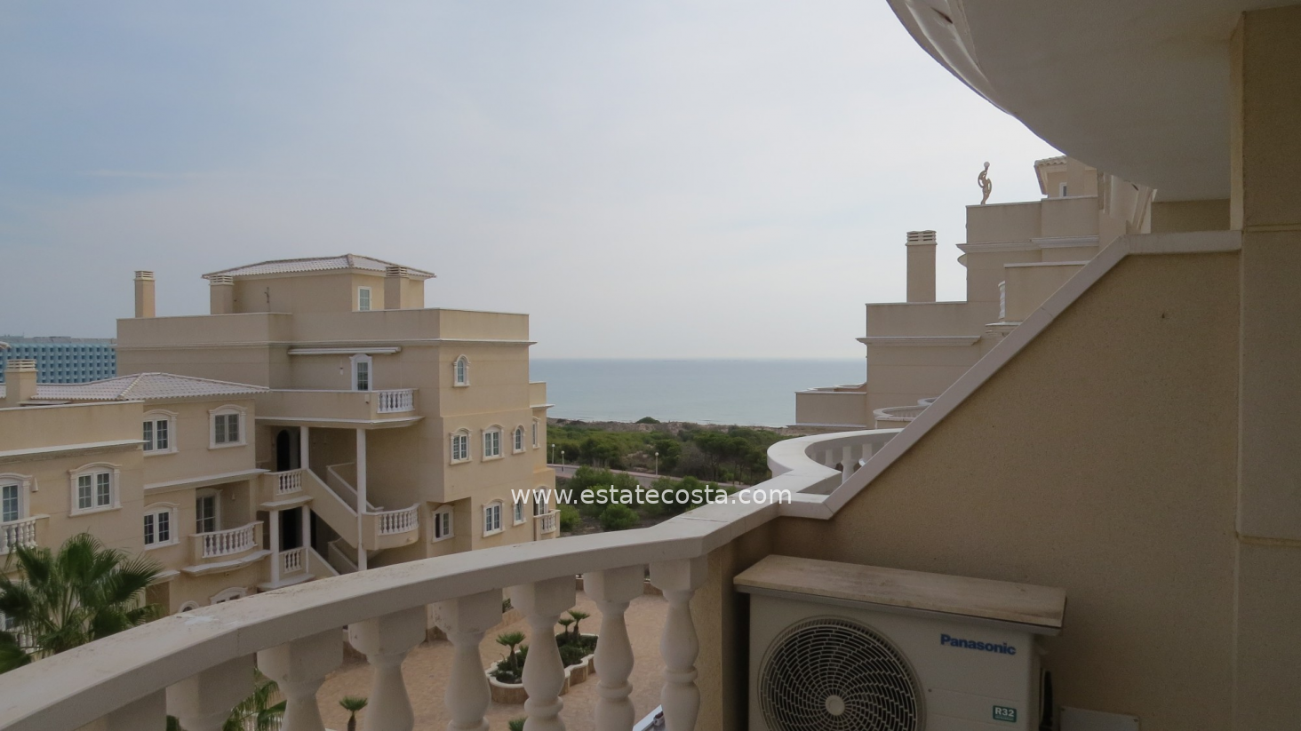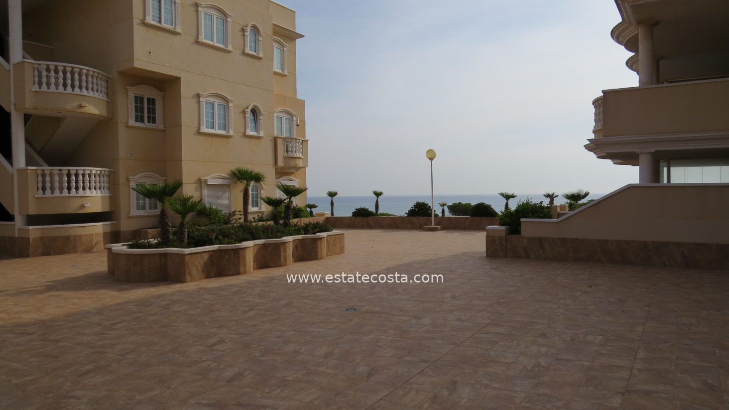 Apartament ma przytulny taras z pięknym widokiem na morze i części wspólne kompleksu. Na nierichomość składa się przestronny salon z otwartą kuchnią, sypialnia główna, łazienka z prysznicem typu walk-in i druga sypialnia. Mieszkanie posiada takie udogodnienia jak winda, klimatyzacja (ciepło/zimno), elektryczne rolety w salonie, całodobowy monitoring, wbudowane szafy i jest sprzedawane umeblowane. Istnieje możliwość zakupu miejsca w garażu podziemnym.