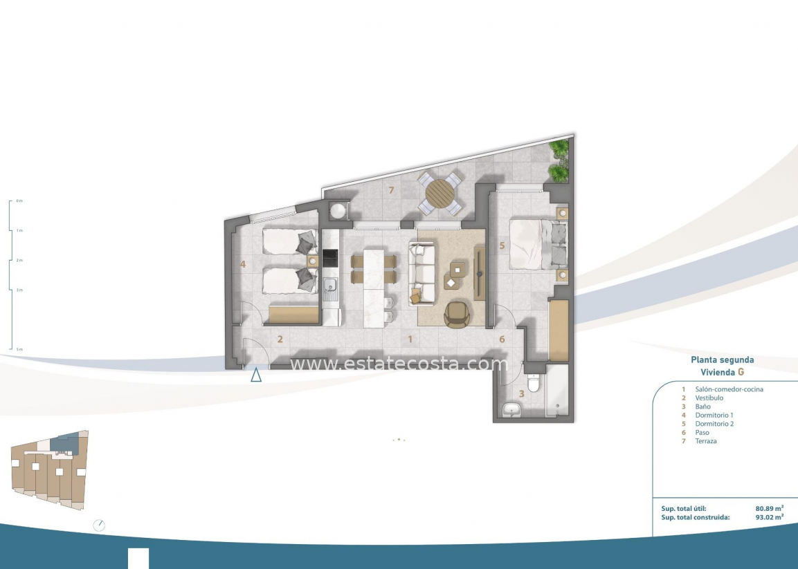 Budynek oferujący penthousy i apartamenty z 1, 2 i 3 sypialniami, rozmieszczone w 3-poziomowych blokach. Przestrzeń mieszkalna w każdym mieszkaniu została zaprojektowana tak, aby tworzyć jasne, przestronne i nowoczesne wnętrza, które płynnie łączą się z nadmorskim otoczeniem. Obiekt wyposażony w basen, wspólne solarium i parking podziemny. Penthousy posiadają również prywatne solarium z kuchnia letnią.