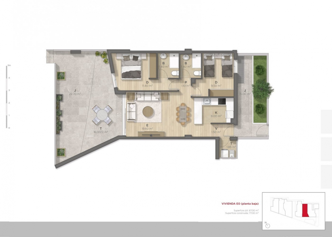 Nowy budynek mieszkalny złożony z 12 bungalowów z 2 lub 3 sypialniami, 2 łazienkami, kuchnią na otwartym planie z salonem. Są one dostarczane umeblowane i z klimatyzacją! Bungalowy na parterze z prywatnym ogrodem i bungalowy na pierwszym piętrze z prywatnym solarium. Każdy bungalow ma garaż i pomieszczenie gospodarcze w piwnicy. Ten kompleks jest zamknięty i posiada wspólny basen a znajduje się zaledwie kilka minut od plaży El Alamillo. Gmina Mazarrón znajduje się w południowej części Regionu Murcja, około 72 km od stolicy Murcji. Puerto de Mazarrón posiada złote, piaszczyste plaże. Można tu znaleźć restauracje w odległości zaledwie kilku metrów. Posiada również punkt informacji turystycznej. Lotnisko Murcia - Corvera znajduje się w odległości 35 km.