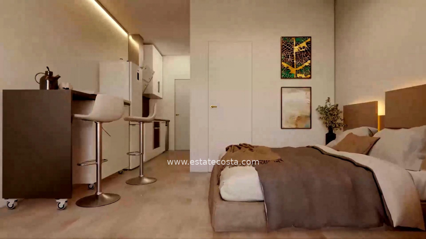 Nowoczesny budynek oferuje nieruchomości typu studio oraz apartamenty z 1 sypialnią. Wszystkie 1 łazienką oraz częścią dzienną połączoną z aneksem kuchennym. Mieszkańcy mogą korzystać ze wspólnego solarium z podgrzewanym basenem, idealnym do całorocznego relaksu.