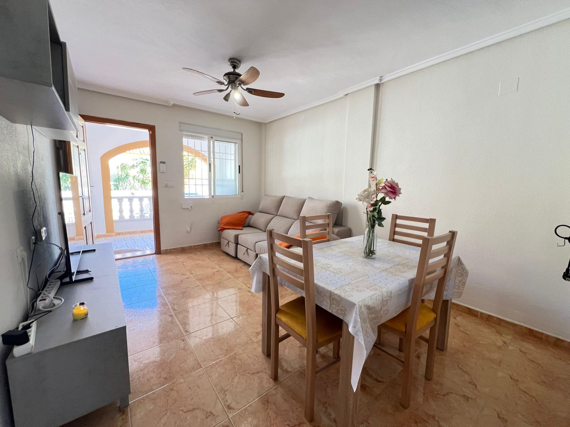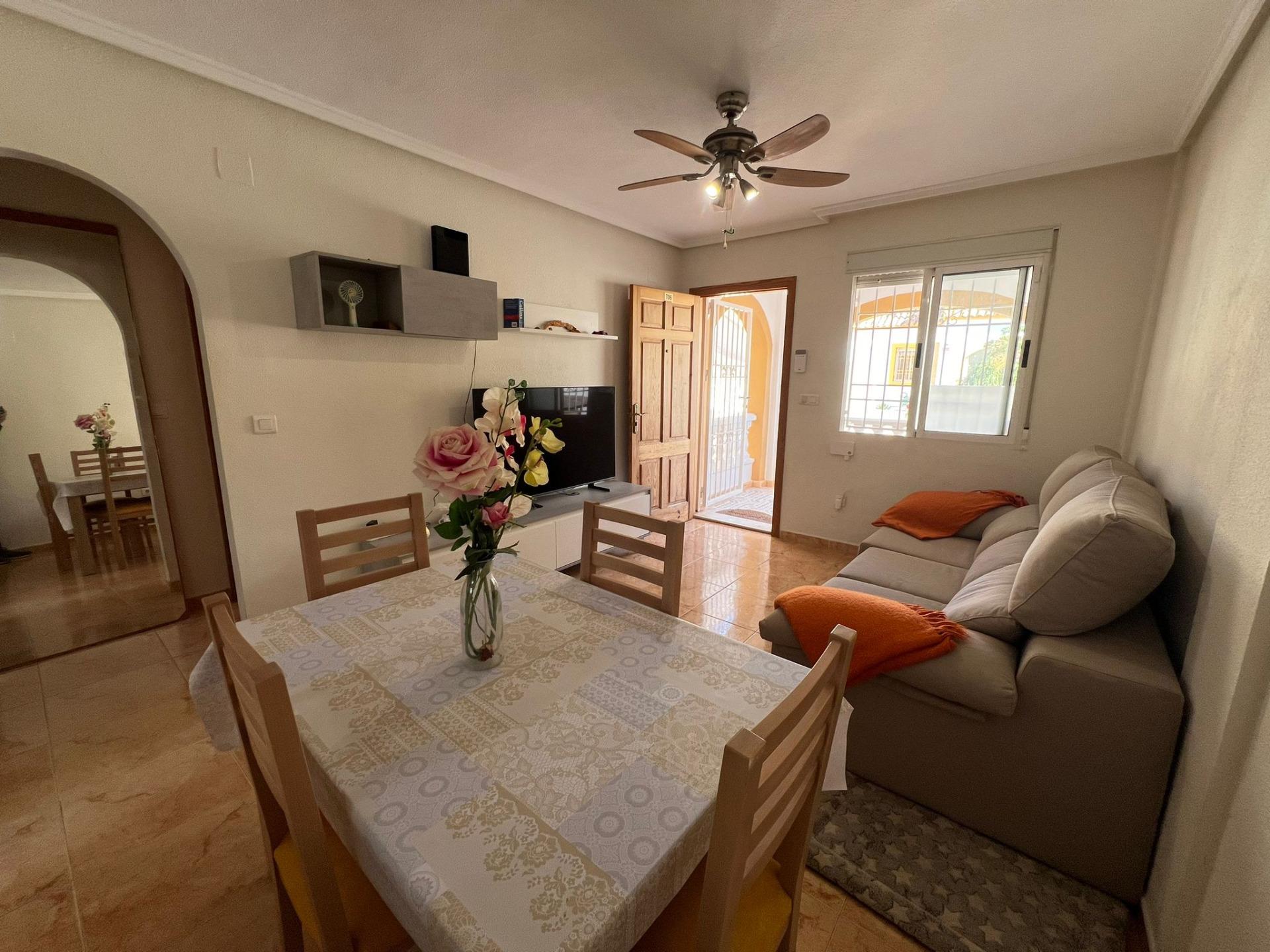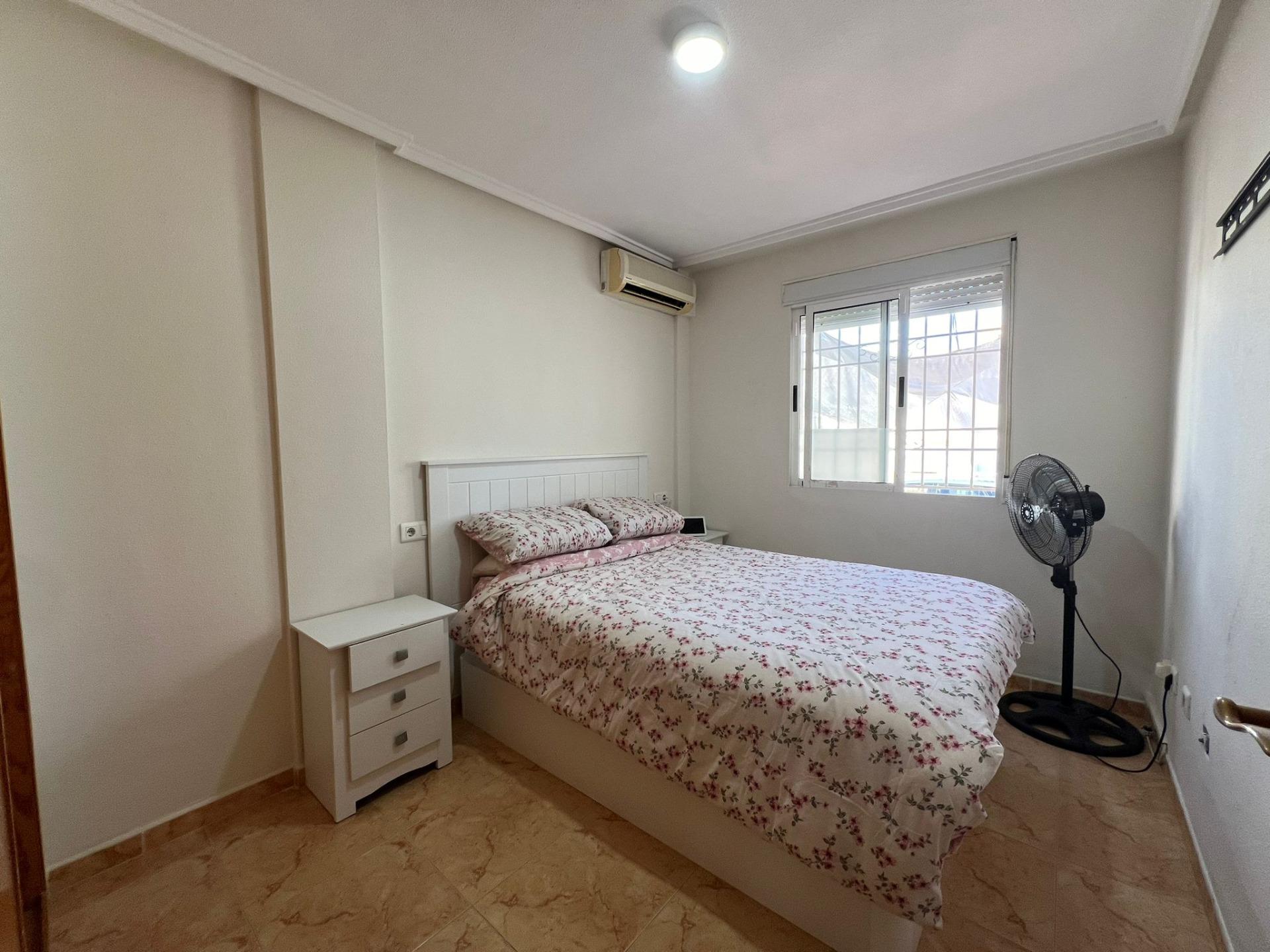 Nieruchomość posiada dwie przestronne sypialnie, w pełni wyposażoną kuchnię, łazienkę oraz salon. Posiada również duże solarium. Na zewnątrz znajduje się wygodne prywatne miejsce parkingowe. Ponadto kompleks mieszkalny oferuje udogodnienia w tym basen społecznościowy i boiska sportowe.