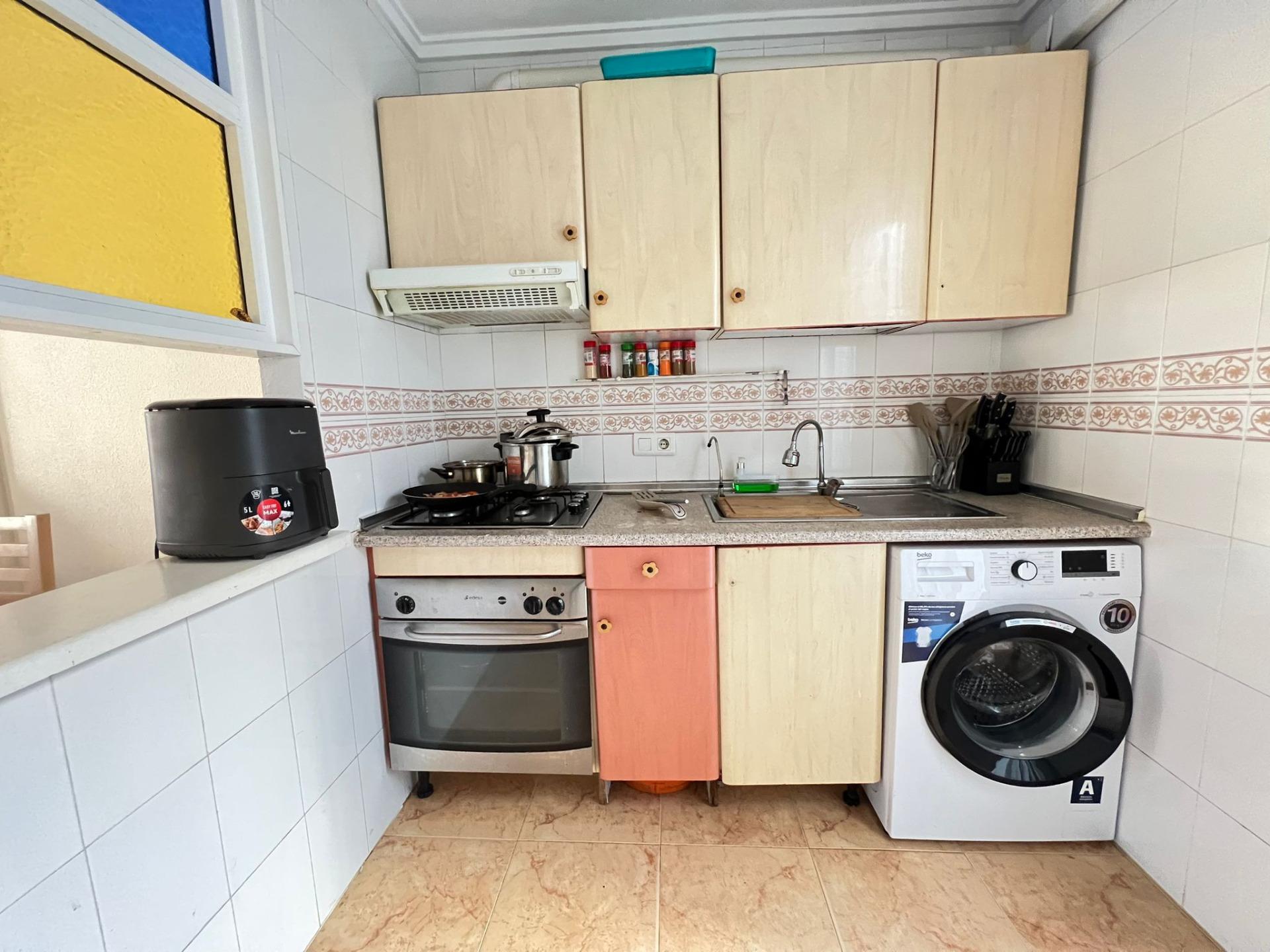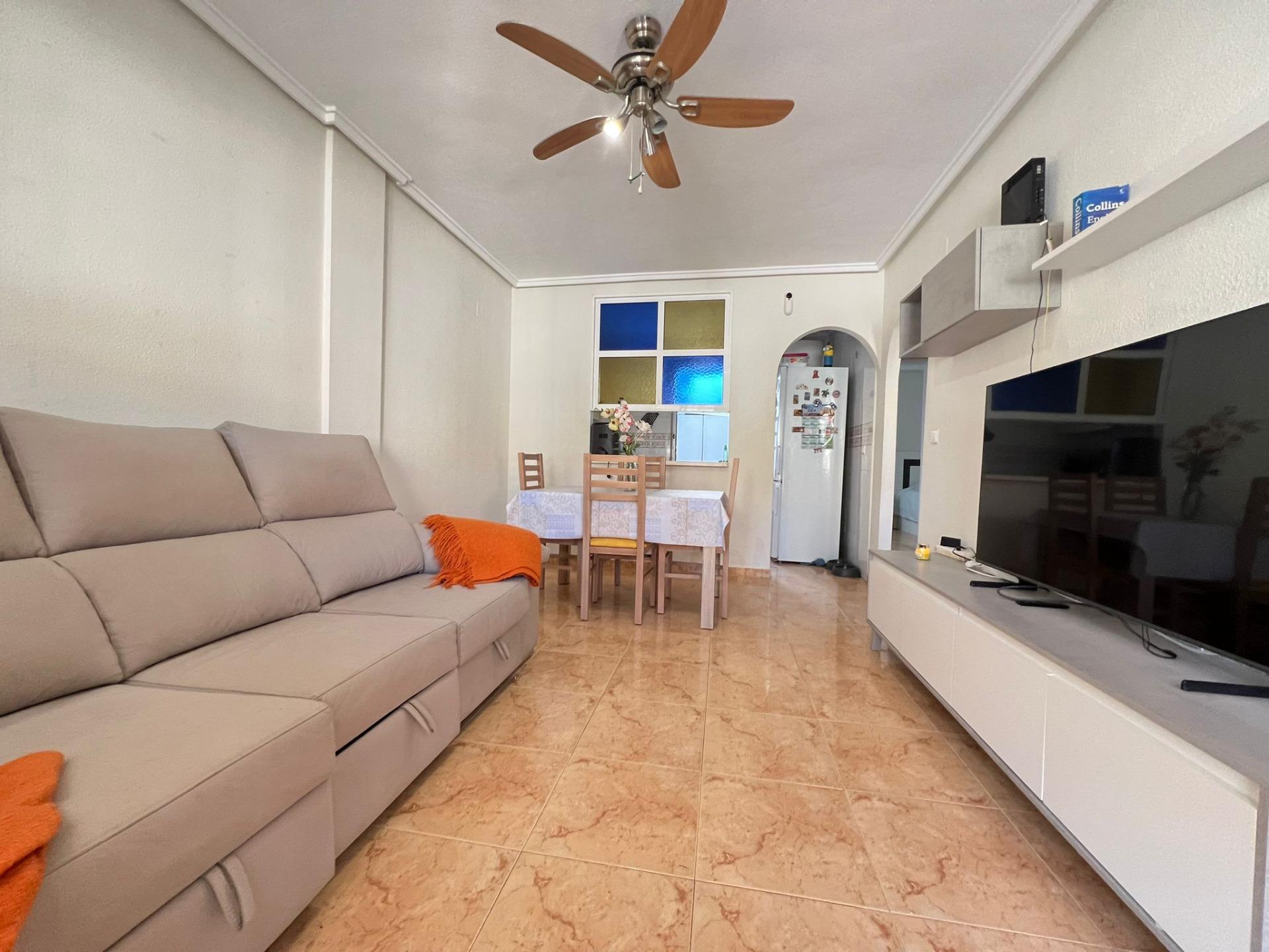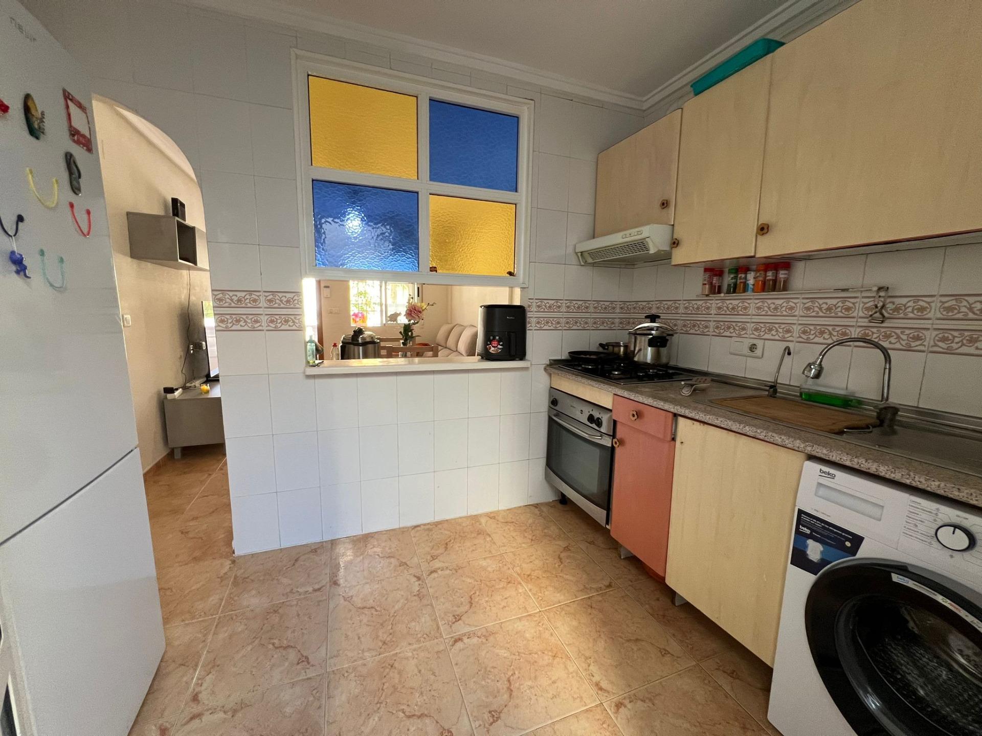 Nieruchomość posiada dwie przestronne sypialnie, w pełni wyposażoną kuchnię, łazienkę oraz salon. Posiada również duże solarium. Na zewnątrz znajduje się wygodne prywatne miejsce parkingowe. Ponadto kompleks mieszkalny oferuje udogodnienia w tym basen społecznościowy i boiska sportowe.