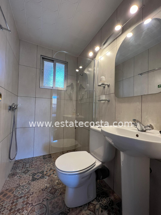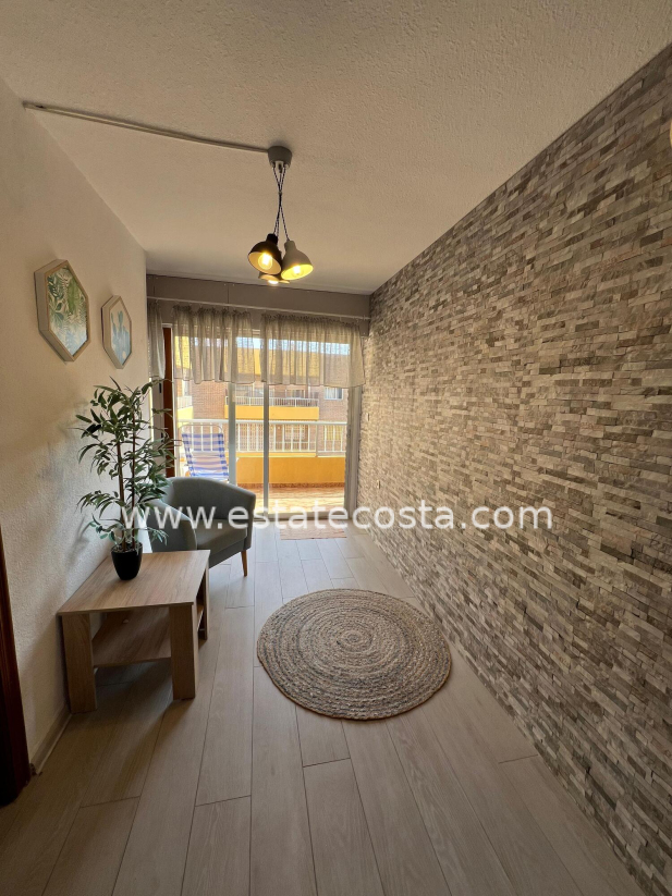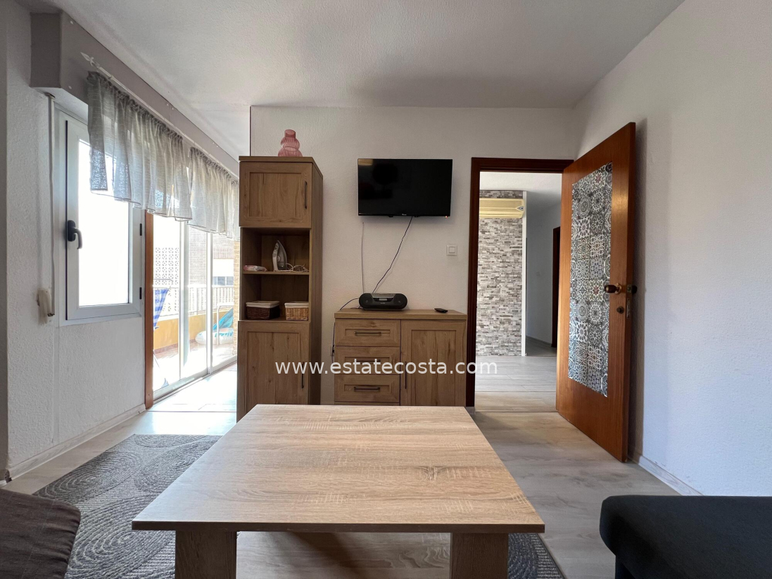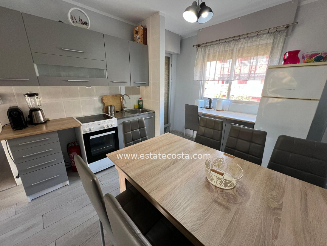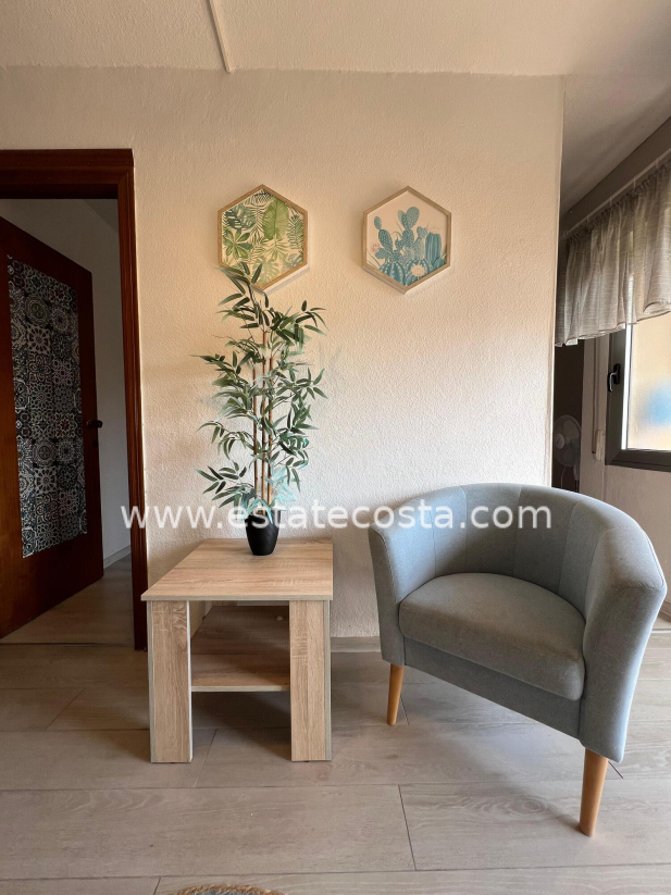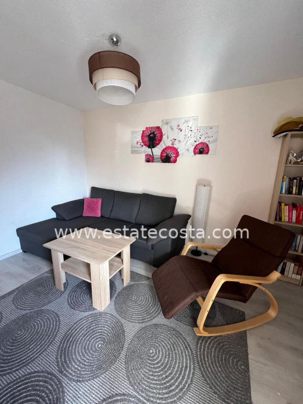 Apartament znajduje się na drugim piętrze budynku, na zamkniętym osiedlu wyposażonym w basen. Nieruchomość składa się z 3 sypialni, 2 łazienek, otwartej kuchni oraz salonu. Dodatkowo posiada pomieszczenie gospodarcze oraz taras skierowany do wnętrza osiedla, z widokiem na basen. Mieszkanie jest odnowione i wyposażone, również w klimatyzację.