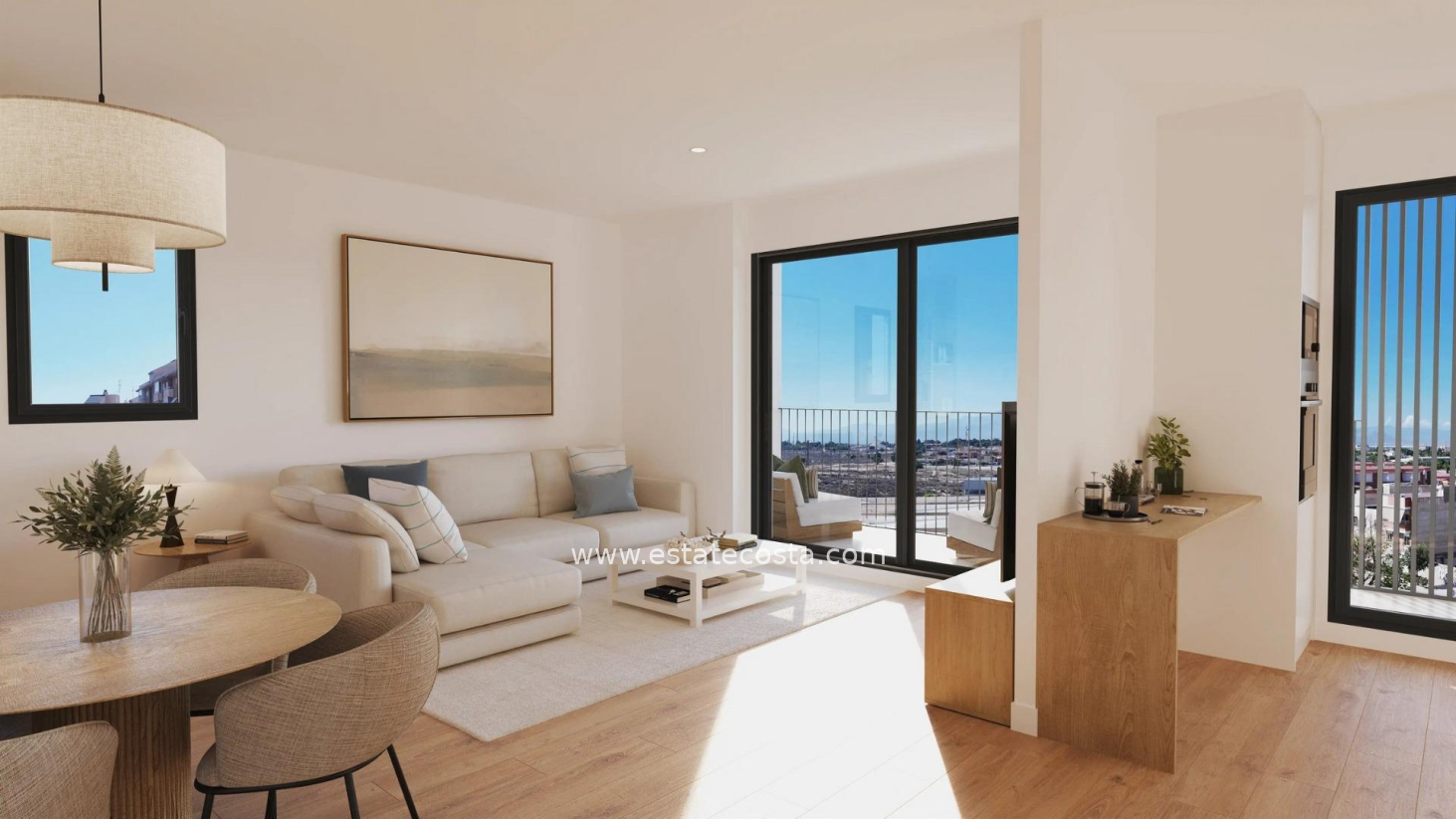 Penthouse posiada prywatne solarium, oferujące zapierające dech w piersiach widoki na Alicante. Ponadto składa się z 2 sypialni, 2 łazienek oraz salonu połączonego z w pełni wyposażoną kuchnią. Nieruchomości posiadają pełną instalacje klimatyzacji, system aerotermalny oraz oświetlenie LED.