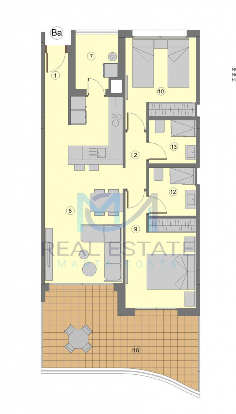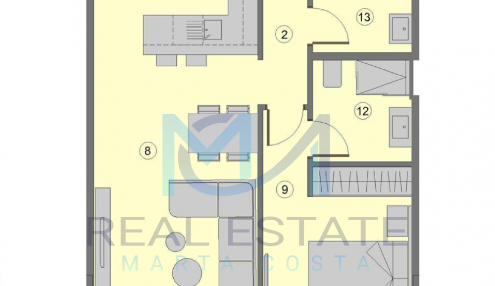 Nowoczesny apartament na pierwszym piętrze posiada dwie sypialnie, dwie łazienki, w pełni wyposażoną kuchnię z salonem oraz duży taras. Osiedle jest ogrodzone, co zwiększa bezpieczeństwo Twoje i Twojej rodziny oraz pozwala cieszyć się wyjątkowymi strefami wspólnymi: basenem dla dorosłych i dzieci, jacuzzi, placem zabaw, zielonymi terenami i ścieżkami, które biegną wewnątrz osiedla. Kompleks posiada piwnice i parterowe miejsca parkingowe oraz komórki lokatorskie w podziemiach. W pomieszczeniach ogólnodostępnych znajduje się parking dla rowerów. Dodatkowym atutem jest to, że wszystkie części wspólne w kompleksie znajdują się na płaskim terenie, eliminując wszelkie bariery architektoniczne.