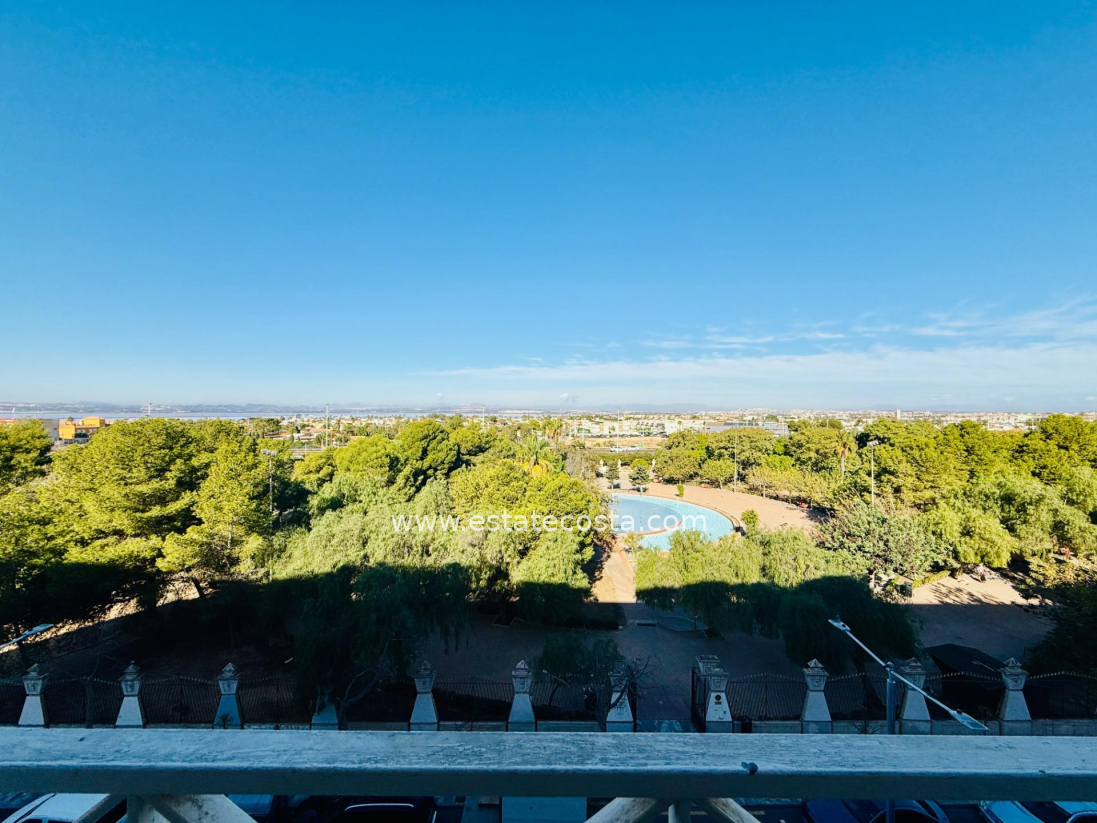 Jasne i przytulne mieszkanie składa się z dwóch przestronnych sypialni, w pełni wyposażonej kuchni w stylu amerykańskim z praktyczną galerią – idealną na dodatkowe przechowywanie i codzienną funkcjonalność – oraz łazienki. Z tarasu można podziwiać wspaniałe widoki panoramiczne, obejmujące zieleń Parque de las Naciones i okoliczne krajobrazy. Zachodnia ekspozycja zapewnia przyjemne naturalne światło przez całe popołudnie, tworząc ciepłą i relaksującą atmosferę. Mieszkanie gotowe do zamieszkania wyróżnia się nie tylko nienagannym stanem, ale także strategiczną lokalizacją, zaledwie kilka kroków od kluczowych usług, takich jak szkoły, centra medyczne, supermarkety i centra handlowe. Ponadto znajduje się tylko 800 metrów od plaż Torrevieja, co czyni je doskonałą propozycją dla tych, którzy szukają komfortu, spokoju i bliskości morza.