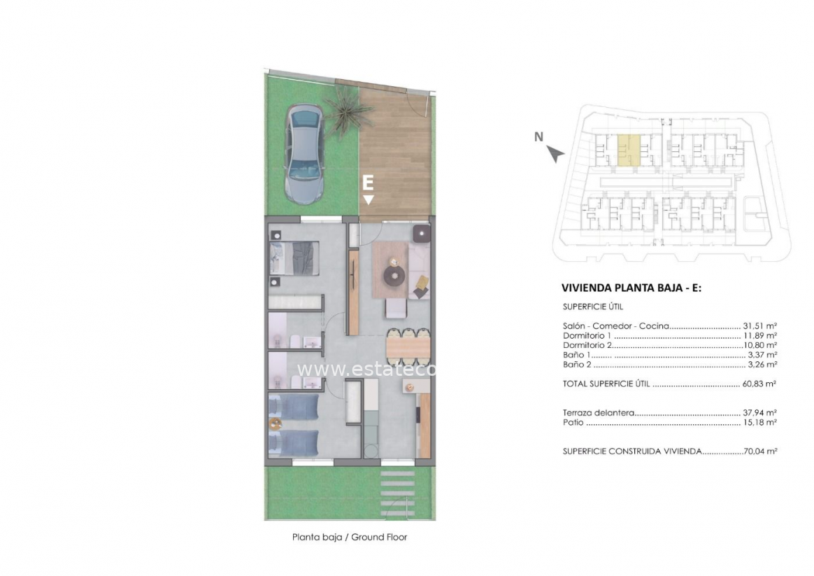 Piękne osiedle mieszkalne z 24 bungalowów w Pilar de la Horadada. Te nieruchomości składają się z 2 lub 3 sypialni, 2 łazienek, kuchni na otwartym planie z częścią wypoczynkową. Parterowe bungalowy z prywatnym ogrodem i bungalowy na najwyższym piętrze z prywatnym solarium. Wszystkie nieruchomości mają miejsce parkingowe. Kompleks mieszkalny posiada doskonały obszar wspólny z basenem. Pilar de la Horadada to typowa hiszpańska wioska w najbardziej południowej części Costa Blanca. Piękne plaże Torre de la Horadada i Mil Palmeras z drobnym piaskiem promenady jest tylko 5 minut od hotelu. Lotniska w Corvera (Murcja) i Alicante oddalone są odpowiednio o 40 i 55 minut jazdy.