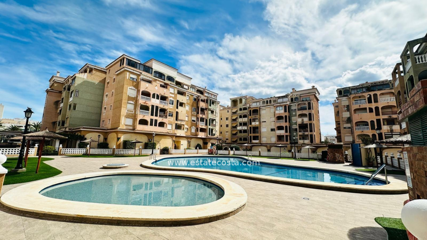 Zamknięty kompleks oferuje wspólny basen dla mieszkańców.