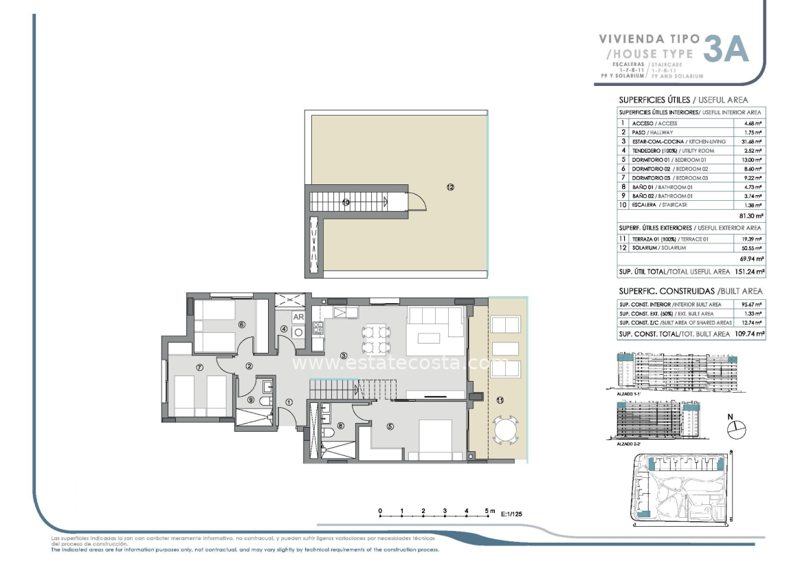 Apartamenty z 2 i 3 sypialniami i 2 łazienkami, kuchnia na otwartym planie z salonem, wszystkie z dużymi tarasami. Apartamenty na parterze z ogrodem i penthousy z solarium. Wszystkie domy są dostarczane z podziemnym miejscem parkingowym. Zamknięte osiedle posiada tereny ogrodowe z basenami, kortem tenisowym, siłownię oraz saunę. Dzieci mogą korzystać z własnego basenu, jak również z placu zabaw.