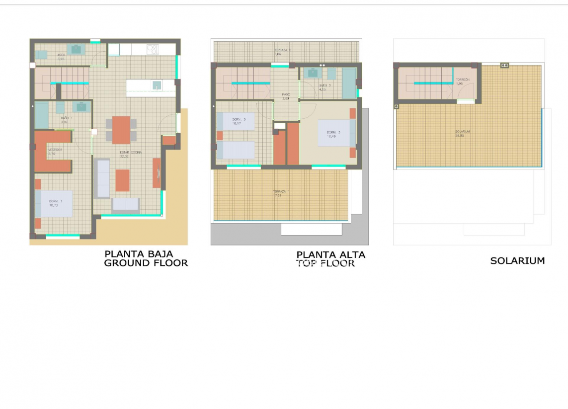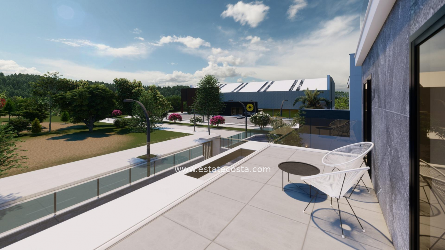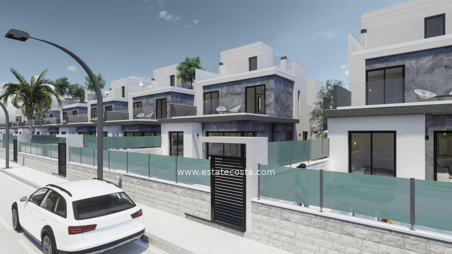 Wille zbudowane na 2 piętrach mają 3 sypialnie, 2 łazienki, toaletę dla gości, kuchnię na otwartym planie z salonem, piwnicę z garażem, taras i solarium, ogród z prywatnym basenem. Szafy wnękowe w sypialniach z lakierowanymi na biało drzwiami od podłogi do sufitu, wyposażone w szuflady, wieszaki i wysoki schowek. Wstępna instalacja klimatyzacji (split) w sypialniach i salonie oraz instalacja ogrzewania podłogowego w całym domu. Wille znajdują się kilka metrów od wszystkich usług i udogodnień. Pilar de la Horadada to typowa hiszpańska wioska w najbardziej wysuniętej na południe części Costa Blanca. Piękne plaże Torre de la Horadada i Mil Palmeras z piaszczystą promenadą znajdują się zaledwie 5 minut od osiedla. W Pilar de la Horadada znajduje się również dobrze rozwinięta sieć ścieżek rowerowych i pieszych, a także bogata oferta różnych zajęć sportowych. Lotniska Corvera (Murcja) i Alicante oddalone są odpowiednio o 40 i 55 minut jazdy.