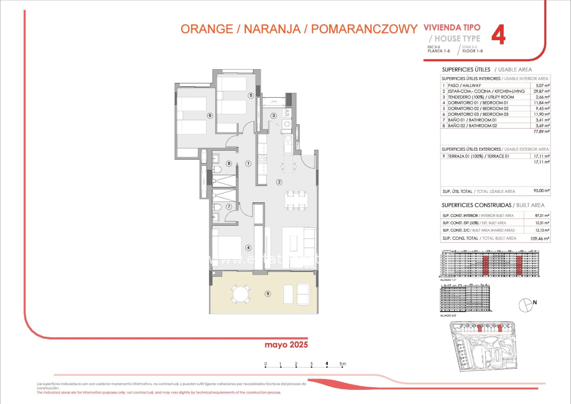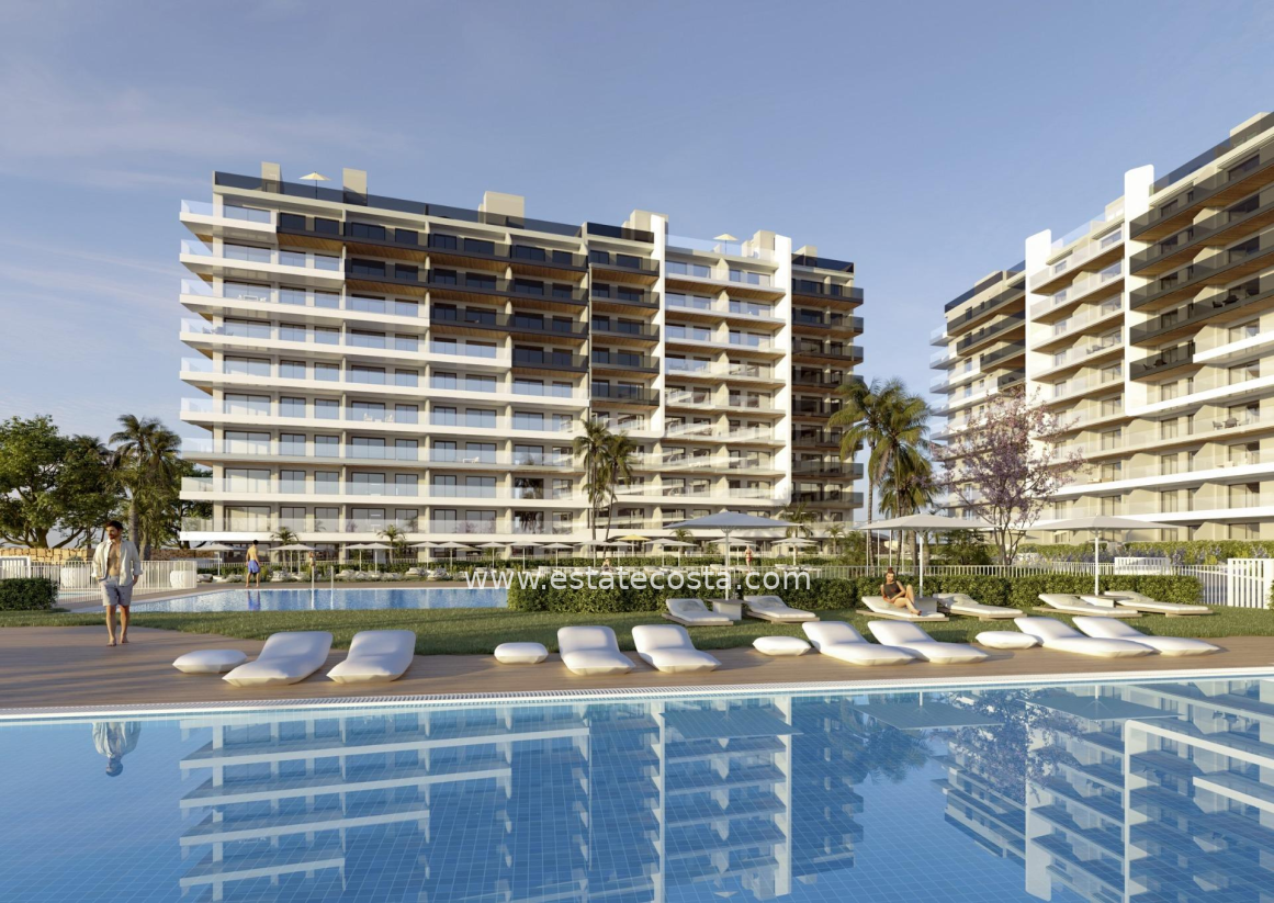 Nowoczesny kompleks składający się z 250 apartamentów w Punta Prima, jednej z najbardziej poszukiwanych lokalizacji w Orihuela Costa. Położony zaledwie 250 metrów od morza, projekt ten oferuje wyjątkową okazję do zamieszkania w pobliżu plaży, z wszystkimi udogodnieniami prywatnego kurortu. Apartamenty są dostępne w konfiguracjach z 2 lub 3 sypialniami i 2 łazienkami, wszystkie z kuchnią amerykańską zintegrowaną z salonem. Mieszkania na parterze mają prywatny ogród, mieszkania na środkowych piętrach oferują duże tarasy, a apartamenty na najwyższym piętrze mają solarium. Każda nieruchomość posiada miejsce parkingowe i komórkę lokatorską. Wyposażenie apartamentów obejmuje: rolety z napędem elektrycznym w sypialniach, umeblowaną kuchnię ze sprzętem AGD, kompletne łazienki z ogrzewaniem podłogowym, system klimatyzacji z pompą ciepła.