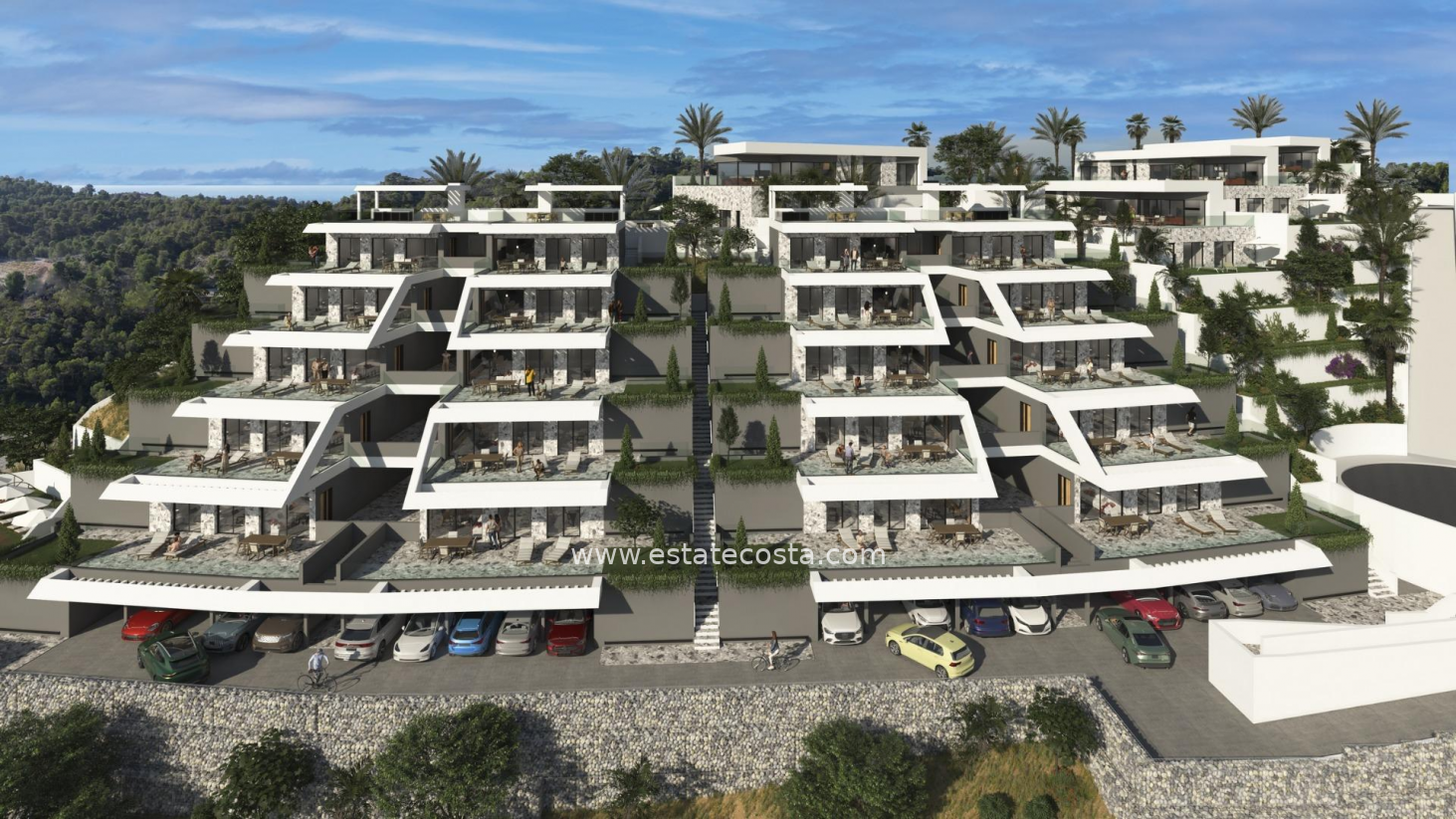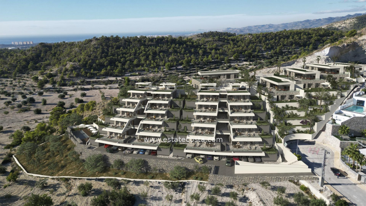 Nowy, wyjątkowy kompleks mieszkaniowy w Balcon de Finestrat. Kompleks nowoczesnych apartamentów i penthouse'ów z 2 sypialniami, 2 łazienkami, kuchnią na otwartym planie z salonem i jadalnią oraz tarasami. Penthousy z prywatnym solarium. Każda nieruchomość ma podziemne miejsce parkingowe i komórkę lokatorską. Zamknięty kompleks mieszkalny ze wspólnym basenem, w otoczeniu golfa i plaży, w pobliżu wszystkich udogodnień wszystkich usług. Finestrat znajduje się w regionie Marina Baixa na Costa Blanca. Benidorm znajduje się zaledwie pięć minut jazdy od nieruchomości i oferuje wszystkie potrzebne usługi, w tym sklepy, bary, restauracje, supermarkety, banki, apteki i kilka prywatnych szkół międzynarodowych.