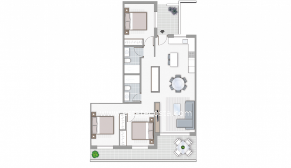 Ekskluzywny kompleks położony przy jednej z głównych ulic miasta Torrevieja, z uprzywilejowaną lokalizacją, jedynie 300 metrów od najlepszych plaż i blisko wszystkich usług: restauracji, kawiarni, supermarketów itp. Składa się on z 56 mieszkań z 1, 2 i 3 sypialniami z 2 łazienkami. Ponadto do wyboru domy typu dupleks oraz penthousy z prywatnym solarium, z dużymi tarasami i wspaniałymi panoramicznymi widokami na morze lub prywatnym tarasem w przypadku mieszkań parterowych z bezpośrednim dostępem do części wspólnych. Domy budowane są z najlepszych materiałów, starannie wybranych tak, aby zagwarantować niskie koszty utrzymania. W centrum tego zamkniętego osiedla znajduje się basen oraz strefy relaksu do użytku wszystkich mieszańców. Wszystkie nieruchomości mają podwójną orientację, która gwarantuje wentylację krzyżową, umożliwiającą dopływ naturalnego powietrza, oraz orientację wschodnią i południową, która zapewnia im światło słoneczne. Opcjonalnie i za dodatkową opłatą miejsce parkingowe w garażu podziemnym.