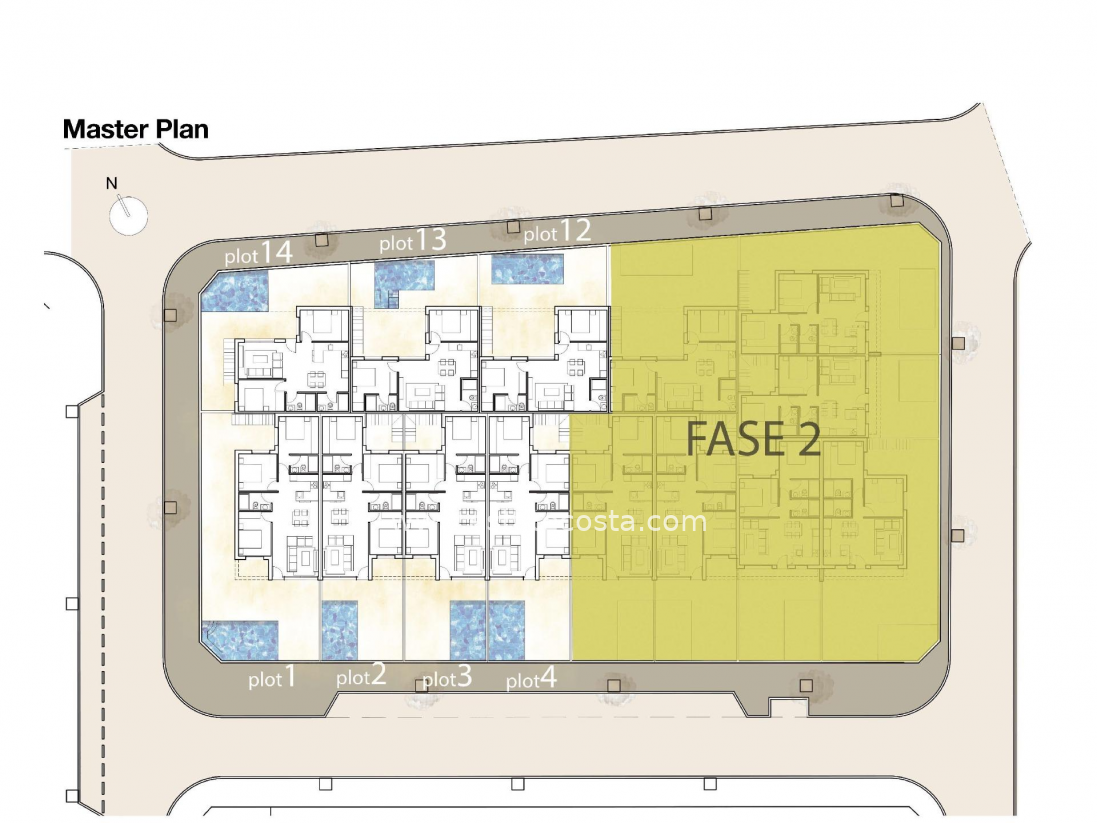Dom zbudowane na parterze i posiadają prywatne solarium, 2 sypialnie, 2 łazienki, otwartą kuchnię z salonem, ogród z miejscem parkingowym. Opcjonalnie możliwość prywatnego basenu. Nieruchomości znajdują się kilka metrów od wszystkich usług. Pilar de la Horadada to typowa hiszpańska wioska w najbardziej wysuniętej na południe części Costa Blanca posiadająca supermarkety, wiele sklepów, restauracji i barów oraz kilka uroczych placów. Piękne plaże Torre de la Horadada i Mil Palmeras z piaszczystą promenadą znajdują się zaledwie 5 minut od nieruchomości.