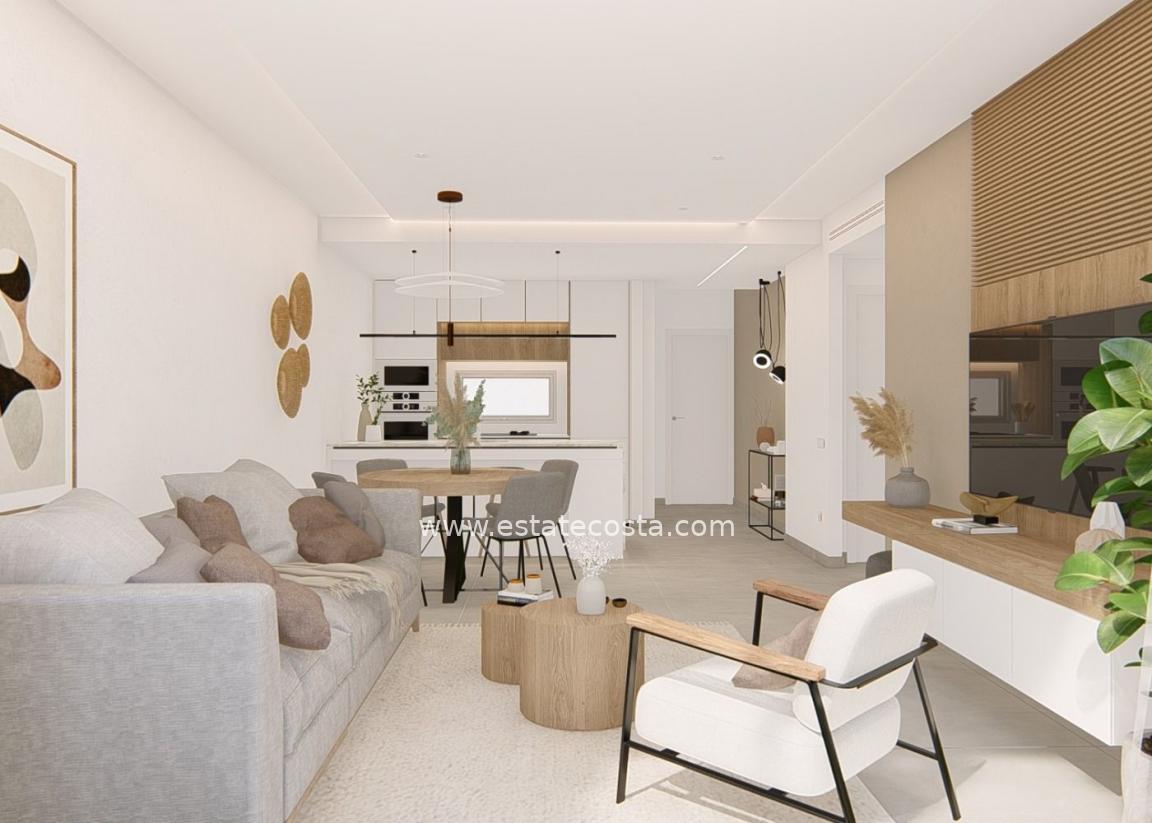 Nowy kompleks mieszkalny z apartamentami w El Raso, Guardamar del Segura. Kompleks składający się z 135 domów z 2 lub 3 sypialniami w blokach o 3 lub 5 piętrach plus solarium, zaprojektowany w minimalistyczny sposób i z zachowaniem wysokich standardów jakości. Piękne tereny mieszkalne, w tym przeszklony obszar GYM-Spa z widokiem na tereny zielone, baseny, kort tenisowy z wiosłami, itp. Pakiet mebli oraz miejsce parkingowe wliczone w cenę. Osiedle znajduje się na wyjątkowej i niepowtarzalnej działce, graniczącej z naturalnym krajobrazem słonej laguny. Tutaj możesz cieszyć się wyjątkowym środowiskiem ze wszelkiego rodzaju usługami i udogodnieniami i bliskością najlepszych plaż Morza Śródziemnego.