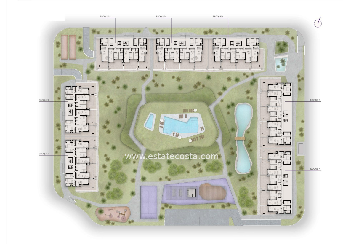 Zamknięte osiedle zapewnia najwyższej klasy udogodnienia, w tym baseny dla dorosłych i dzieci, ogrody krajobrazowe, miejsce do grillowania, plac zabaw dla dzieci, kort do padla i strefę do gry w petanque.
