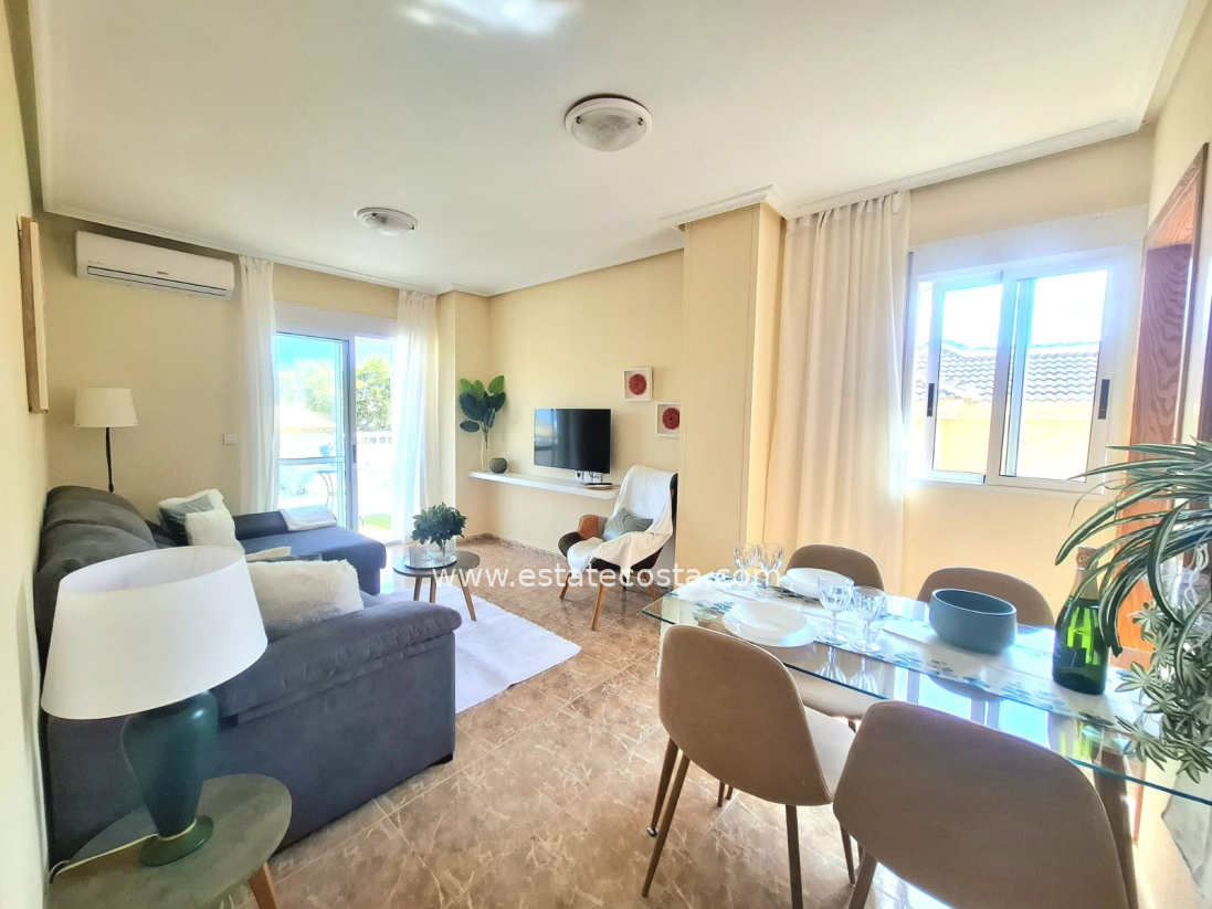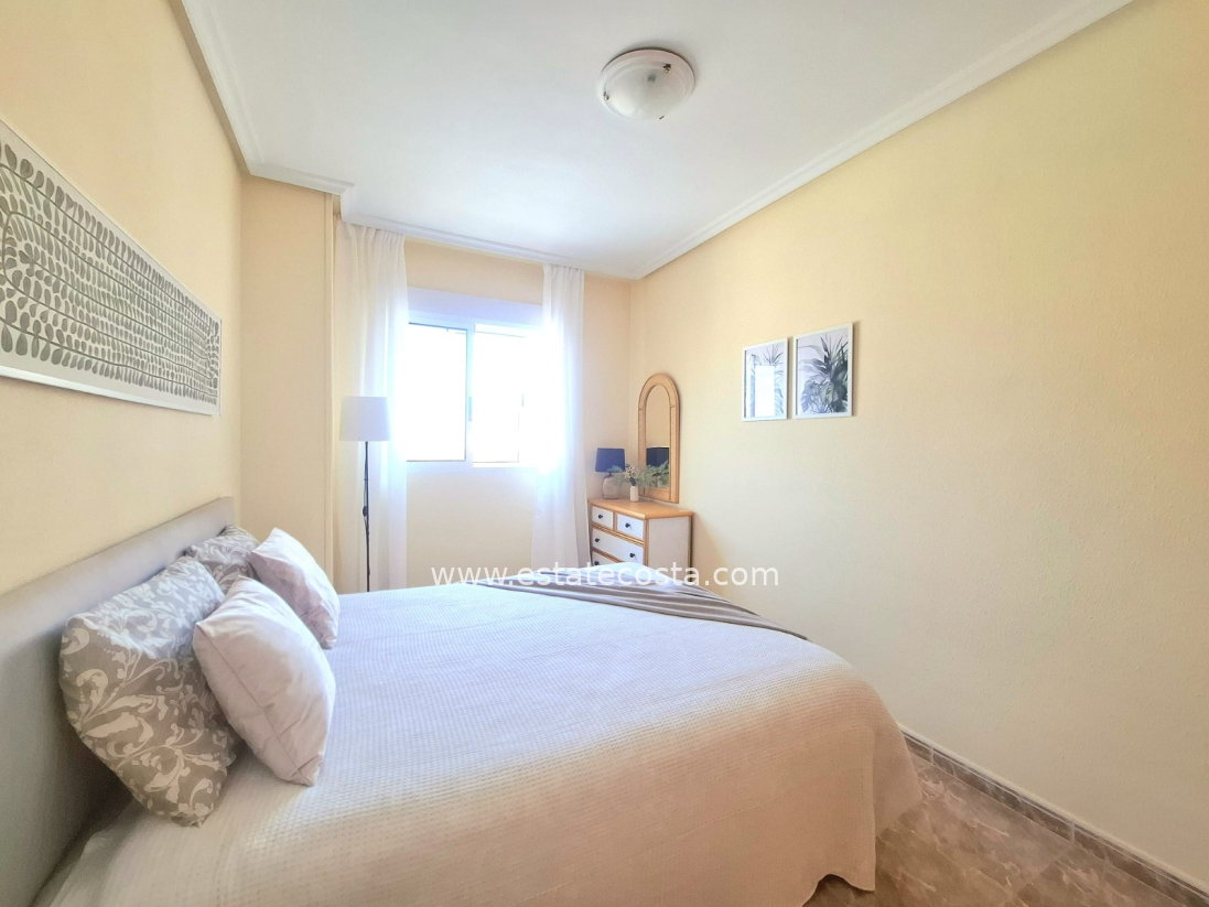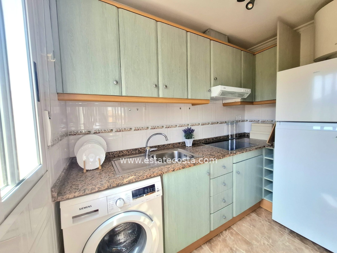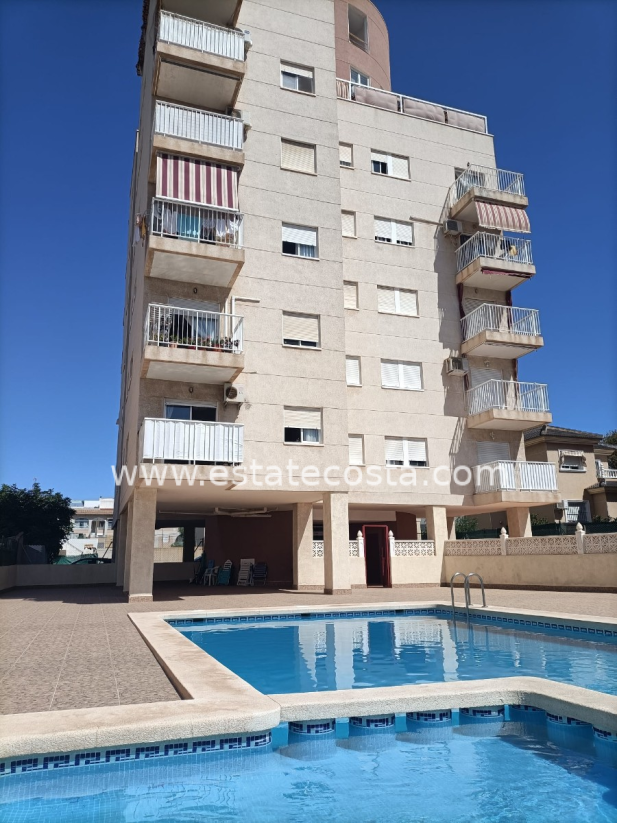 Ten zadbany apartament znajduje się na drugim piętrze kompleksu mieszkalnego z windą, wspólnym basenem i dużym tarasem na dachu. Nieruchomość oferuje 2 sypialnie, 1 łazienkę, jasny salon z jadalnią, oddzielną kuchnię oraz przestronny balkon.