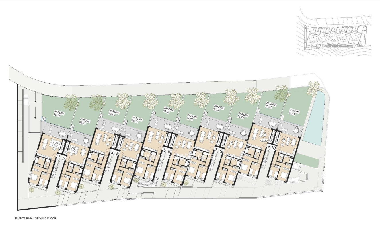 Osiedle wyróżnia się elegancką śródziemnomorską architekturą z awangardowym akcentem. Nieruchomości charakteryzują się wysokiej jakości wykończeniem, przestronnymi pokojami i dużą ilością naturalnego światła, osiągając idealną równowagę między designem a funkcjonalnością. Do wybory bungalowy na parterze z dużym prywatnym ogrodem i wystarczającą ilością miejsca na prywatny basen. Obejmują one również półpiwnicę z możliwością dodania dodatkowych sypialni. Bungalowy na najwyższym piętrze z dużym balkonem oraz prywatnym solarium ze spektakularnymi widokami na morze. Podziemne miejsce parkingowe wliczone w cenę każdej nieruchomości. Osiedle oferuje wspólny basen bez krawędzi.