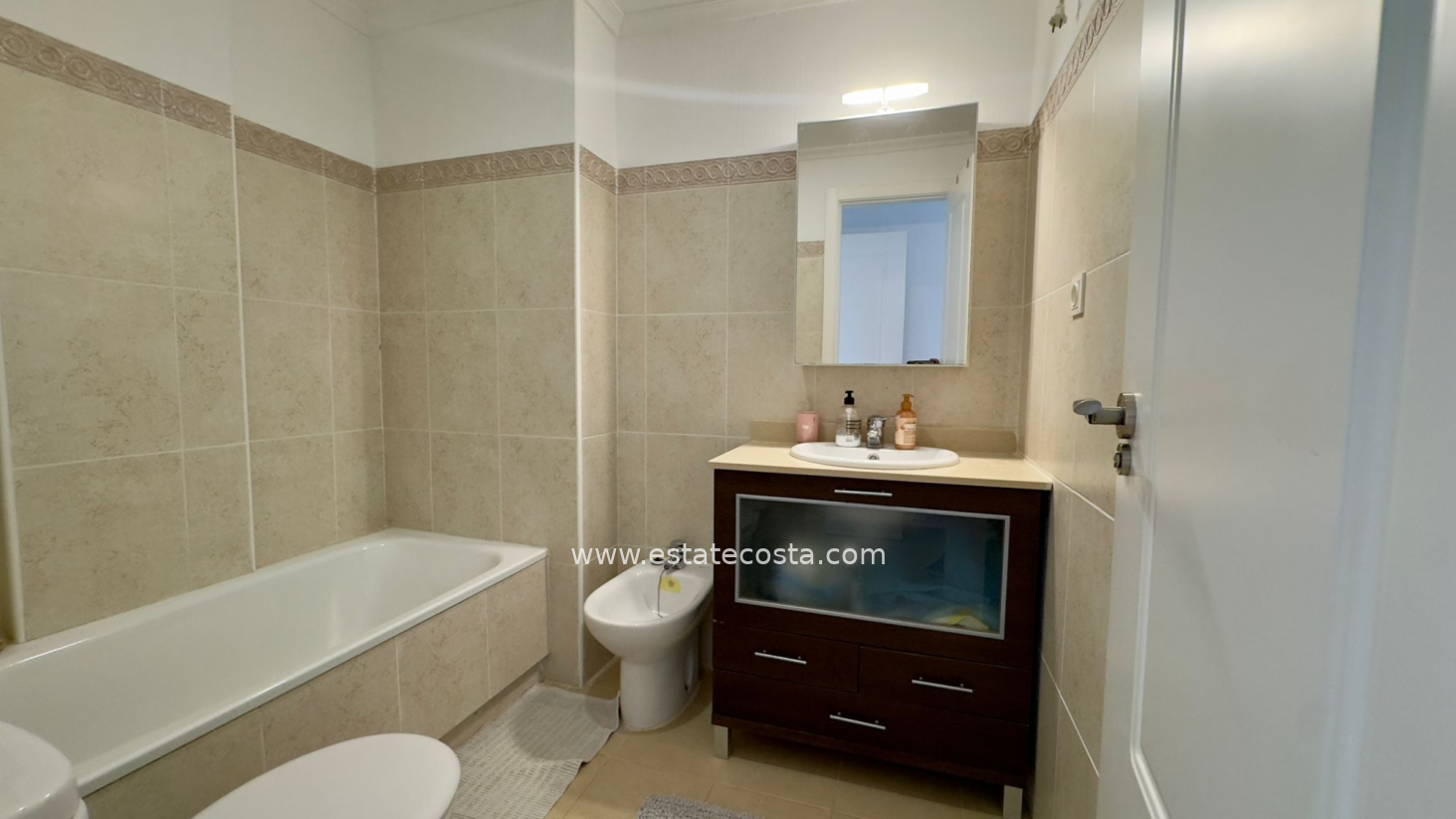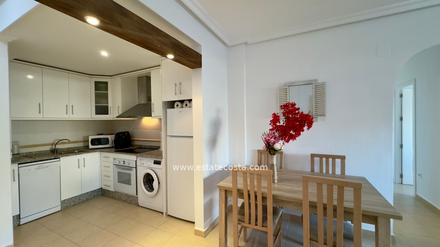 Ten przytulny apartament na parterze z przestronnym tarasem o powierzchni 28 m² znajduje się w popularnej dzielnicy Las Filipinas w Villamartín, w Orihuela Costa. Oferuje trzy przestronne sypialnie i dwie łazienki. Otwarta, w pełni wyposażona kuchnia płynnie przechodzi w jasny i przestronny salon. Z salonu mamy bezpośrednie wyjście na przestronny taras. Apartament jest sprzedawany w pełni umeblowany.