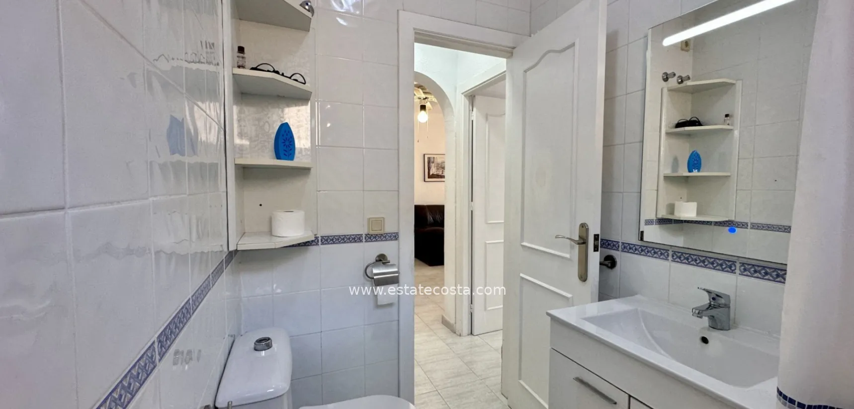 Nieruchomość oferuje komfortowy układ na jednym poziomie oraz dostęp do wspólnego basenu i ogrodu. Dom o łącznej powierzchni 75 m² (ok. 55 m² powierzchni mieszkalnej) oferuje dwie sypialnie, łazienkę, jasny salon i funkcjonalną kuchnię. Taras zapewnia przestrzeń na świeżym powietrzu idealną do relaksu. Nieruchomość posiada wbudowane szafy, schowek, klimatyzację oraz prywatne miejsce parkingowe w garażu wliczone w cenę.